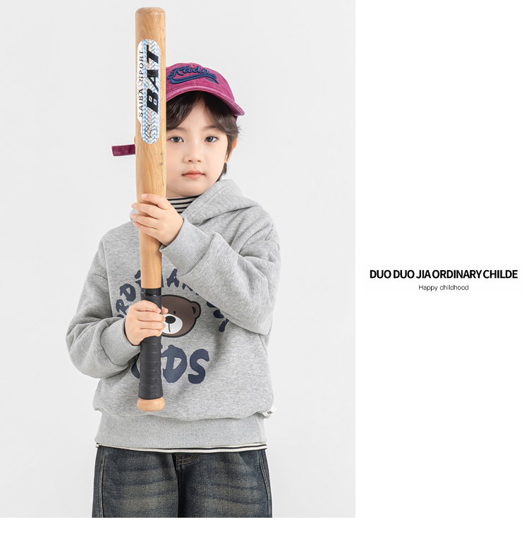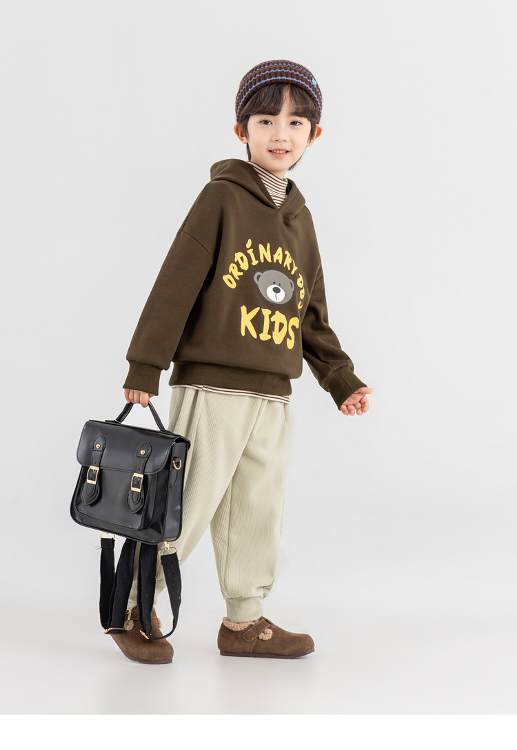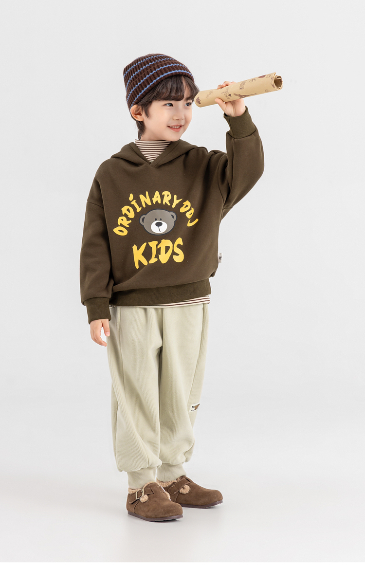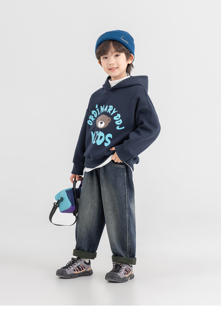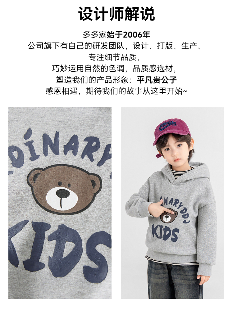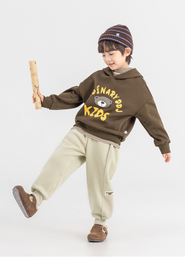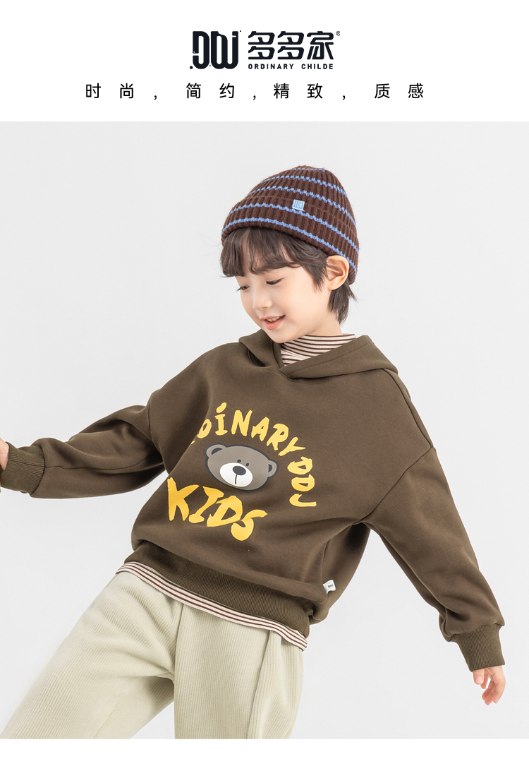 【件件底价,童装双倍积分】多多家男童加绒连帽卫衣2025秋冬季新款冬装儿童中大童小熊印花潮11179
