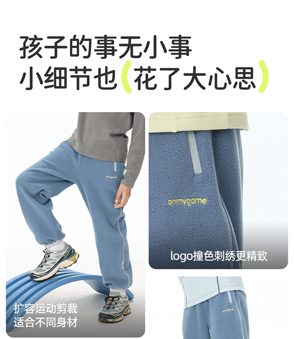 onmygame儿童专业运动品牌男女童款耐脏不易皱,柔软但不软踏