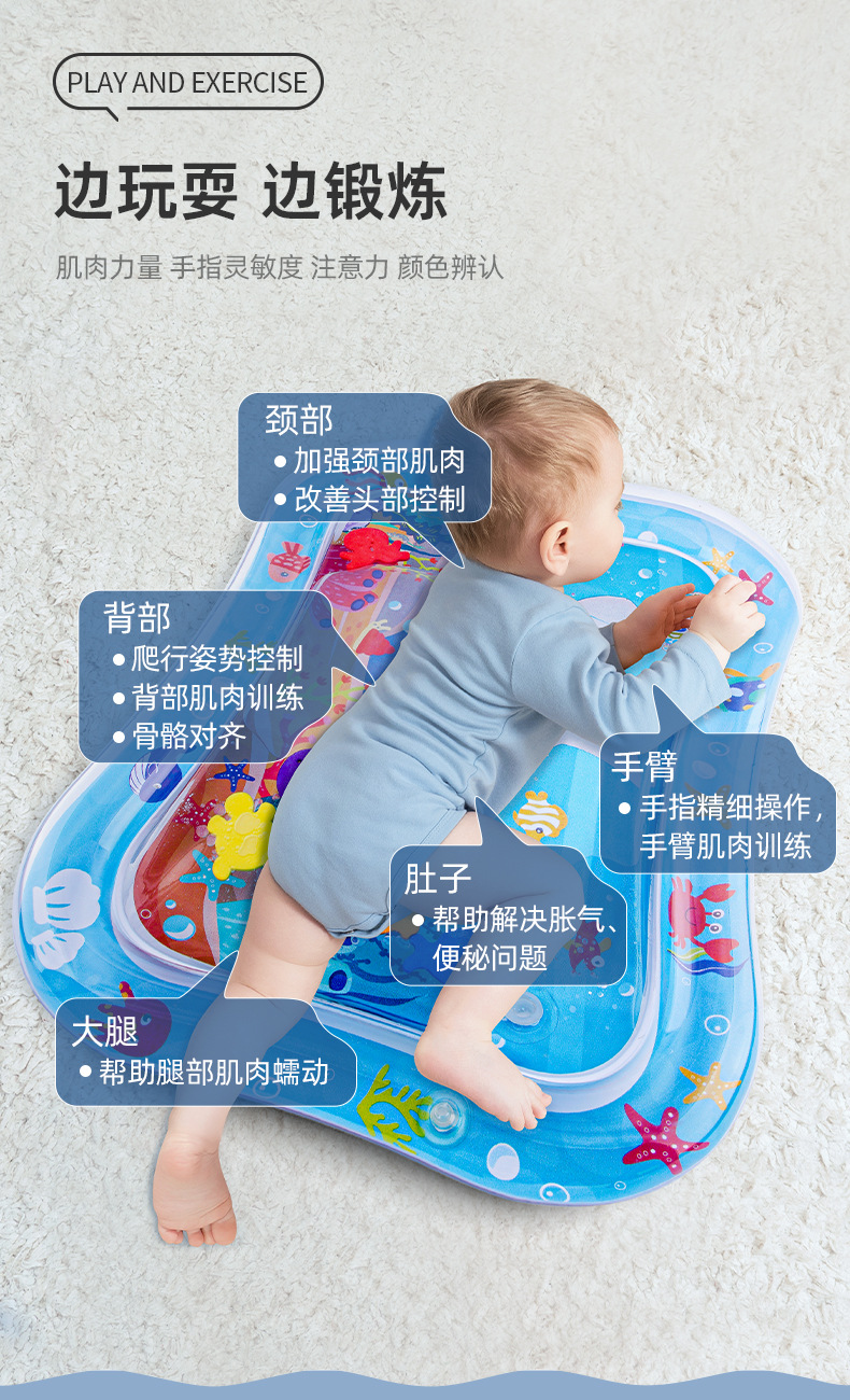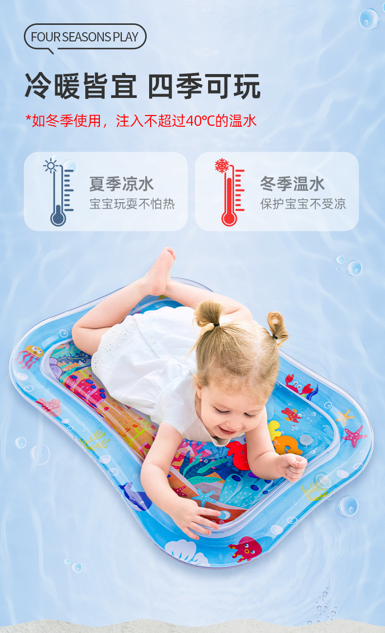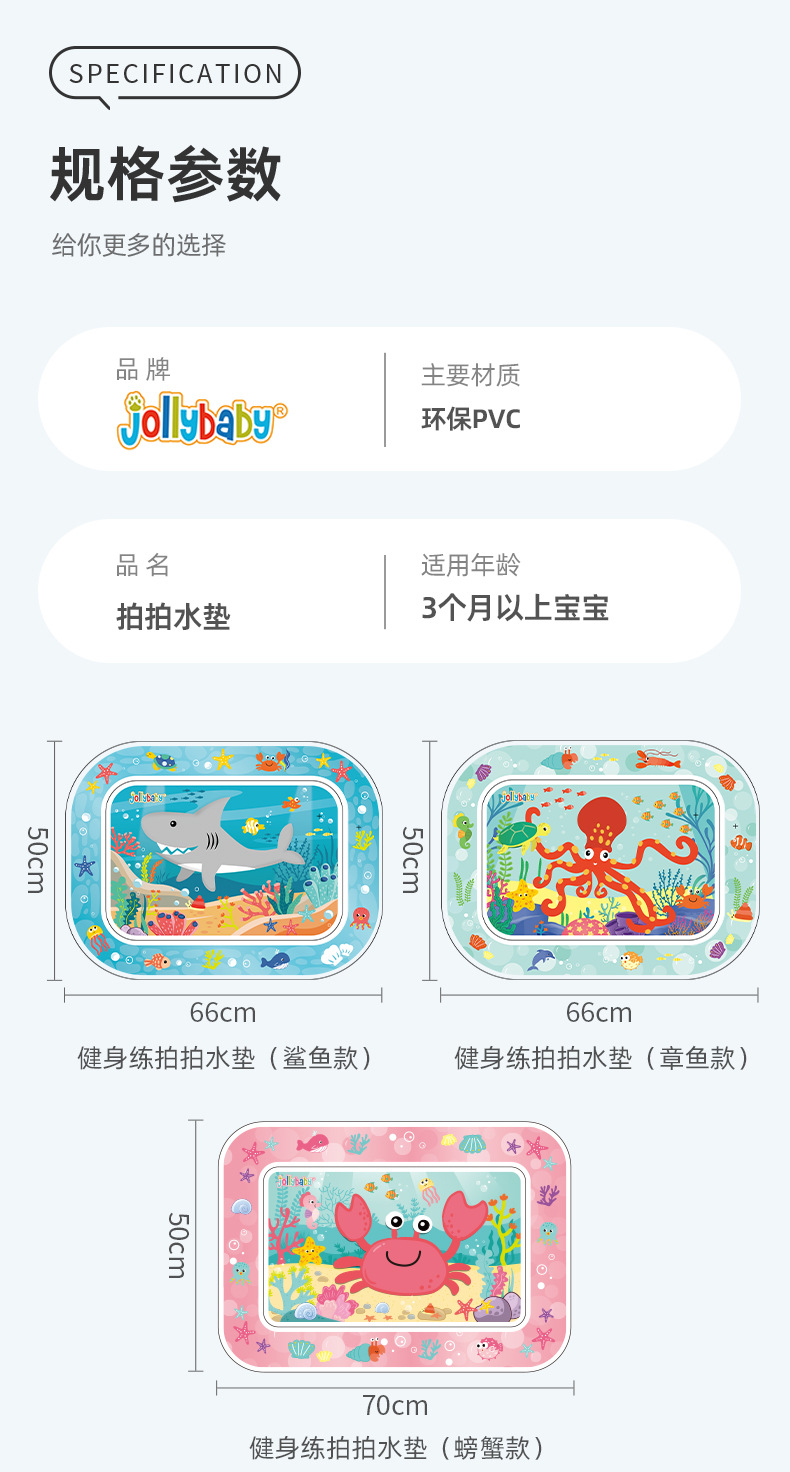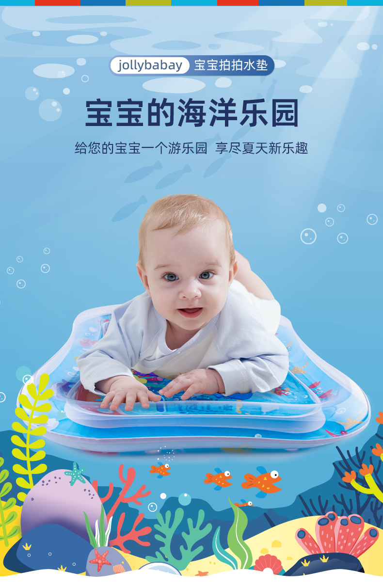 【趣味拍拍水垫 宝宝的海上乐园 】Jollybaby幼儿充气爬行水垫 萌趣海洋图案 边玩耍边锻炼 四季可用易收纳