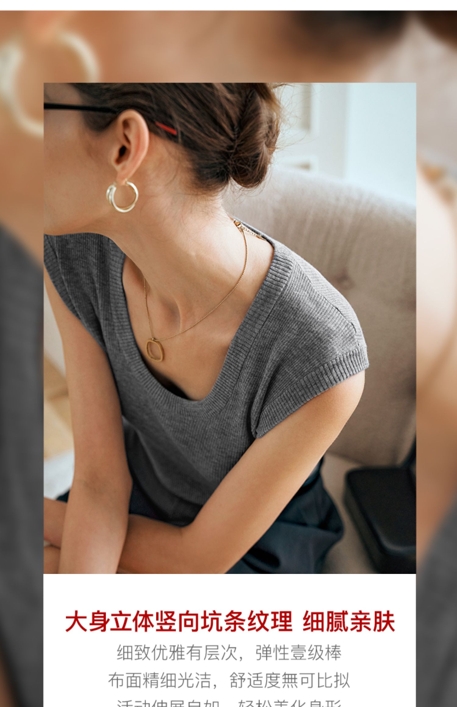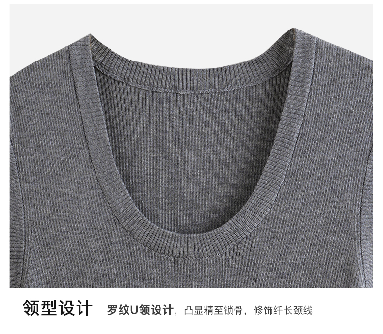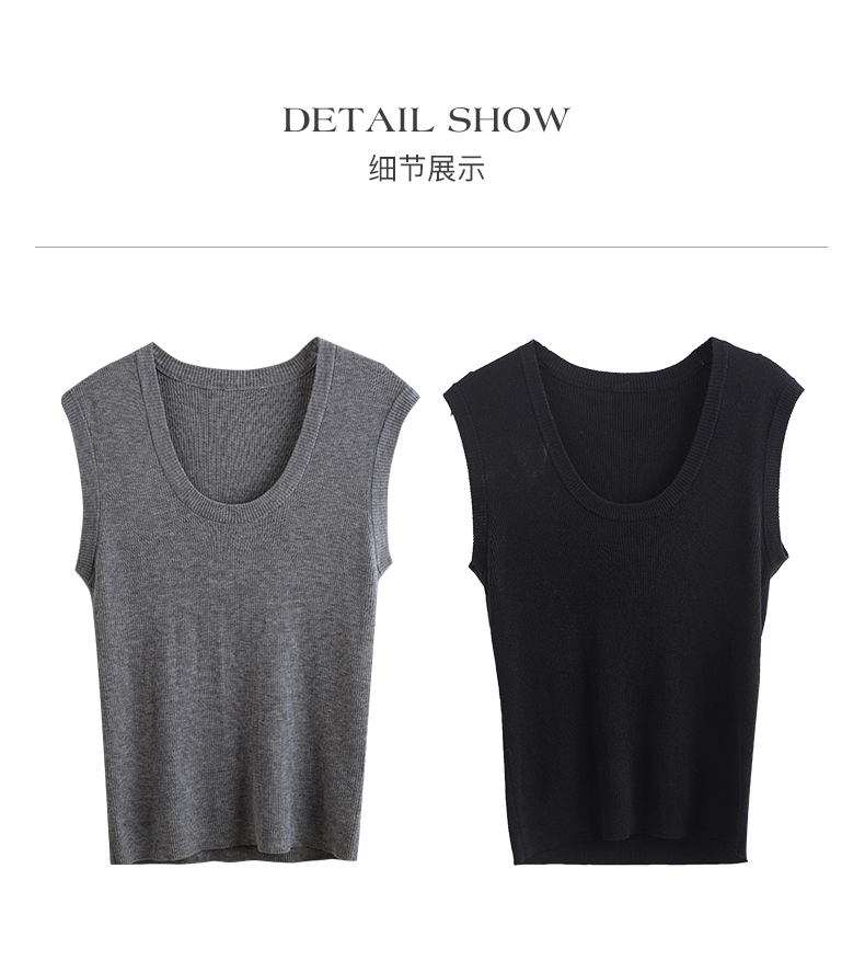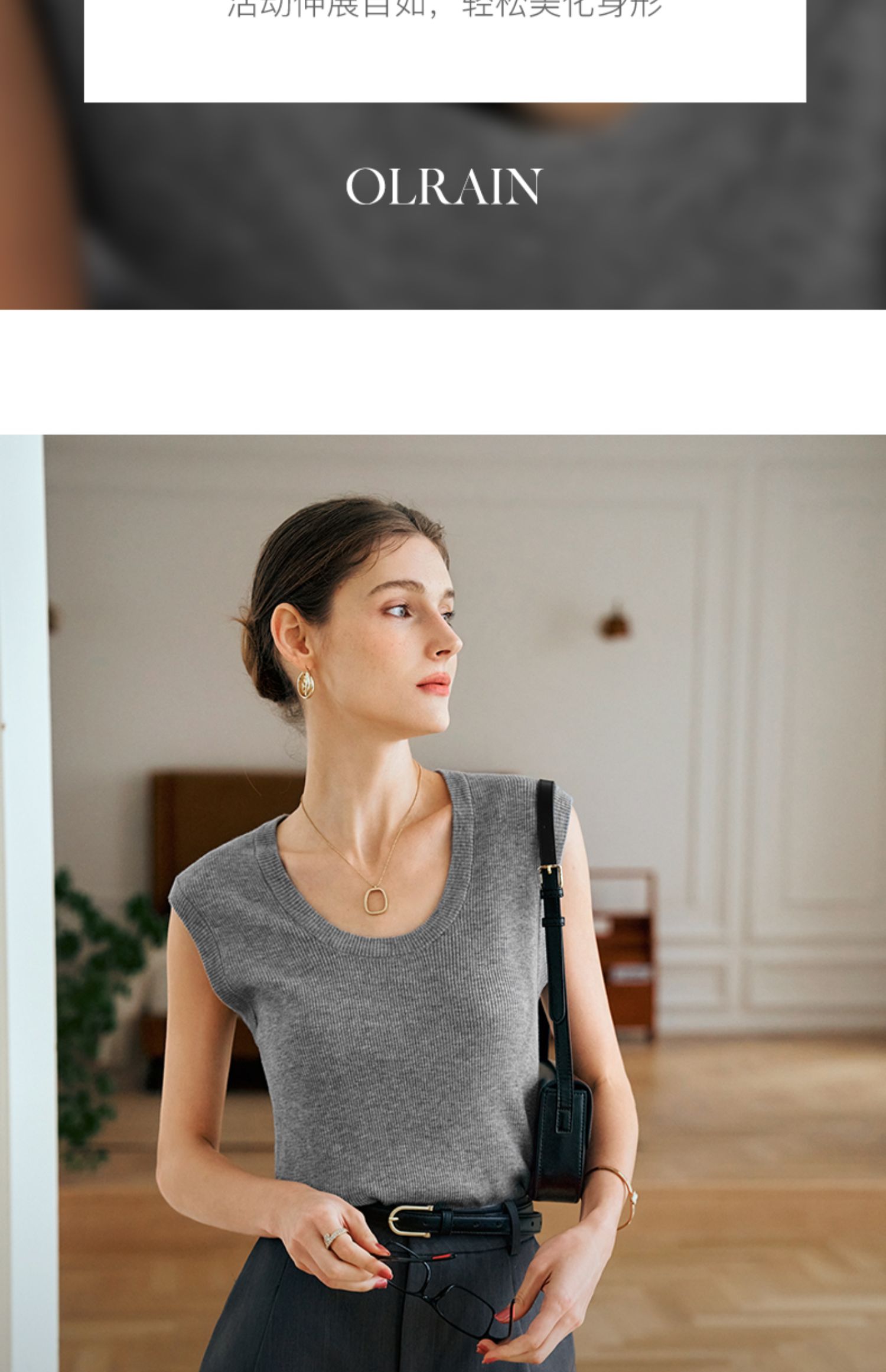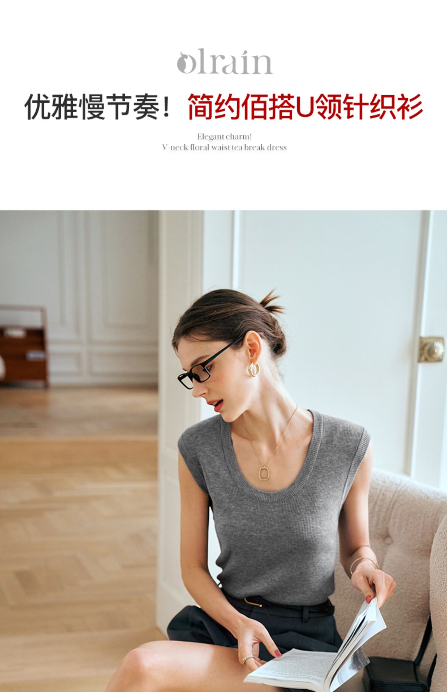 OLrain欧芮儿灰色无袖针织衫女夏季2024年新款简约百搭U领背心