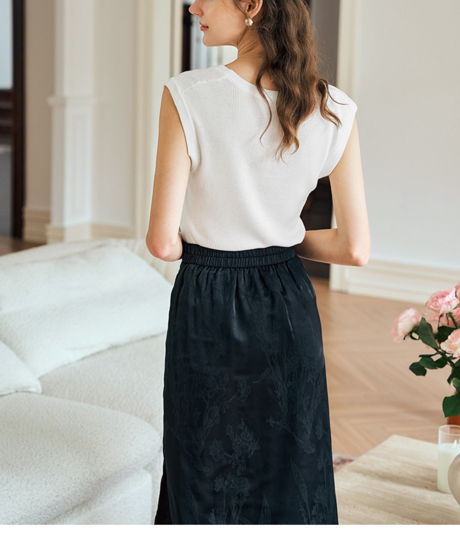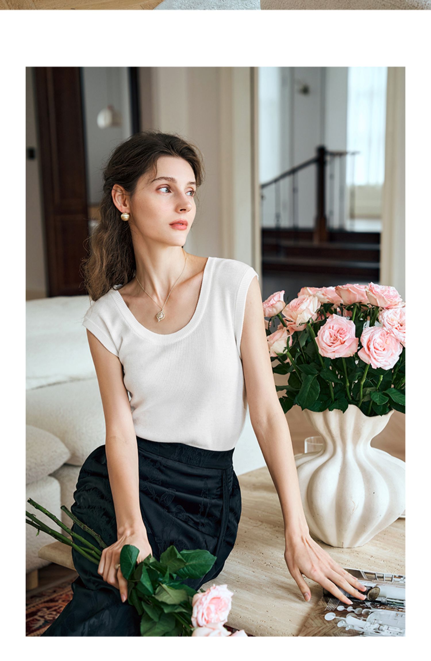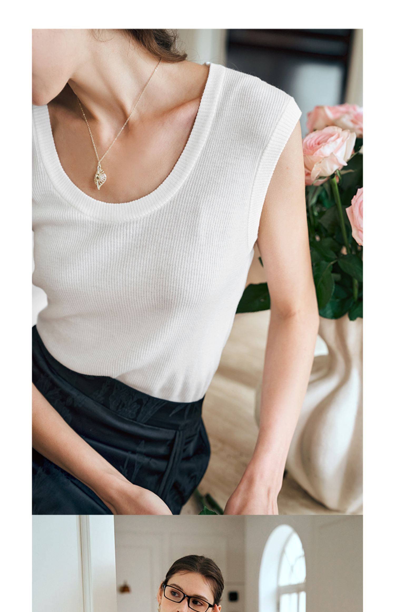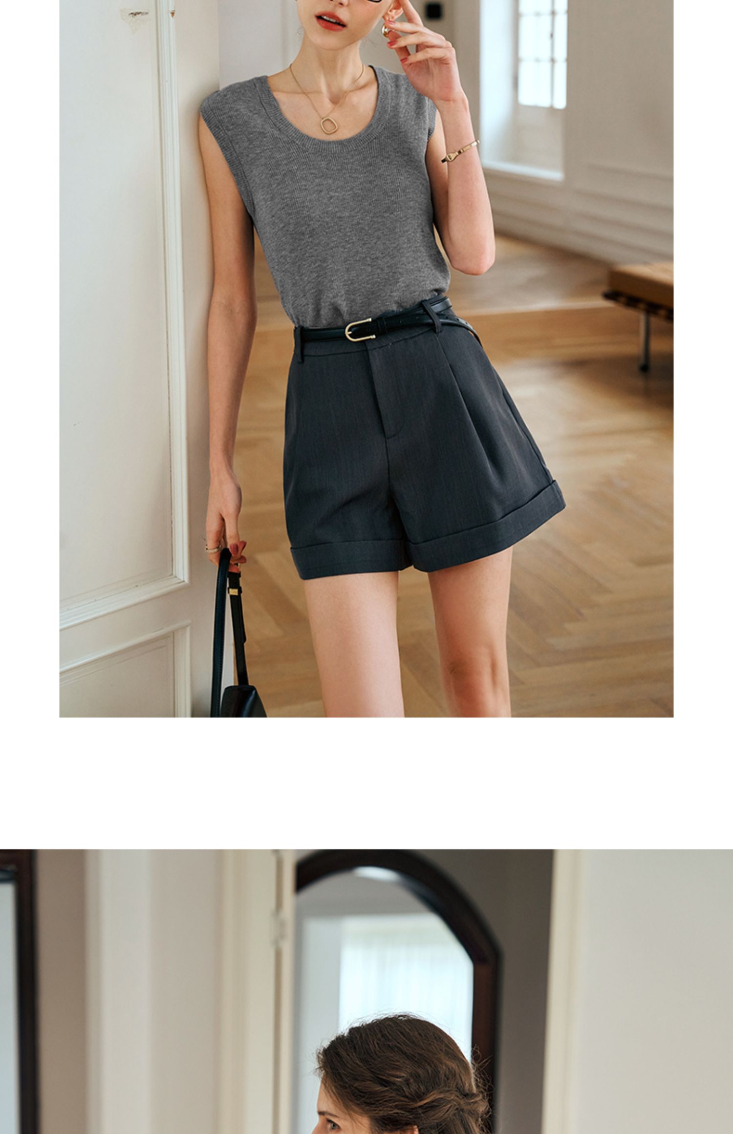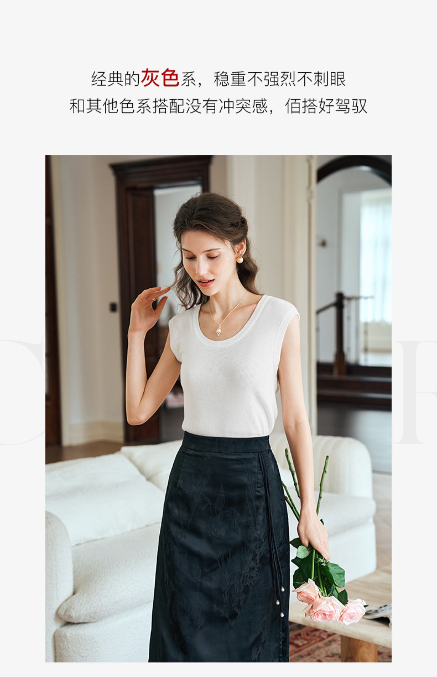OLrain欧芮儿灰色无袖针织衫女夏季2024年新款简约百搭U领背心