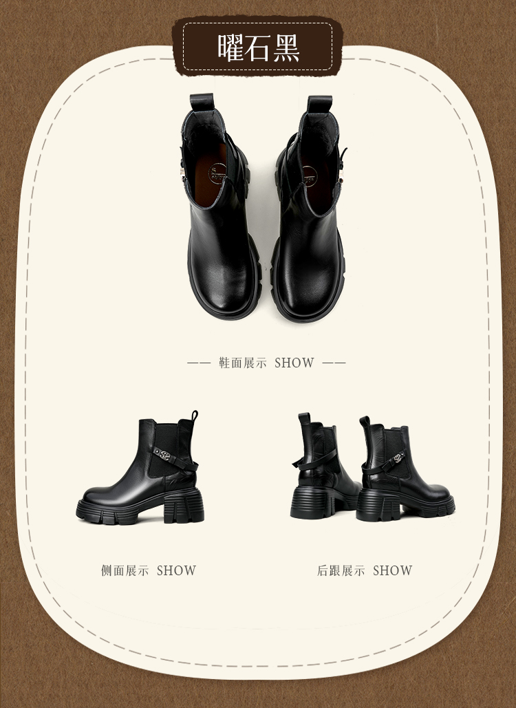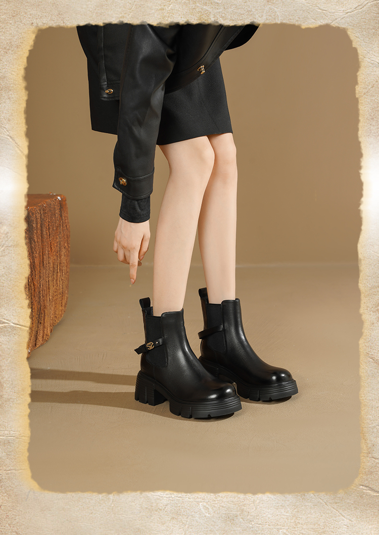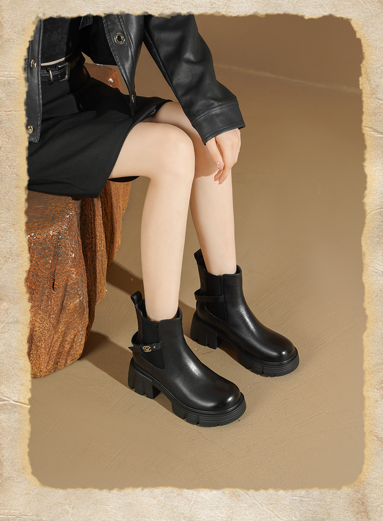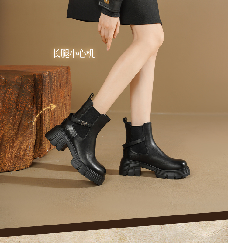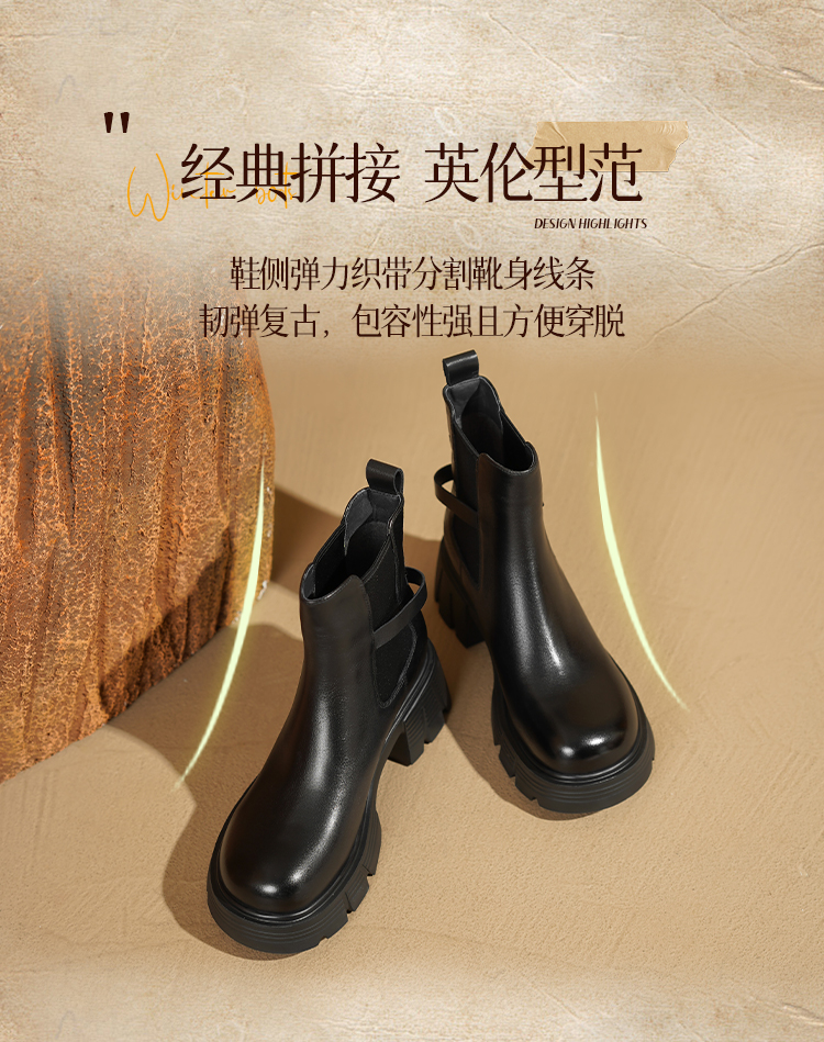 Safiya/索菲娅2025小个子烟筒厚底真皮牛皮革粗跟通勤百搭英伦切尔西靴SFD4116261