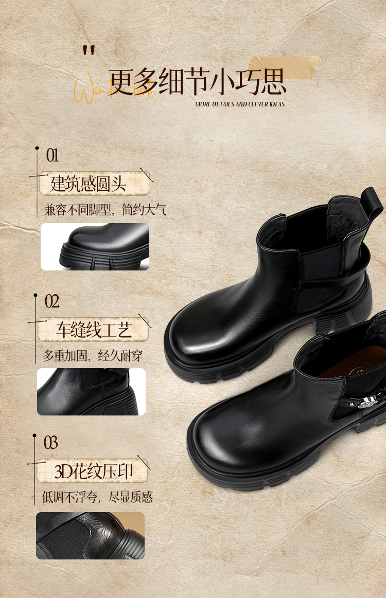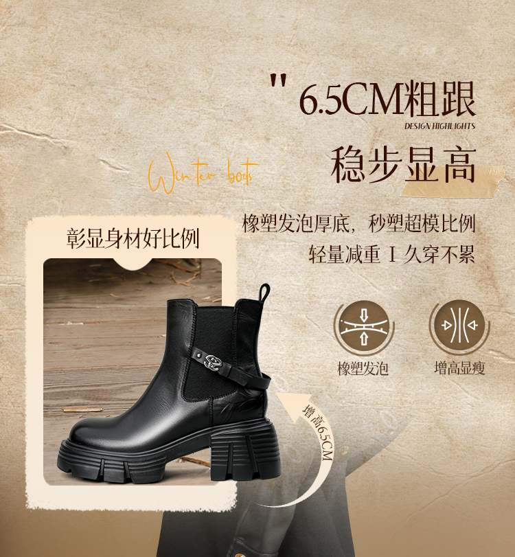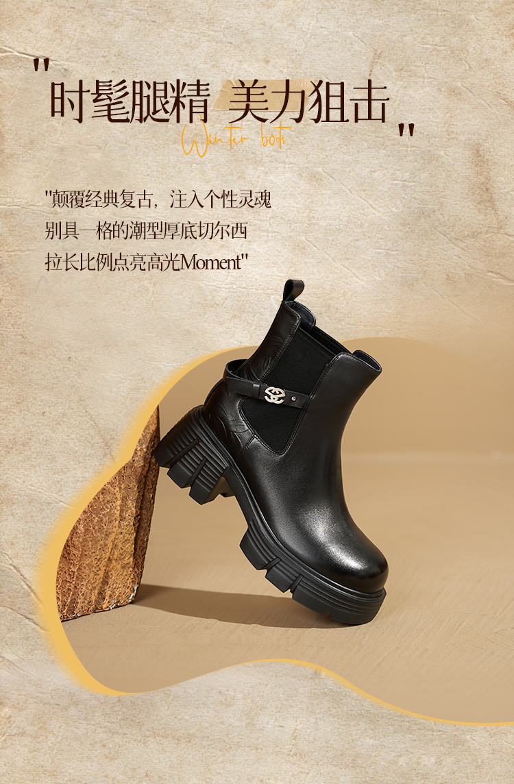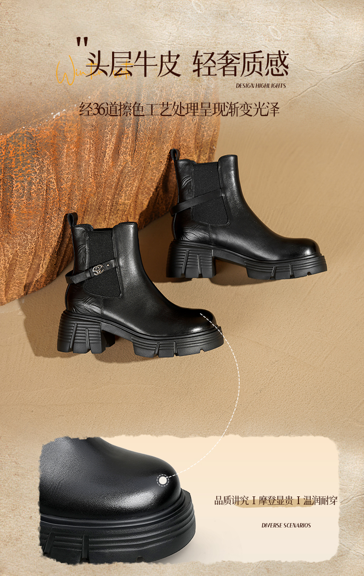 Safiya/索菲娅2025小个子烟筒厚底真皮牛皮革粗跟通勤百搭英伦切尔西靴SFD4116261