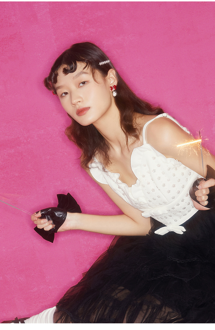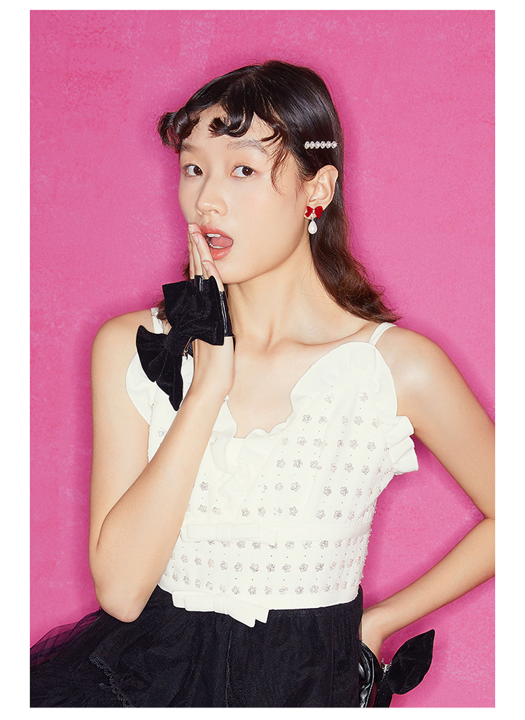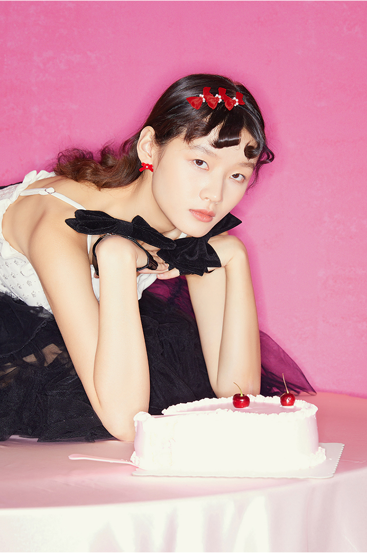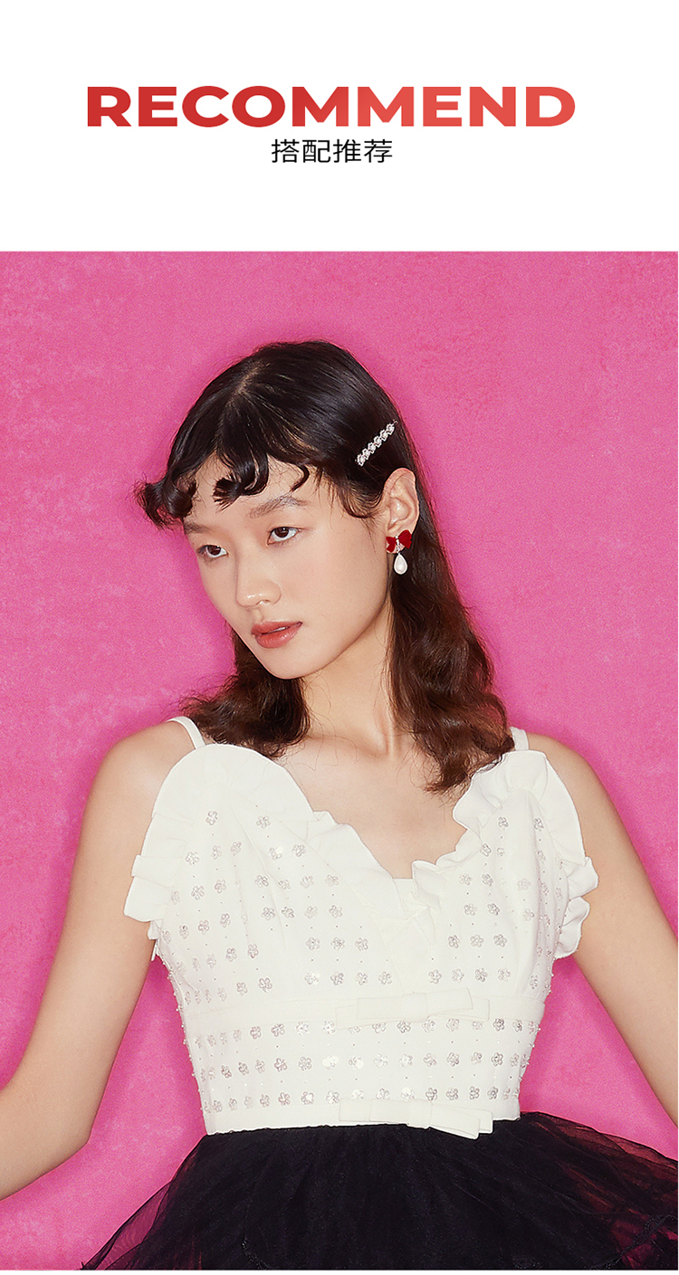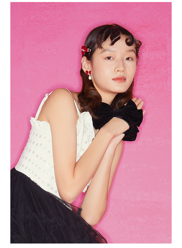 ZEGL设计师新年系列红色蝴蝶结发夹女发饰耳环925银针红丝绒耳饰