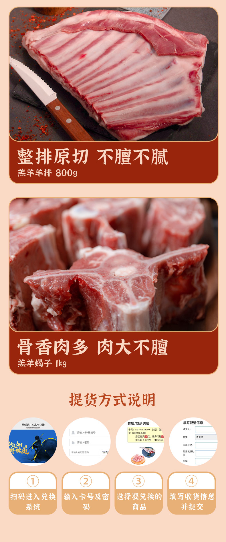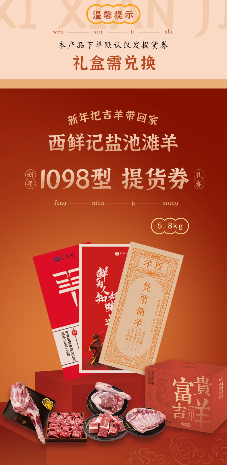 西鲜记 盐池滩羊 礼品卡1098型 节日送礼 在线提货