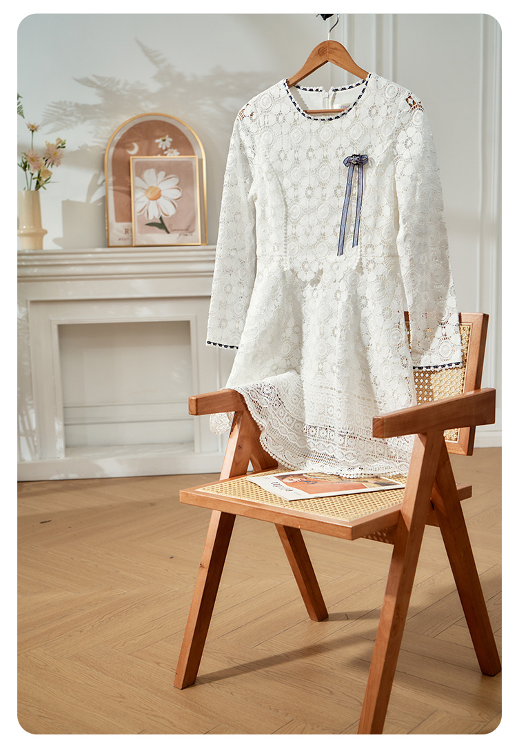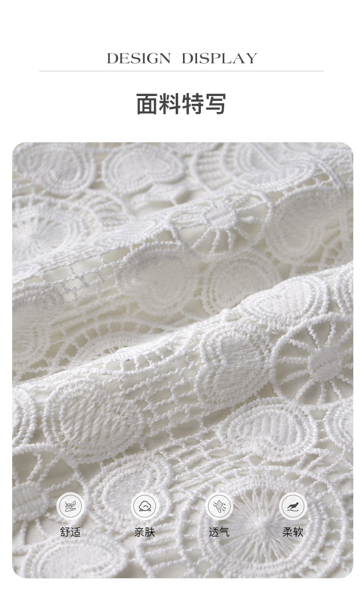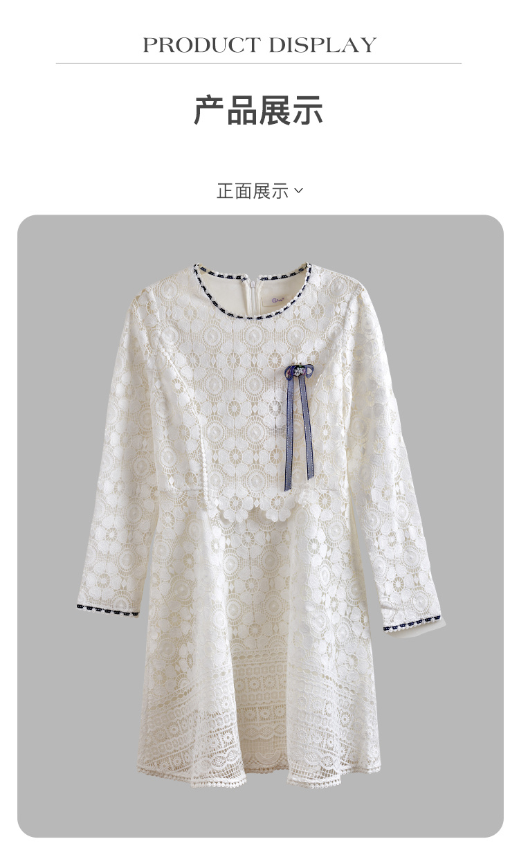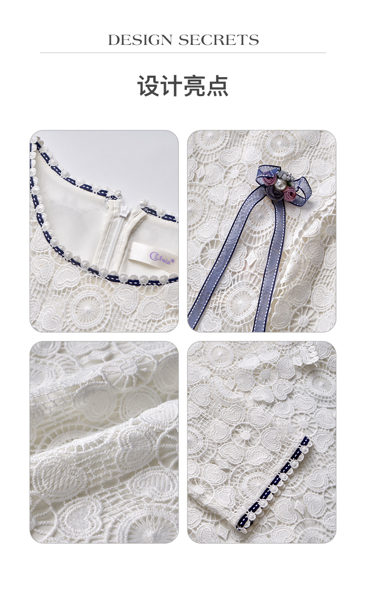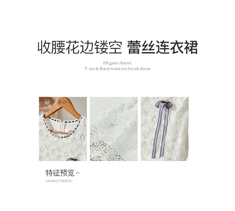 欧芮儿修身收腰优雅花边镂空白色蕾丝连衣裙女中长款