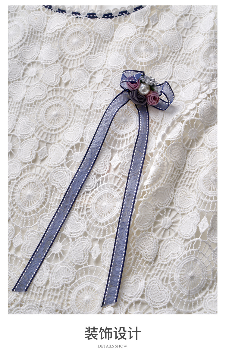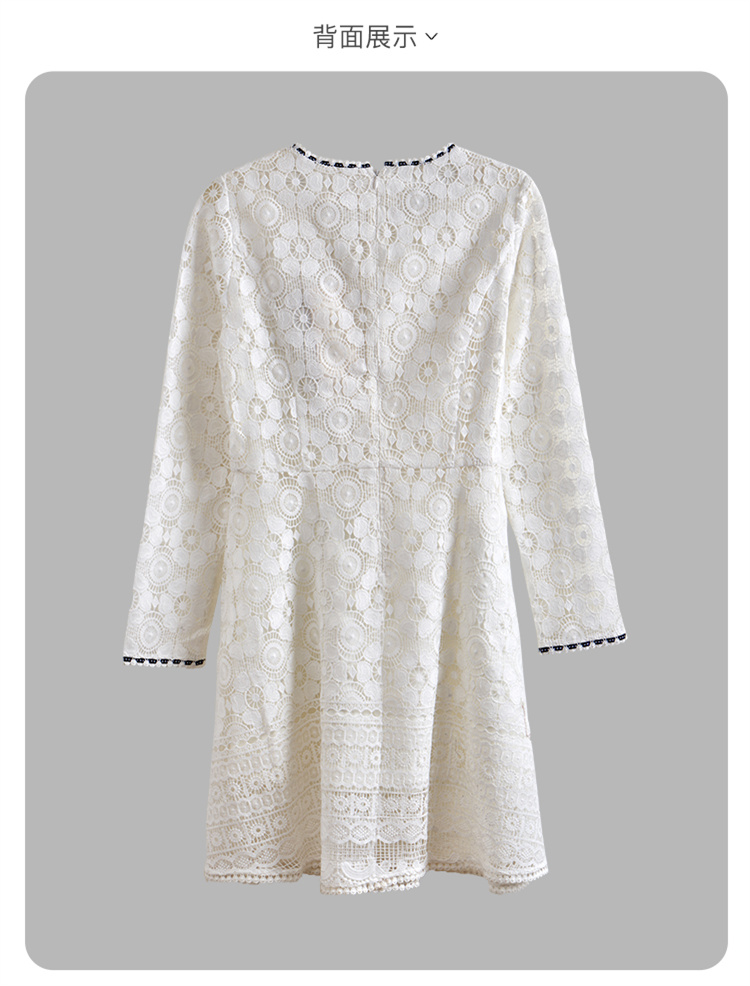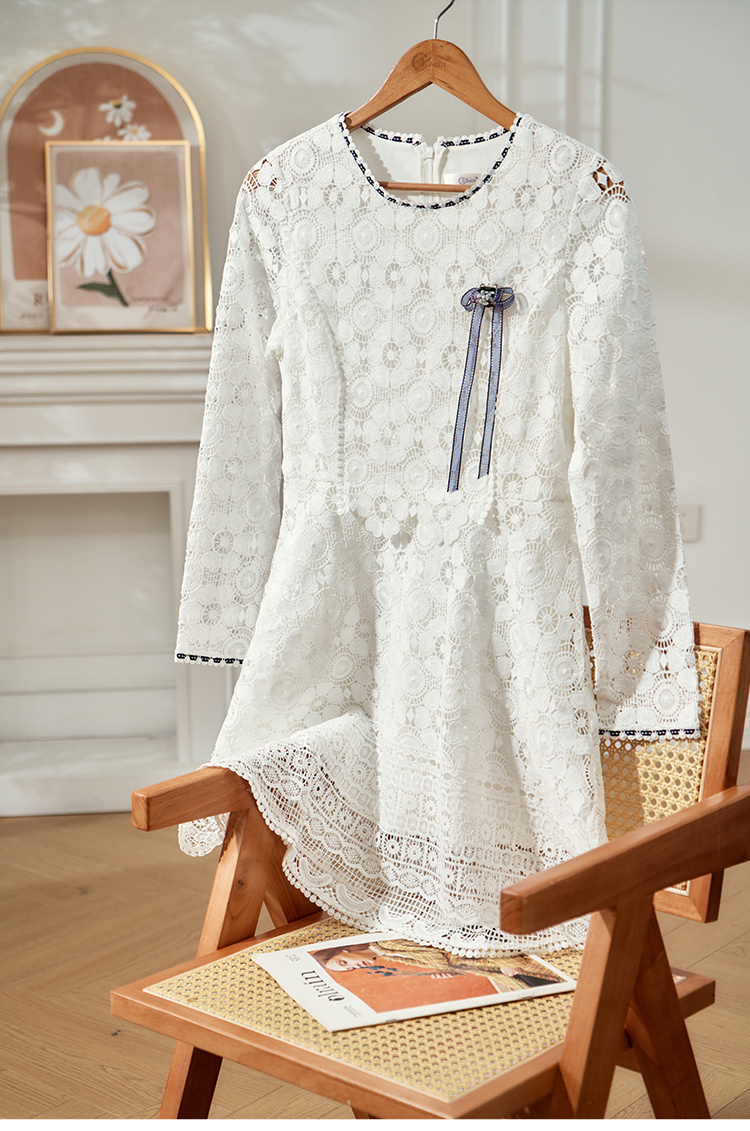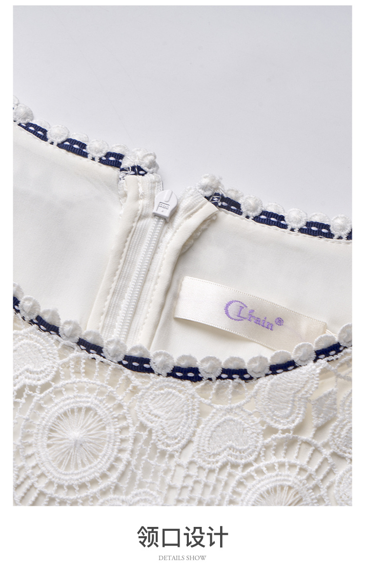 欧芮儿修身收腰优雅花边镂空白色蕾丝连衣裙女中长款