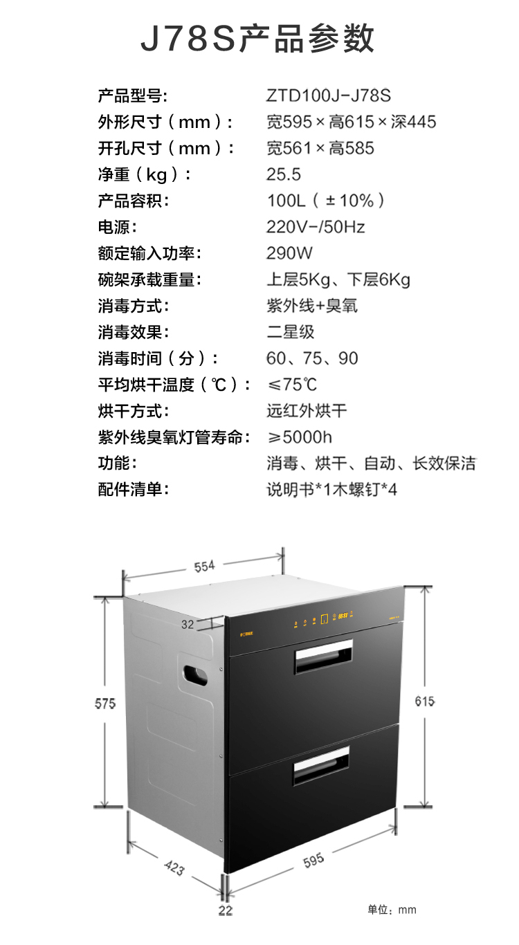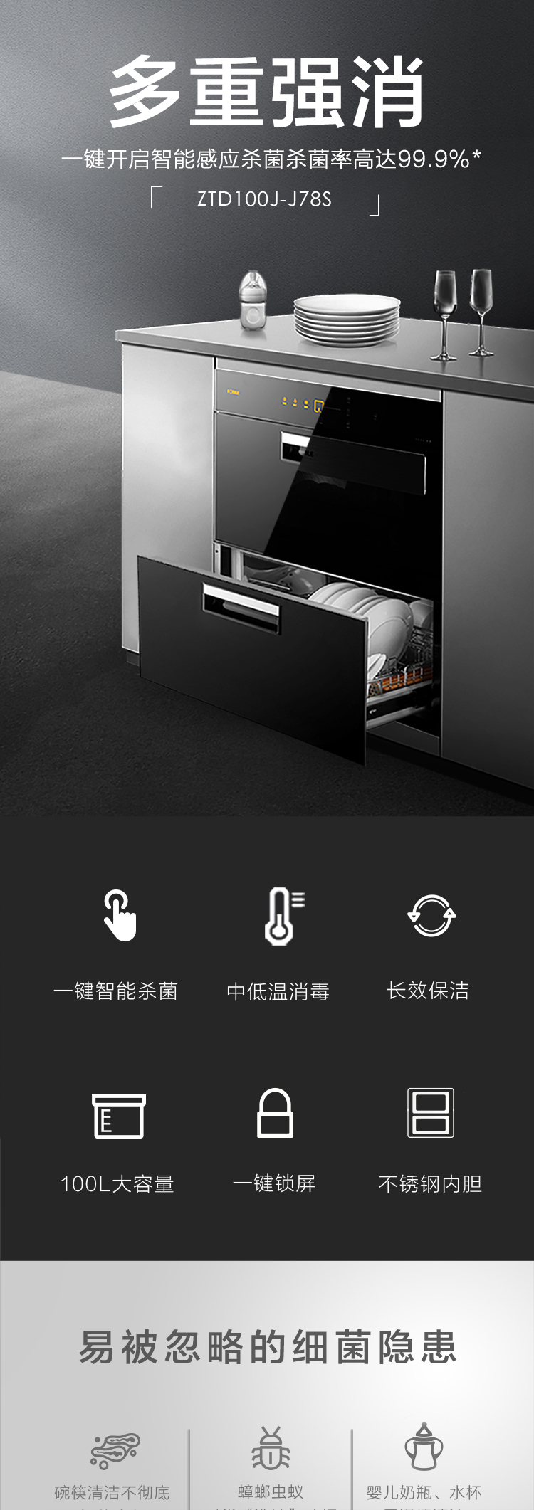 方太J78S消毒柜 自动感应 嵌入式 家用消毒碗