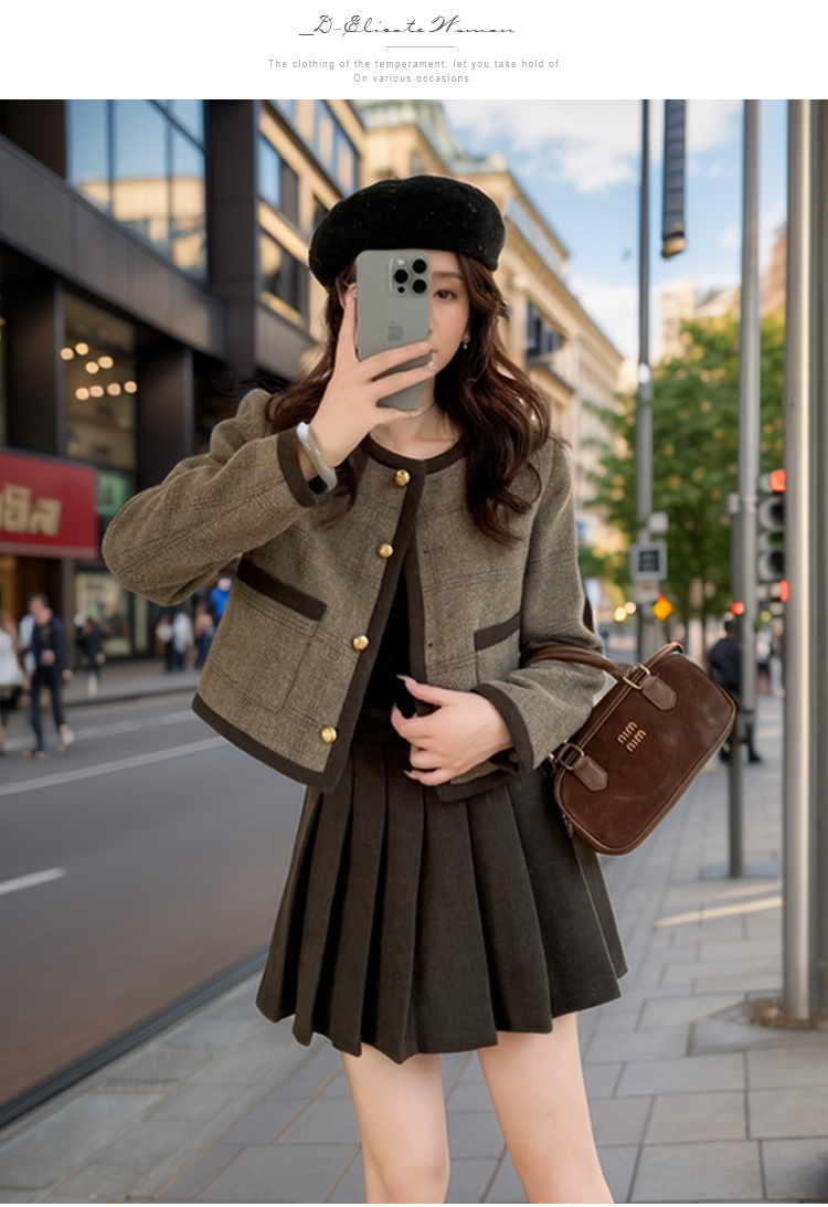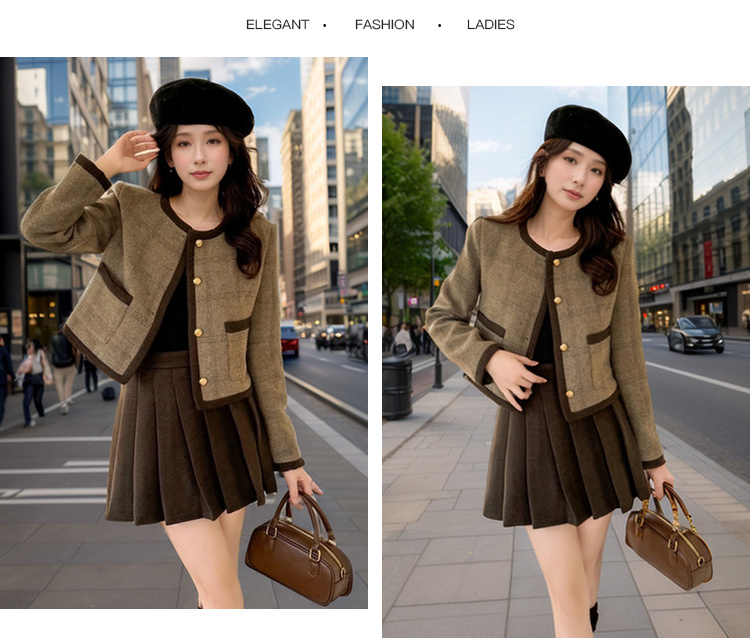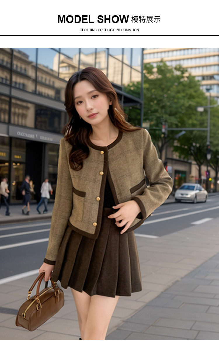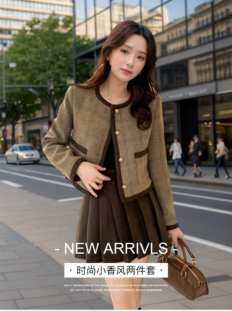 奢姿大码女装2024冬季减龄百褶两件套胖妹妹格纹小香风时尚套装9944927555