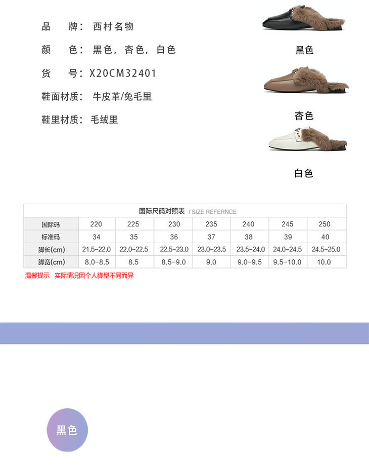 西村名物2020秋冬新品毛毛鞋穆勒拖X20CM32401