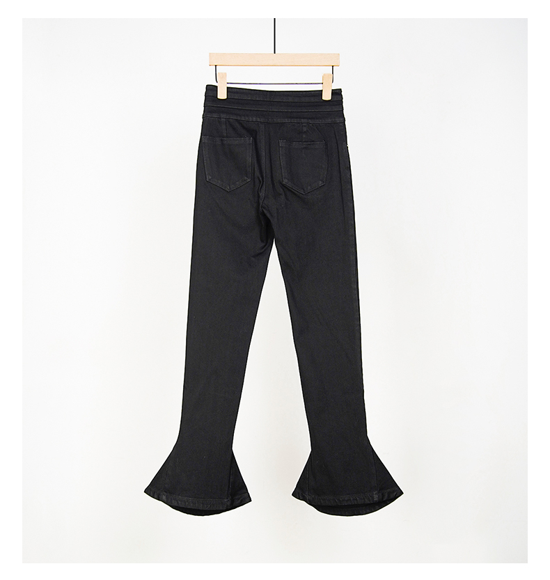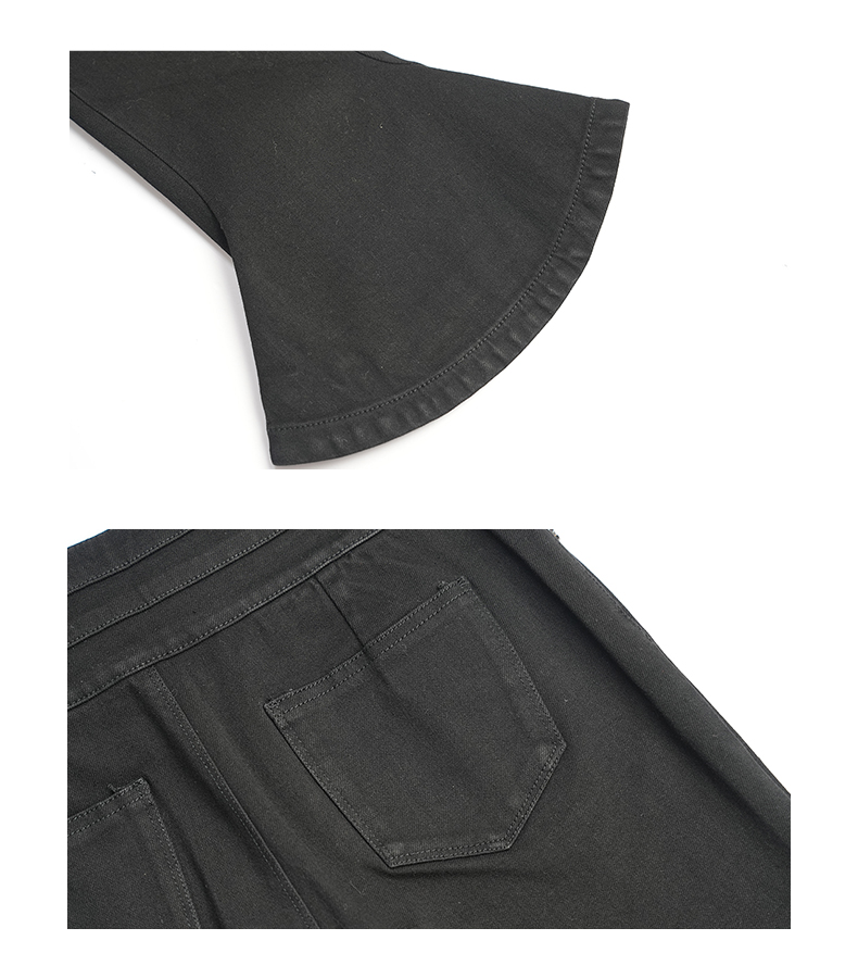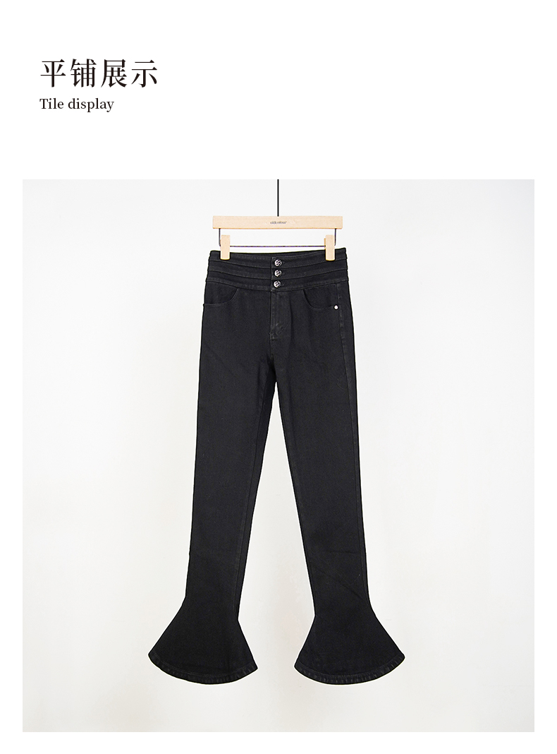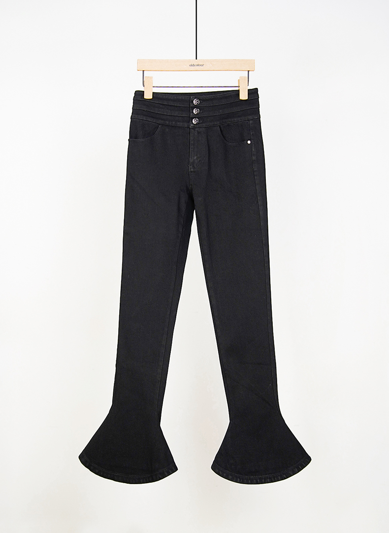 oldcolour春秋款黑色高腰显瘦修身喇叭裤水洗牛仔长裤女HO14113434