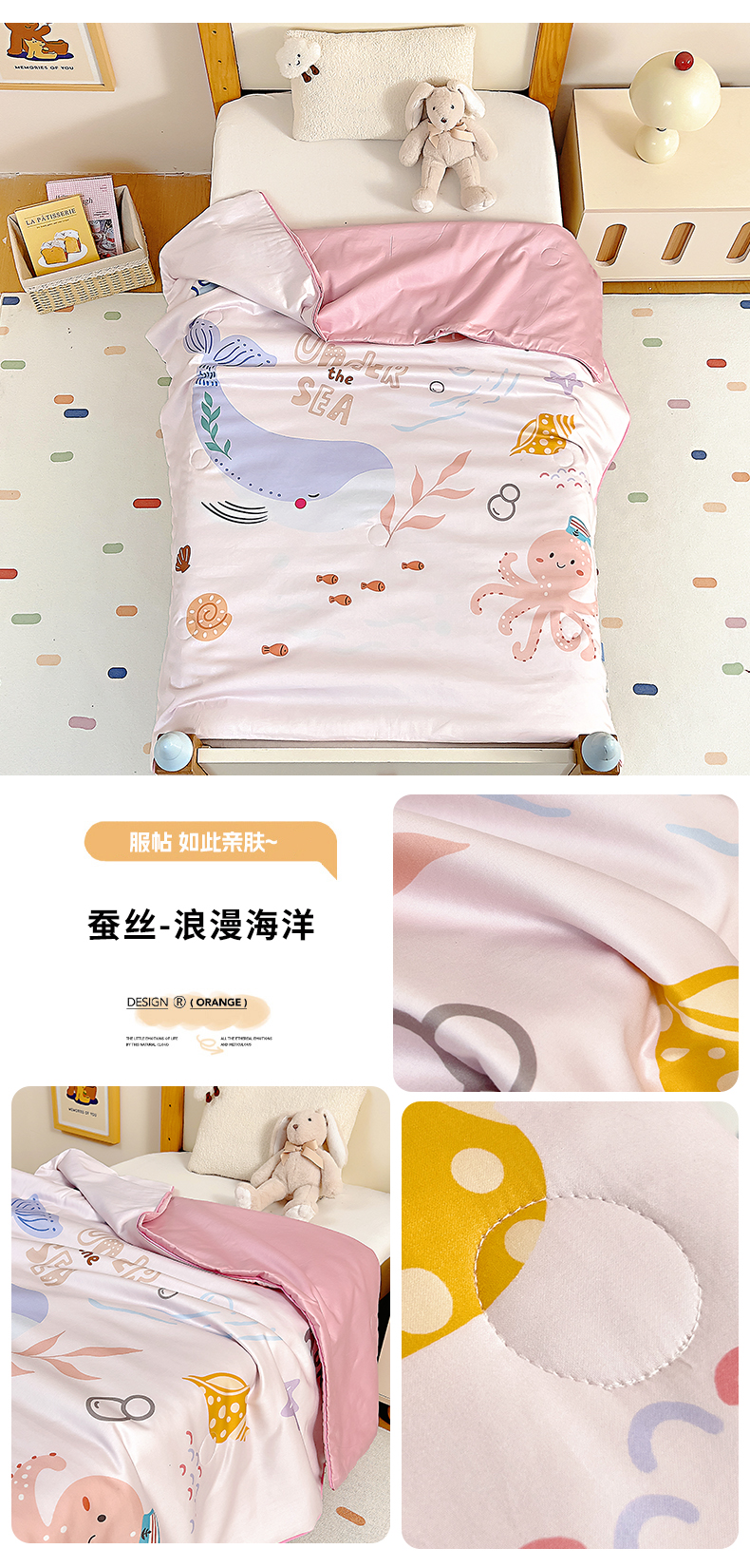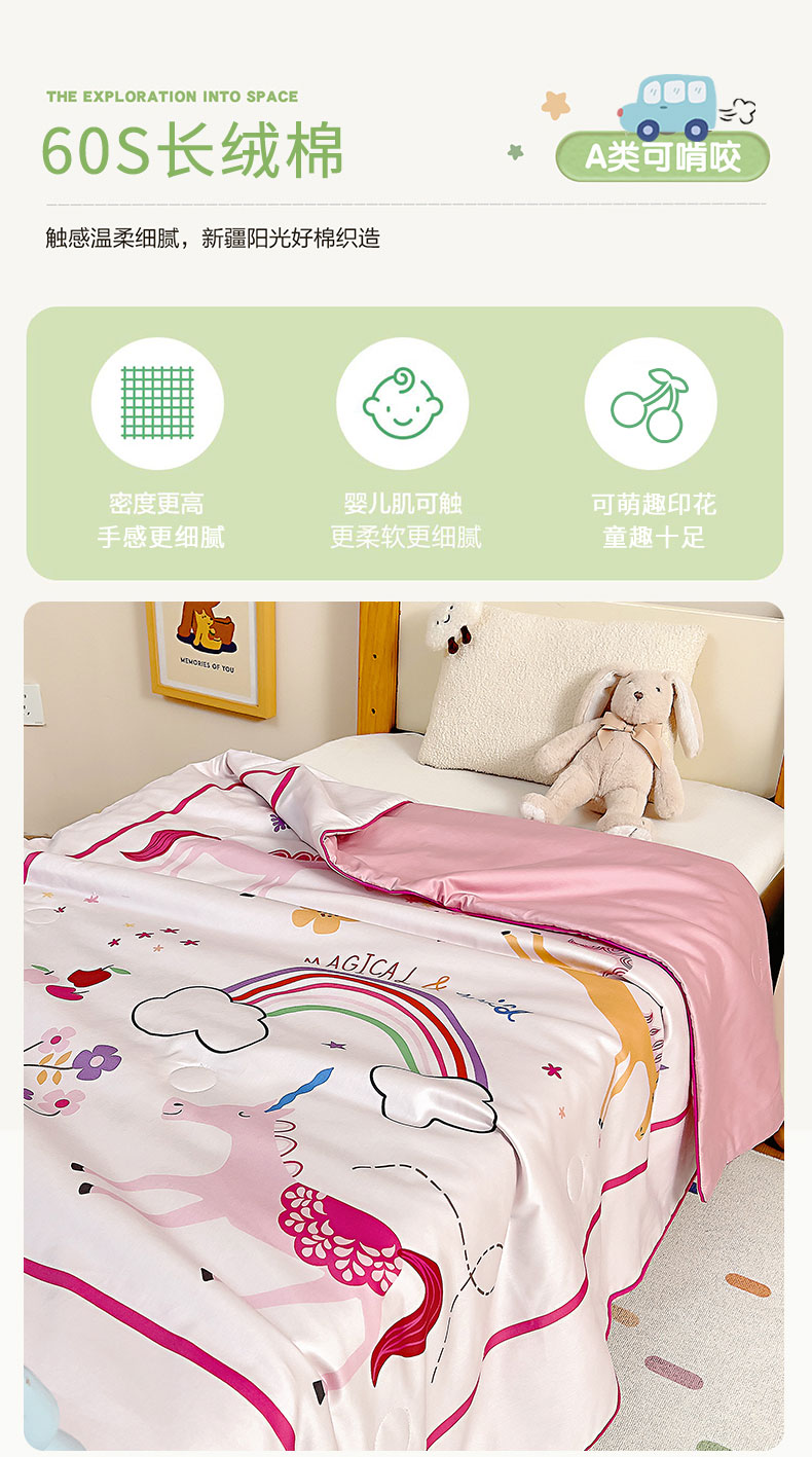小象咘叮 A类蚕丝长绒棉全棉数码印花幼儿园夏被 6色可选 儿童夏凉被 空调被 婴童薄被