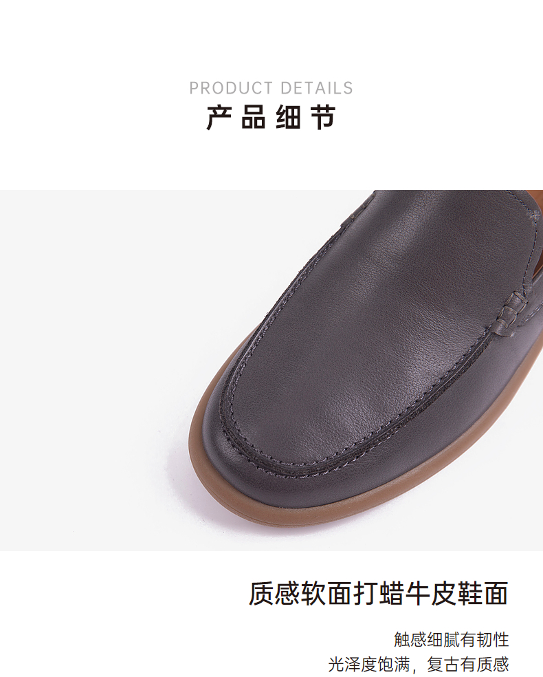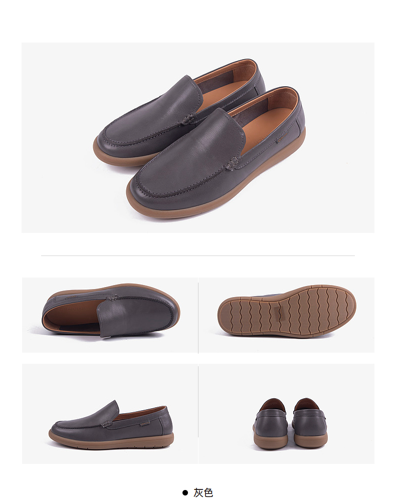千百度男鞋秋季男士商务休闲皮鞋质感牛皮英伦风豆豆鞋A24417015
