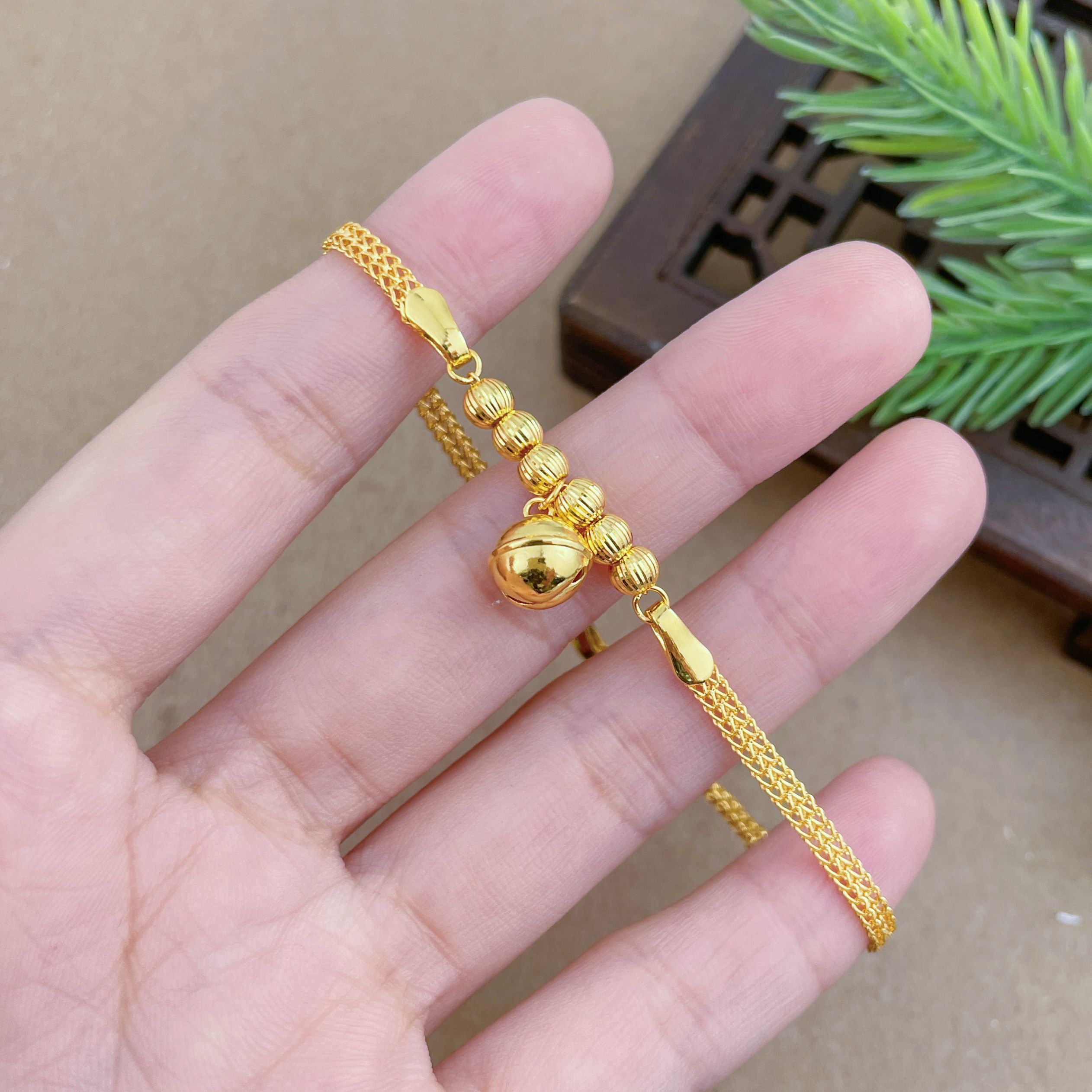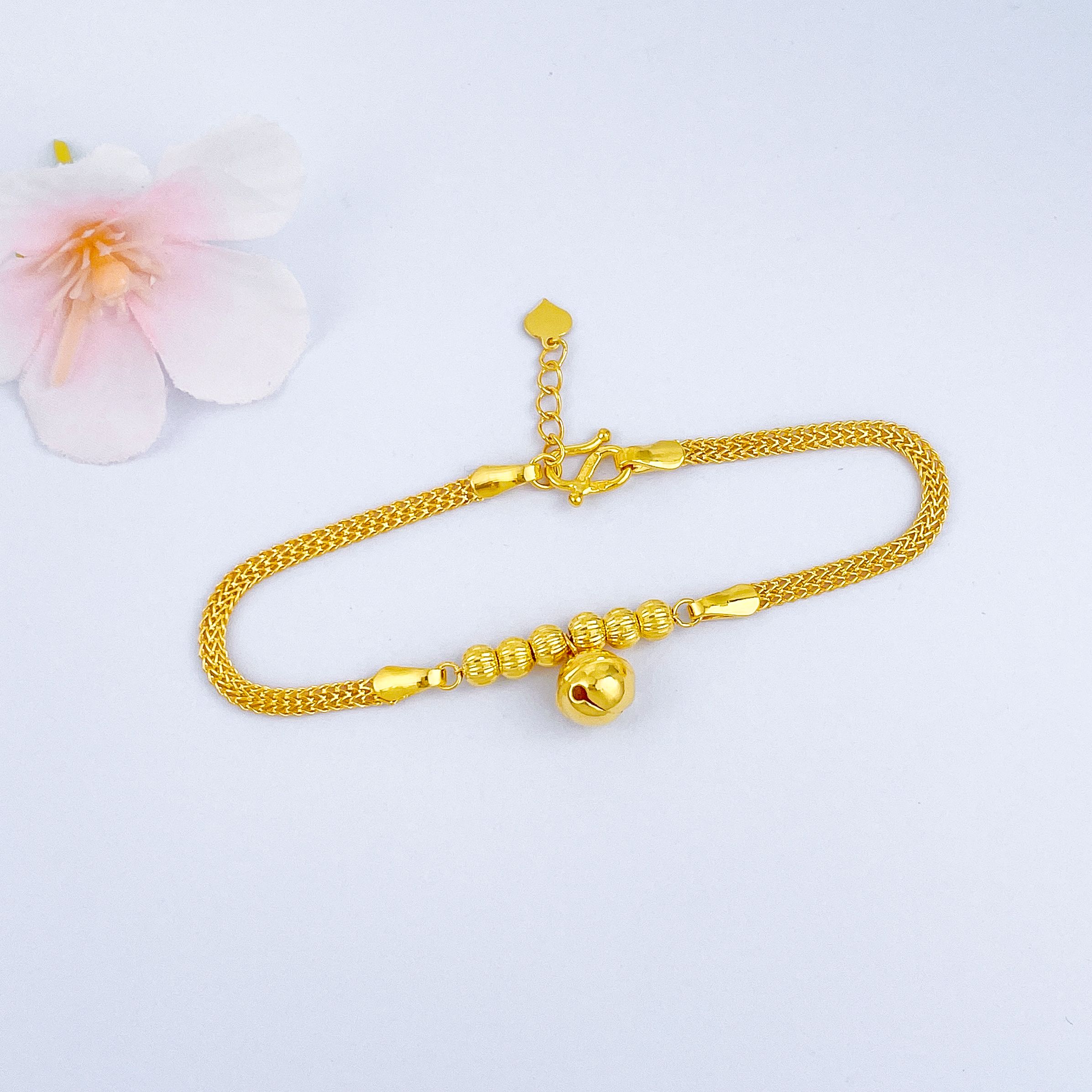 【限时克减150元】足金999.9 亮镜金铃铛调节手链(AF050SL00072)(铃铛不会响的哈)(预售产品下单后不退款不退货不换货不补差价)