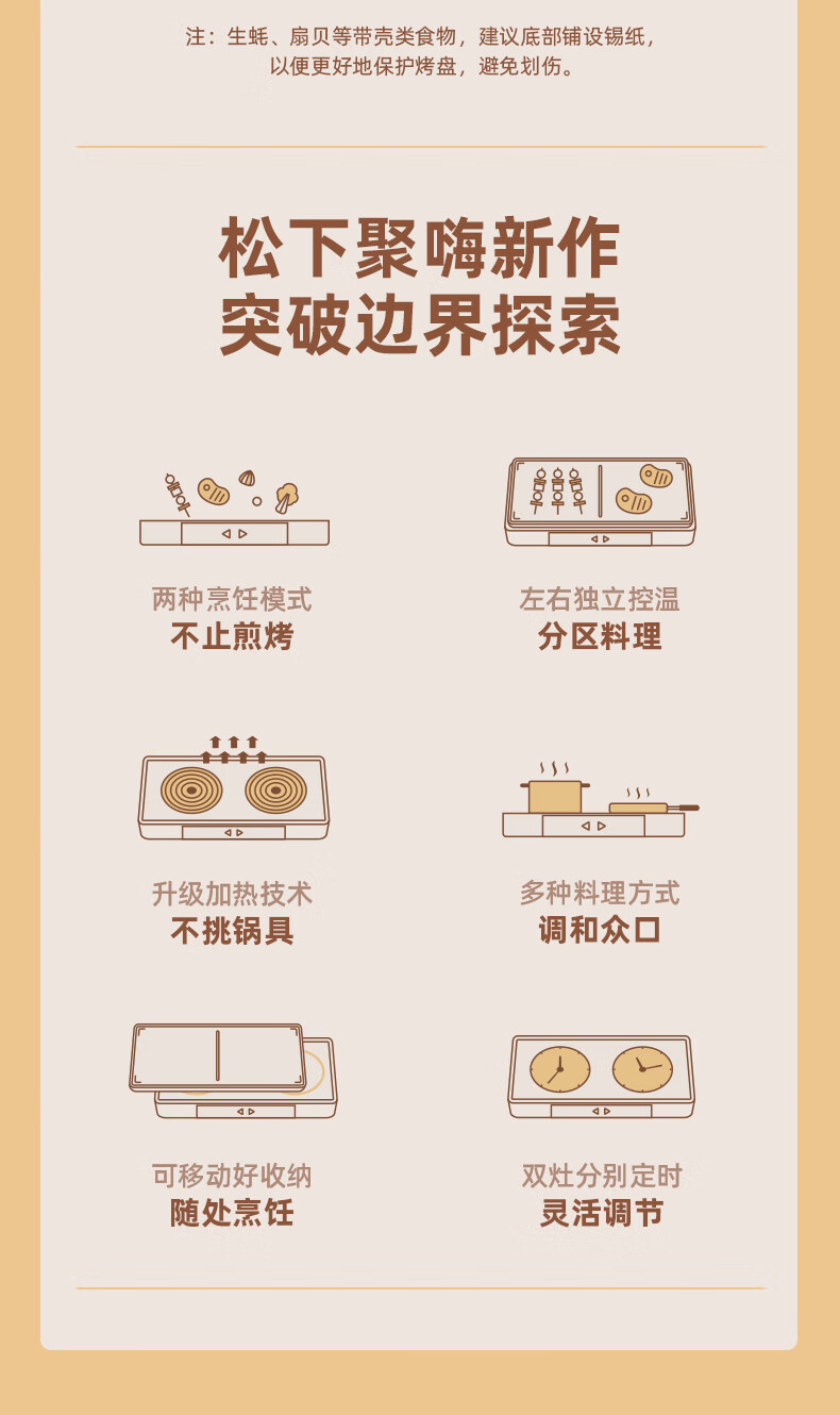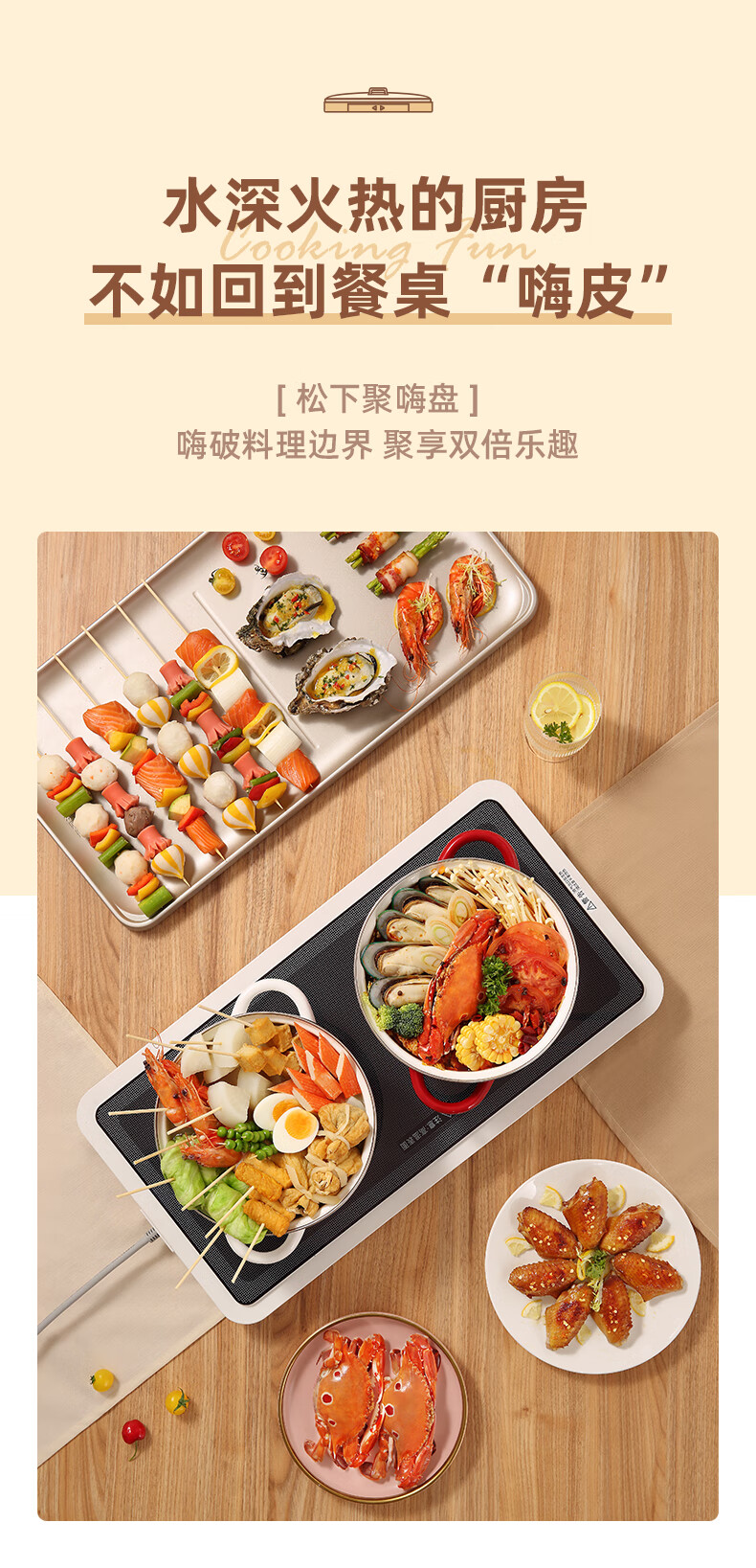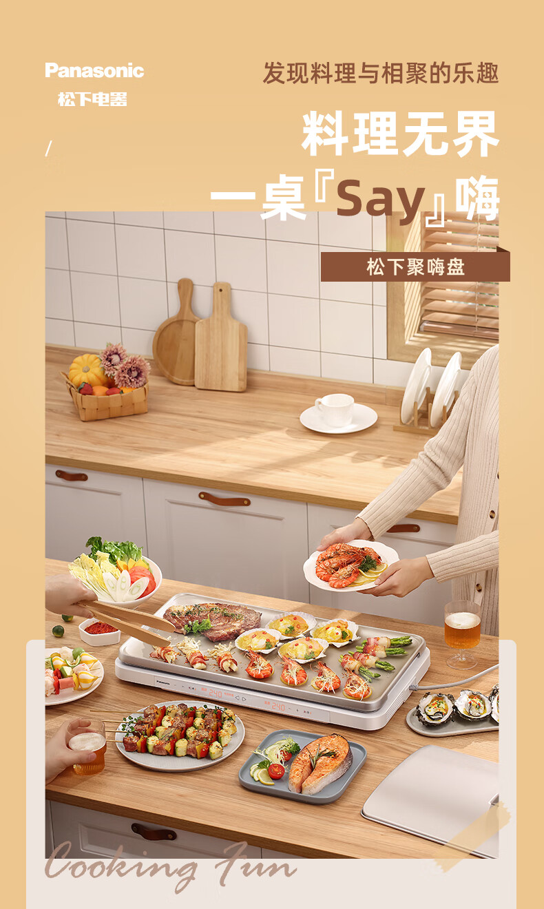 松下 PanasonicNF-M1-N 金色 聚嗨盘网红锅 多功能电热盘 双灶分区控温 多功能用途锅 电烤盘料理锅