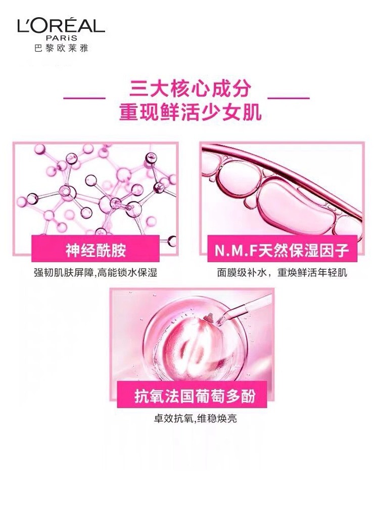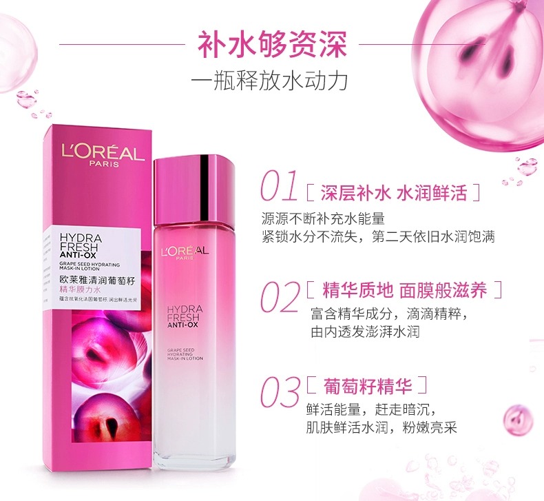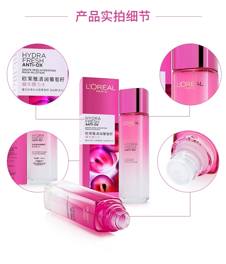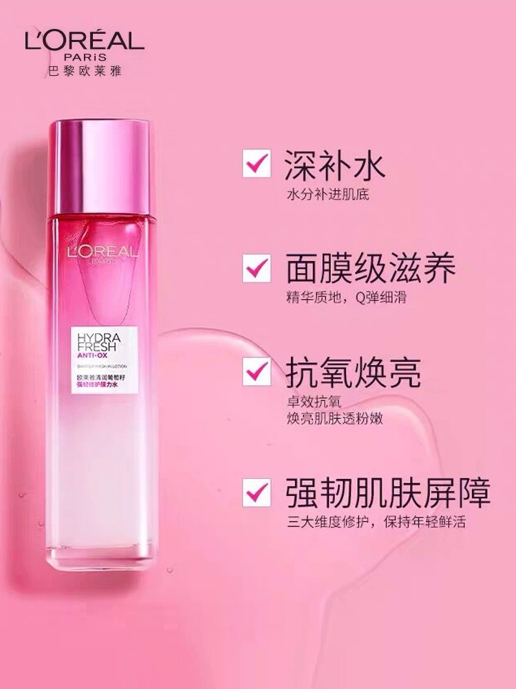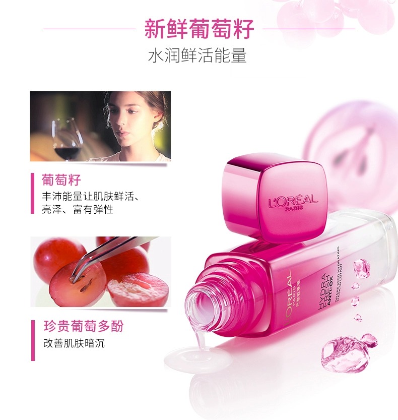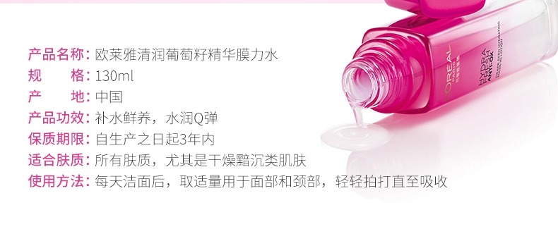 【到手130ml】欧莱雅清润葡萄籽精华膜力水 65ML*2