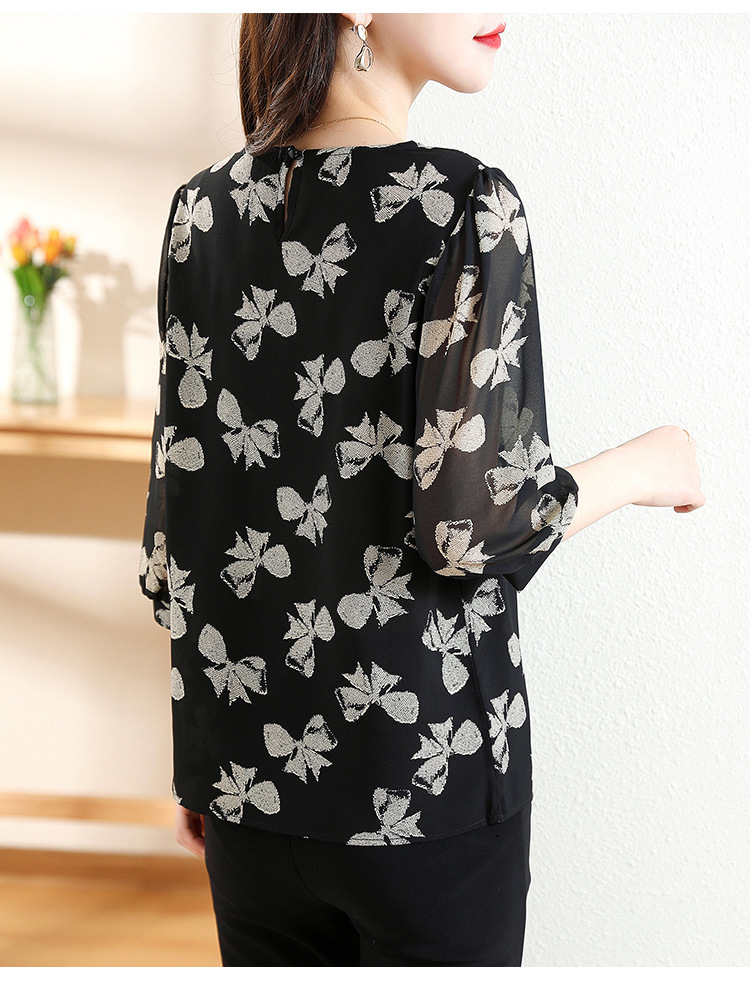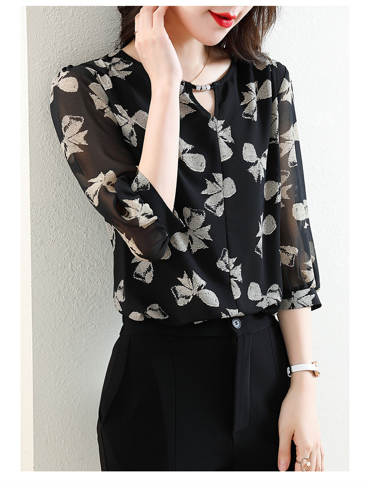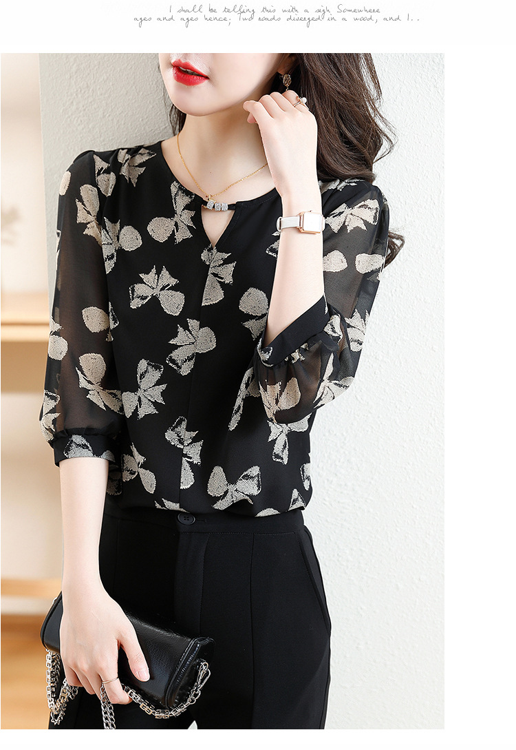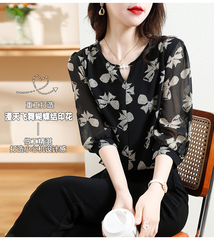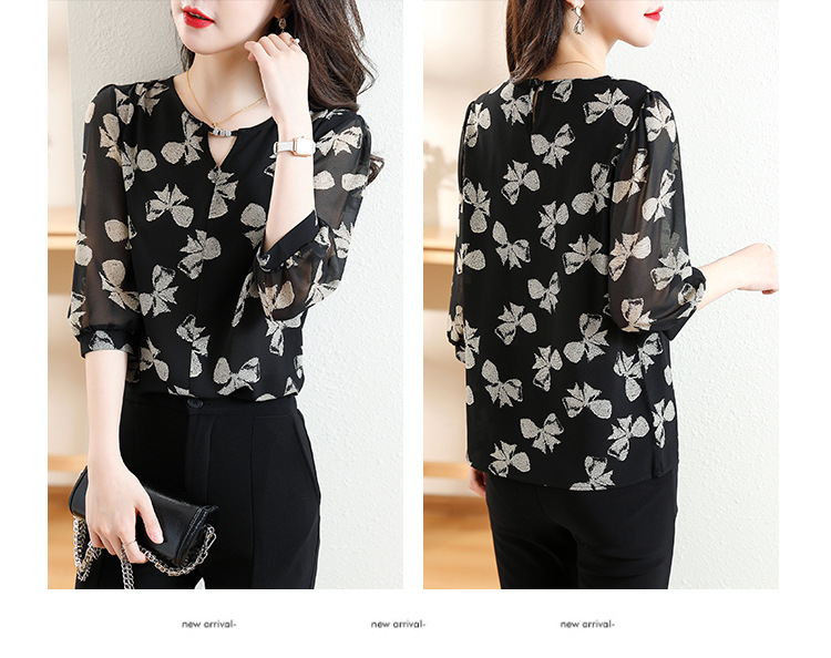 宽松修身显瘦,减龄百搭碎花雪纺衫KQL-E216N3782