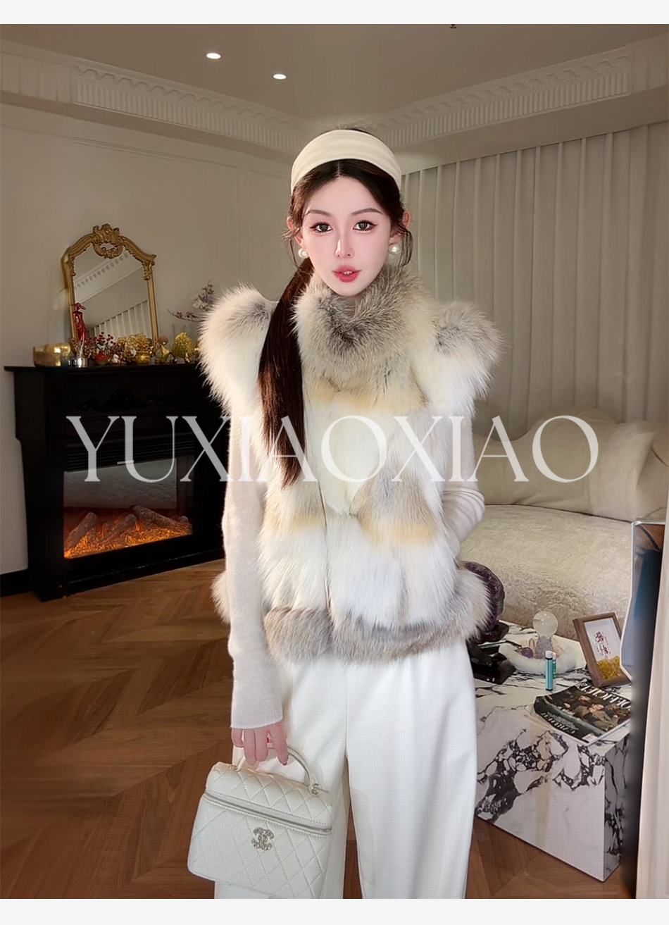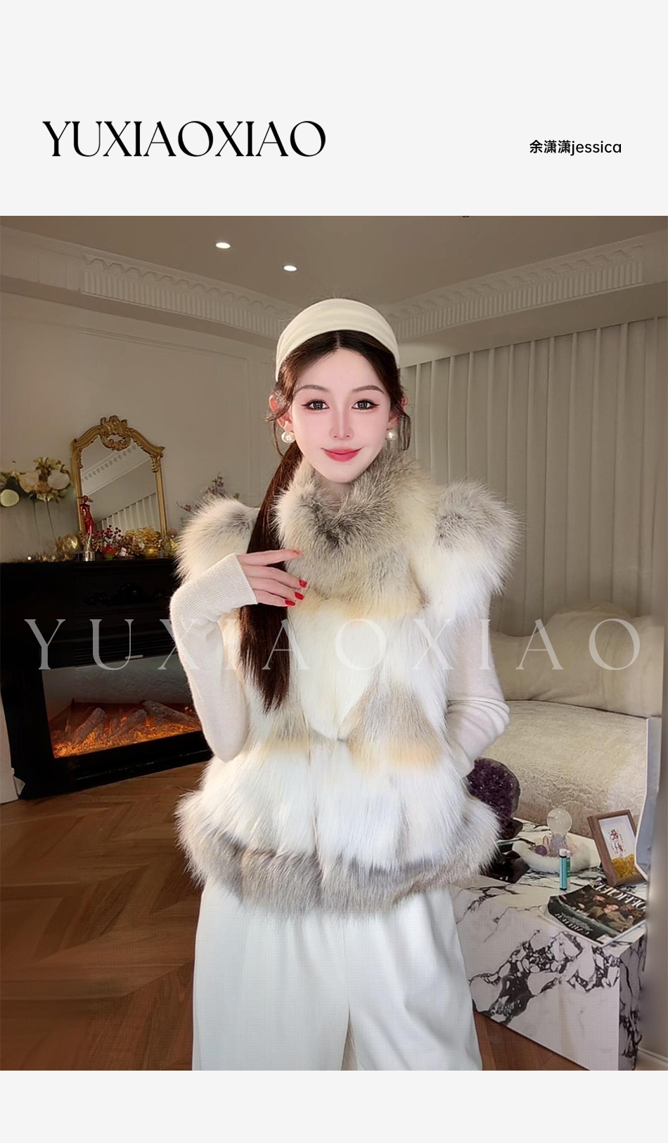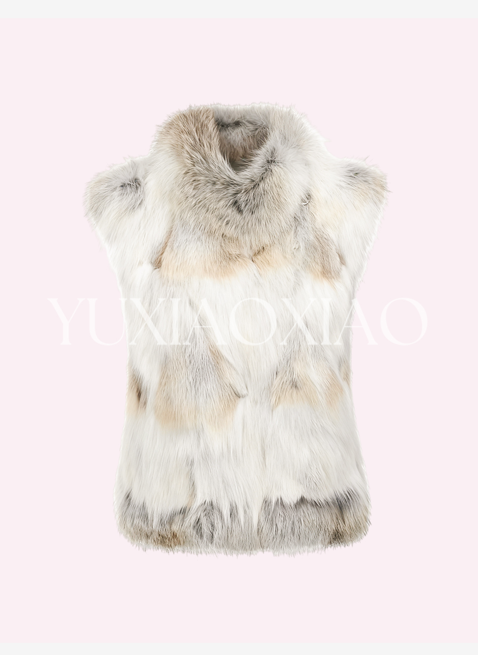 余潇潇【白金时代】高级层次感芬兰狐狸毛拼绵羊皮立领皮草马夹
