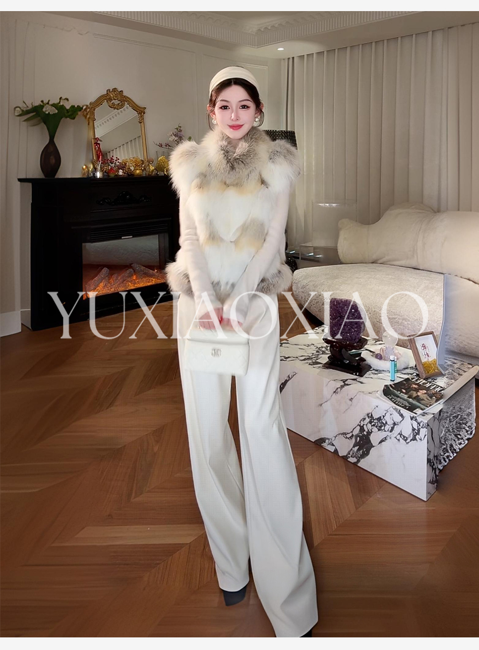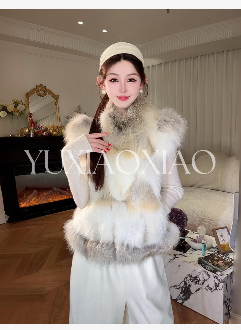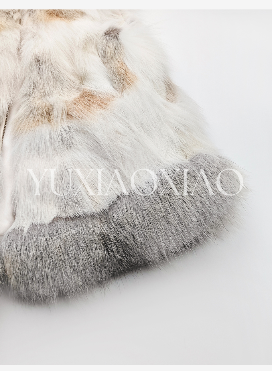 余潇潇【白金时代】高级层次感芬兰狐狸毛拼绵羊皮立领皮草马夹
