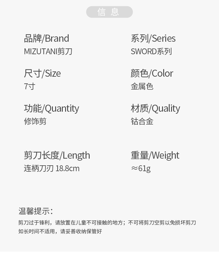 日本水谷 平剪 MIZUTANI剪刀SWORD DAMA D-07 半手型手柄/多角度去量操作/锋利/修饰剪/半手型/平剪/7.0