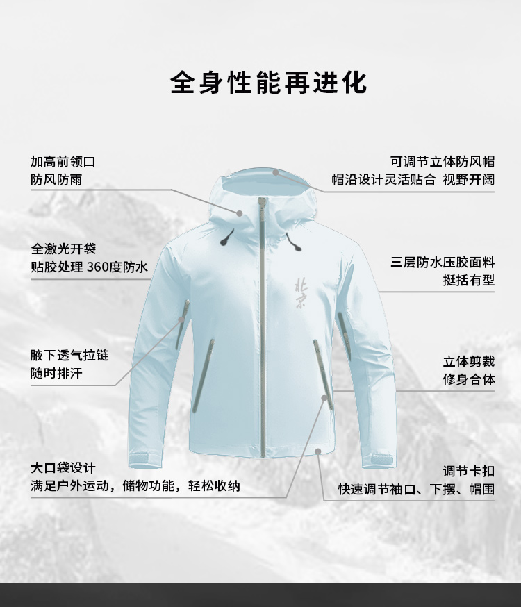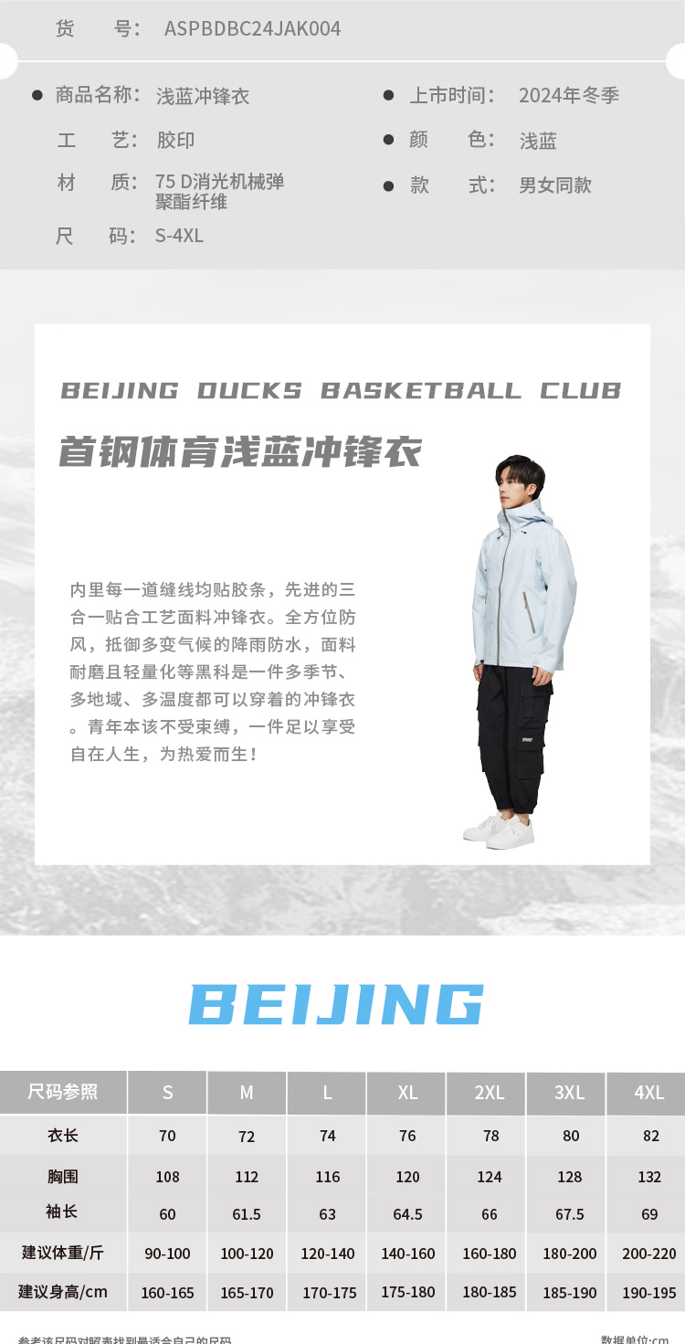 【官方正版】北京首钢篮球俱乐部 | 浅蓝冲锋衣防风防雨夹克