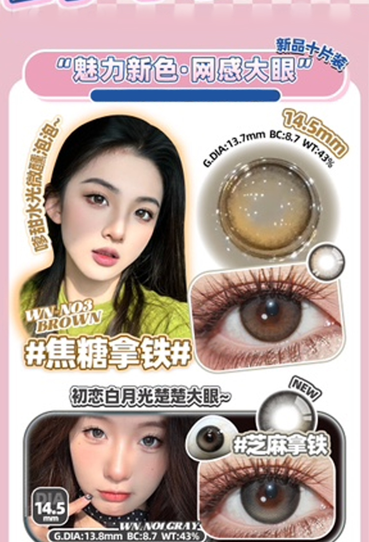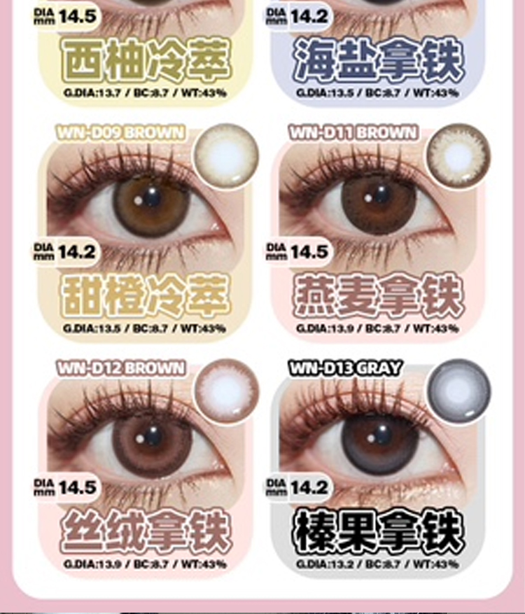 【日抛】winni新品上市 直径14.2/14.5 含水43% 10片/盒(度数不同请拍两盒)