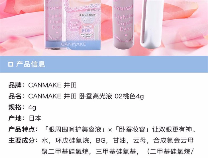 【保税仓】CANMAKE/井田 卧蚕高光液 #02 所有肤色 4g