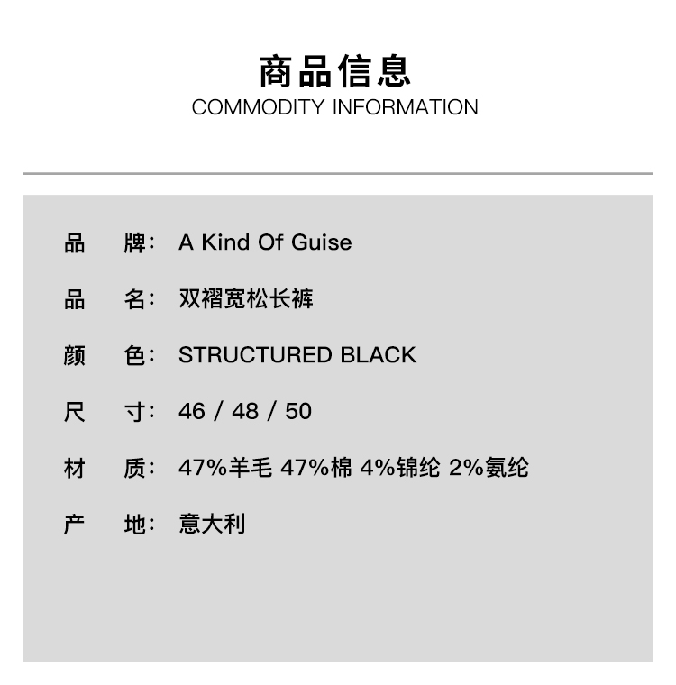 A KIND OF GUISE PIERO PANTS 意大利羊毛棉混纺双褶宽松长裤