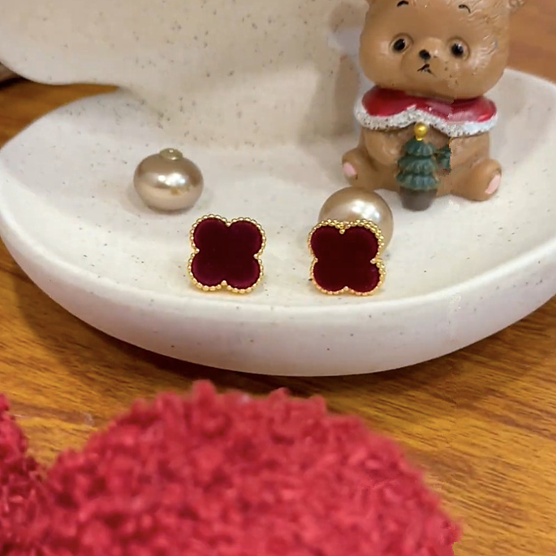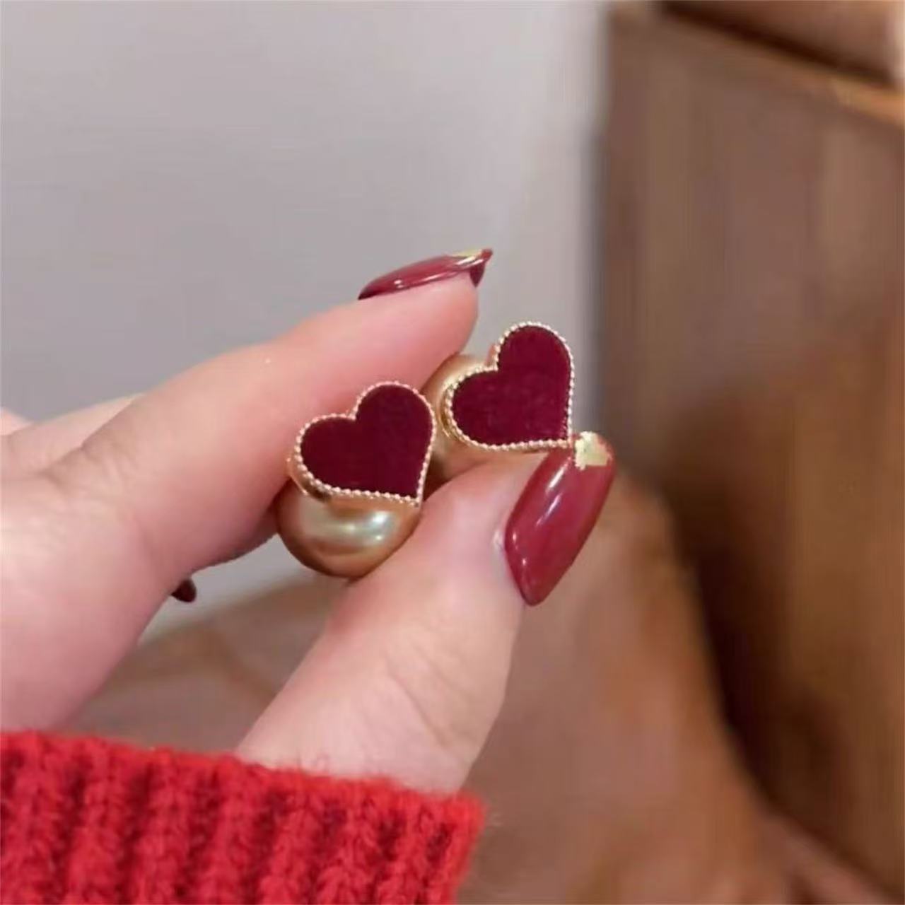 【新年吸睛神器❗️百搭不挑人】2026新款新年喜庆耳环女时尚轻奢高级感耳钉珍珠植绒气质经典耳饰。jc