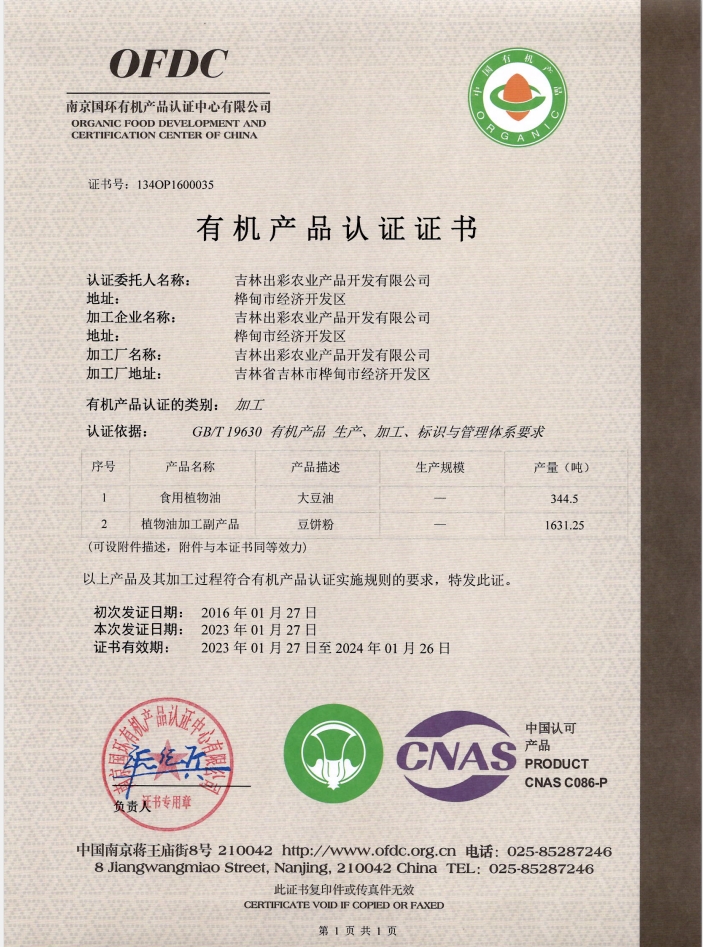 严格种植管理:中国、欧盟、美国三大体系有机认证,选用非转基因种子,3重保证制油原料的安全性。