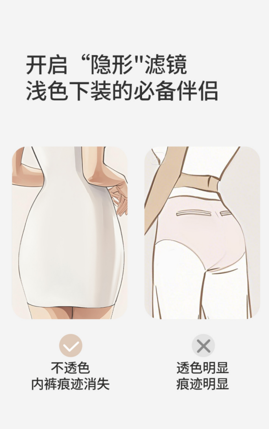 家人们谁还没被透色尴尬过? 这条直接给我锁死! 裸感色调超自然,跟皮肤融为一体 穿浅色裙子、裤子完全不社死! 说是第二层肌肤都不过分,夏天随便搭都超隐形,偷偷变美小心机拿捏!