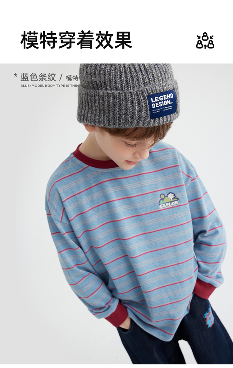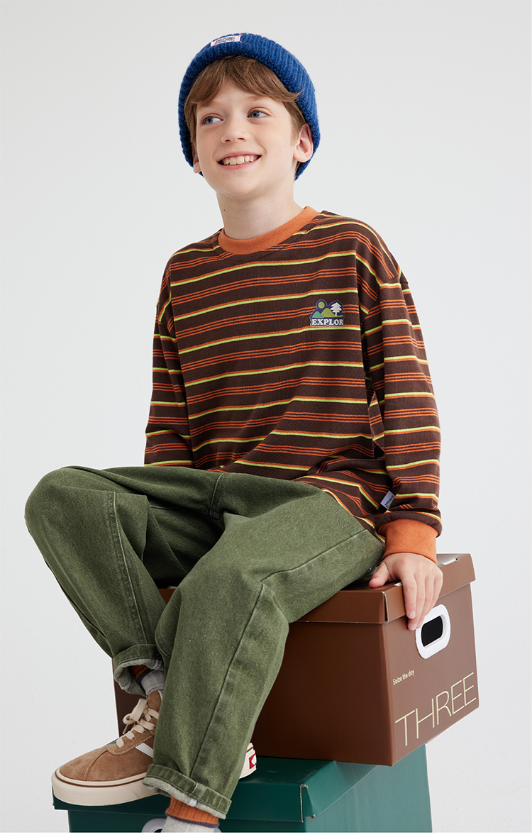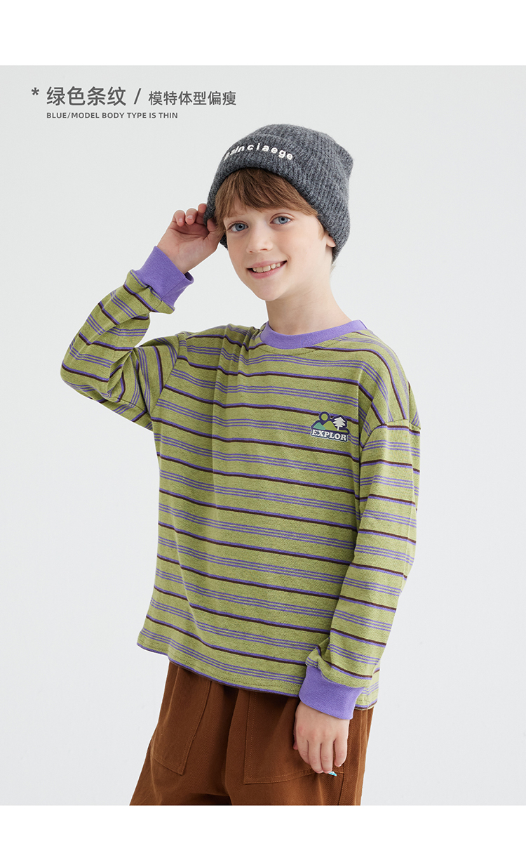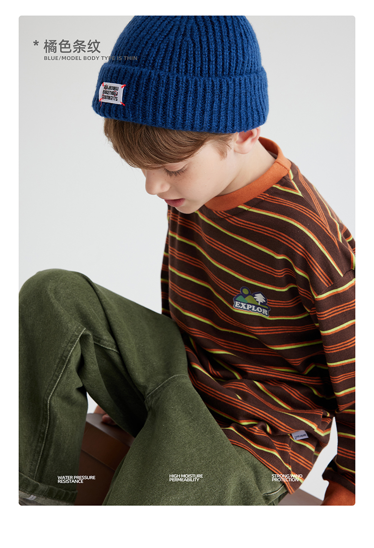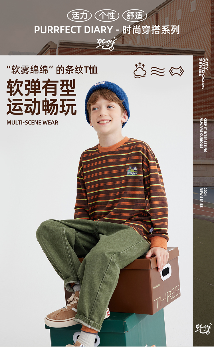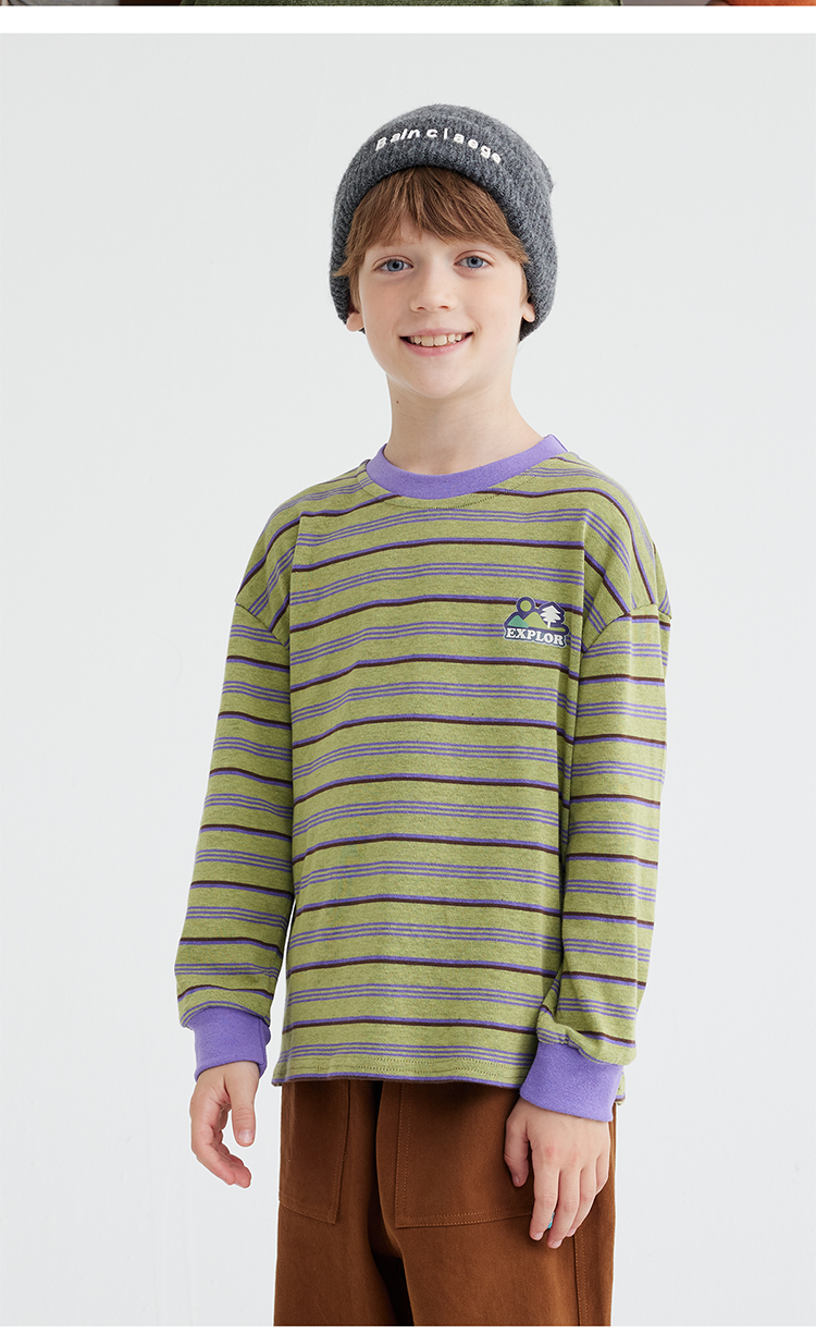 【雾棉彩纱 轻软亲肤】儿童山系小彩条休闲T恤 PQTX2415