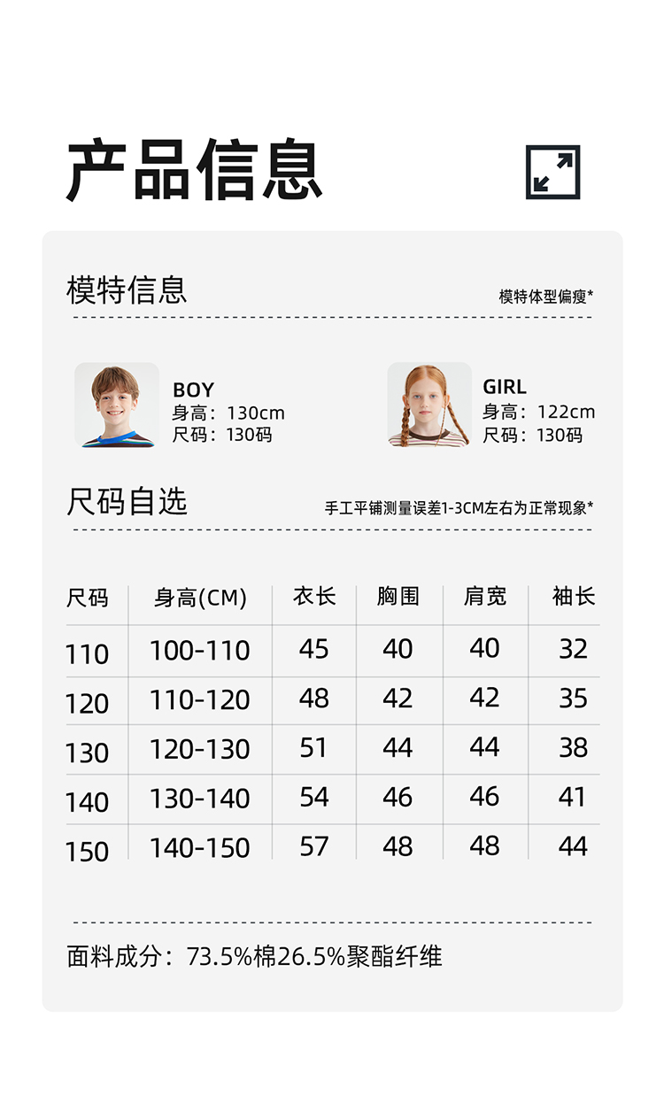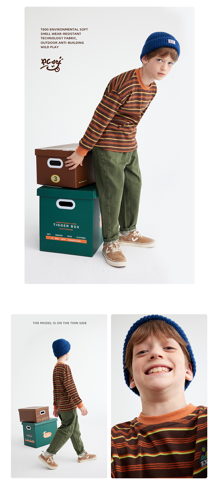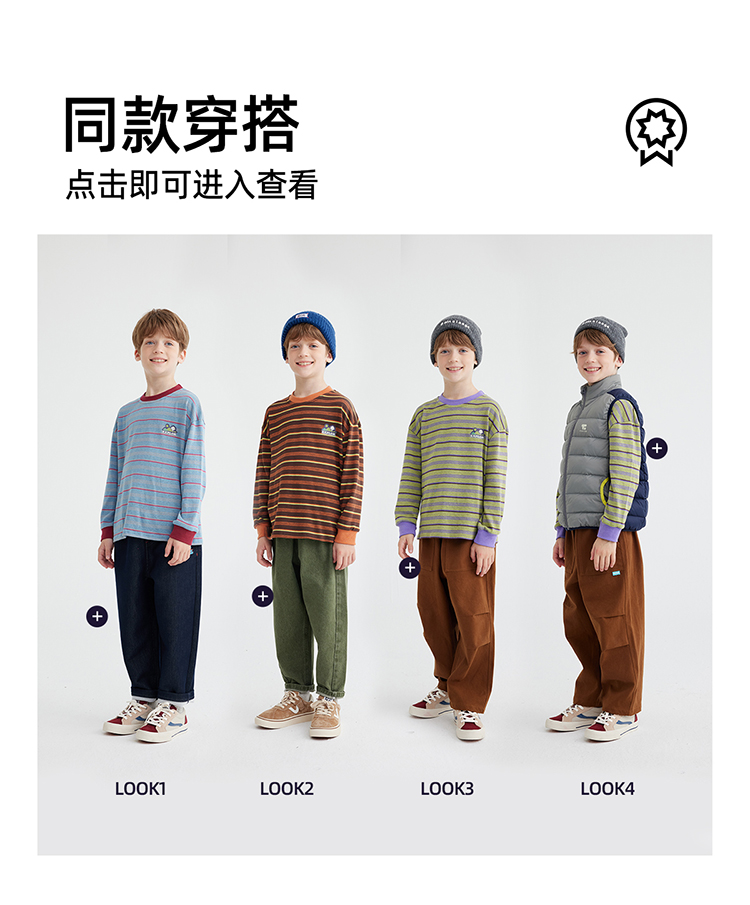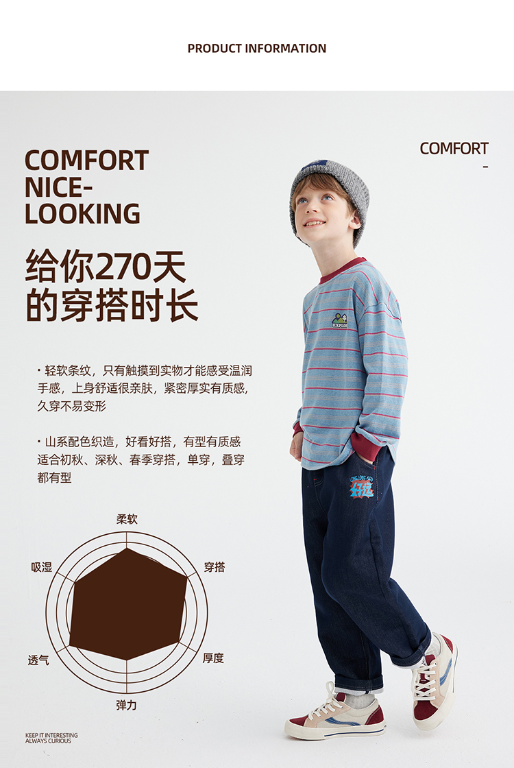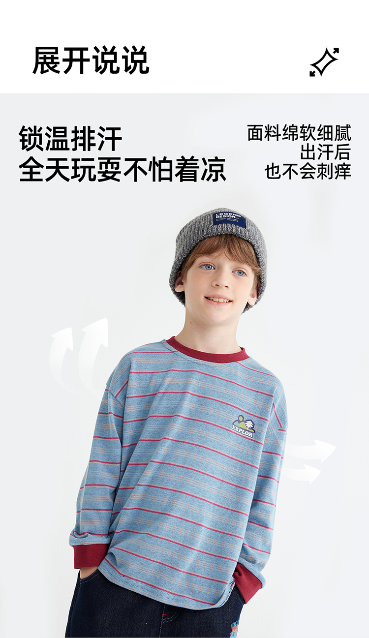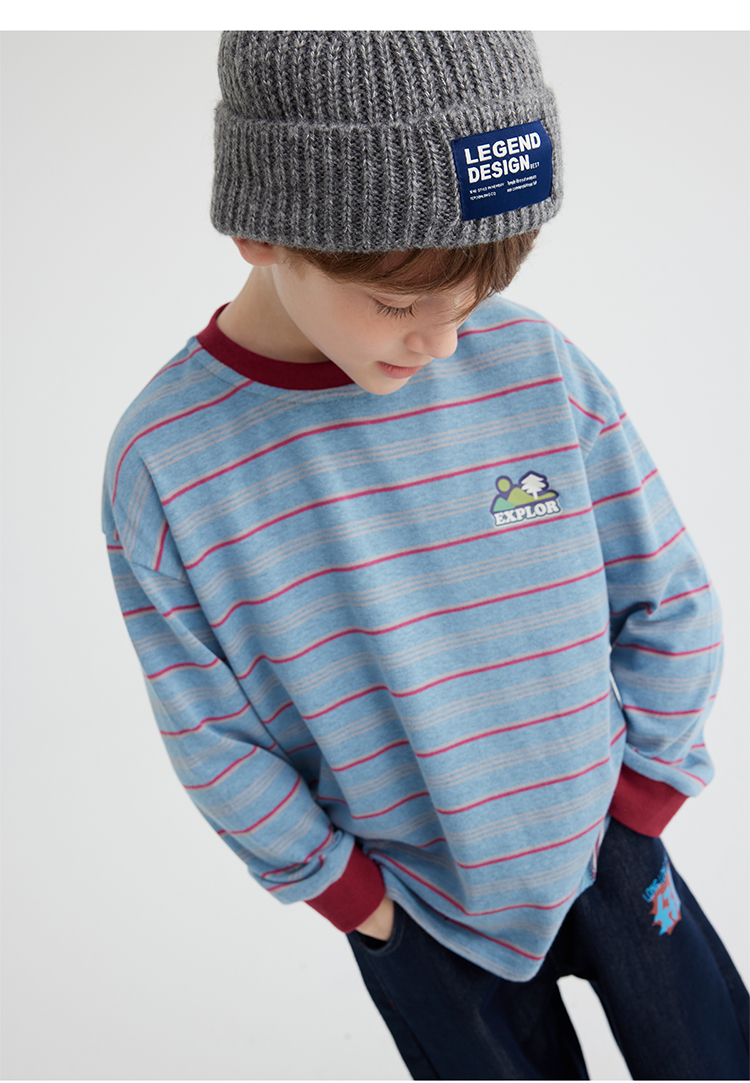 【雾棉彩纱 轻软亲肤】儿童山系小彩条休闲T恤 PQTX2415