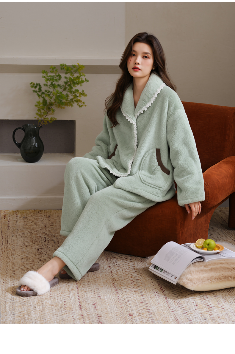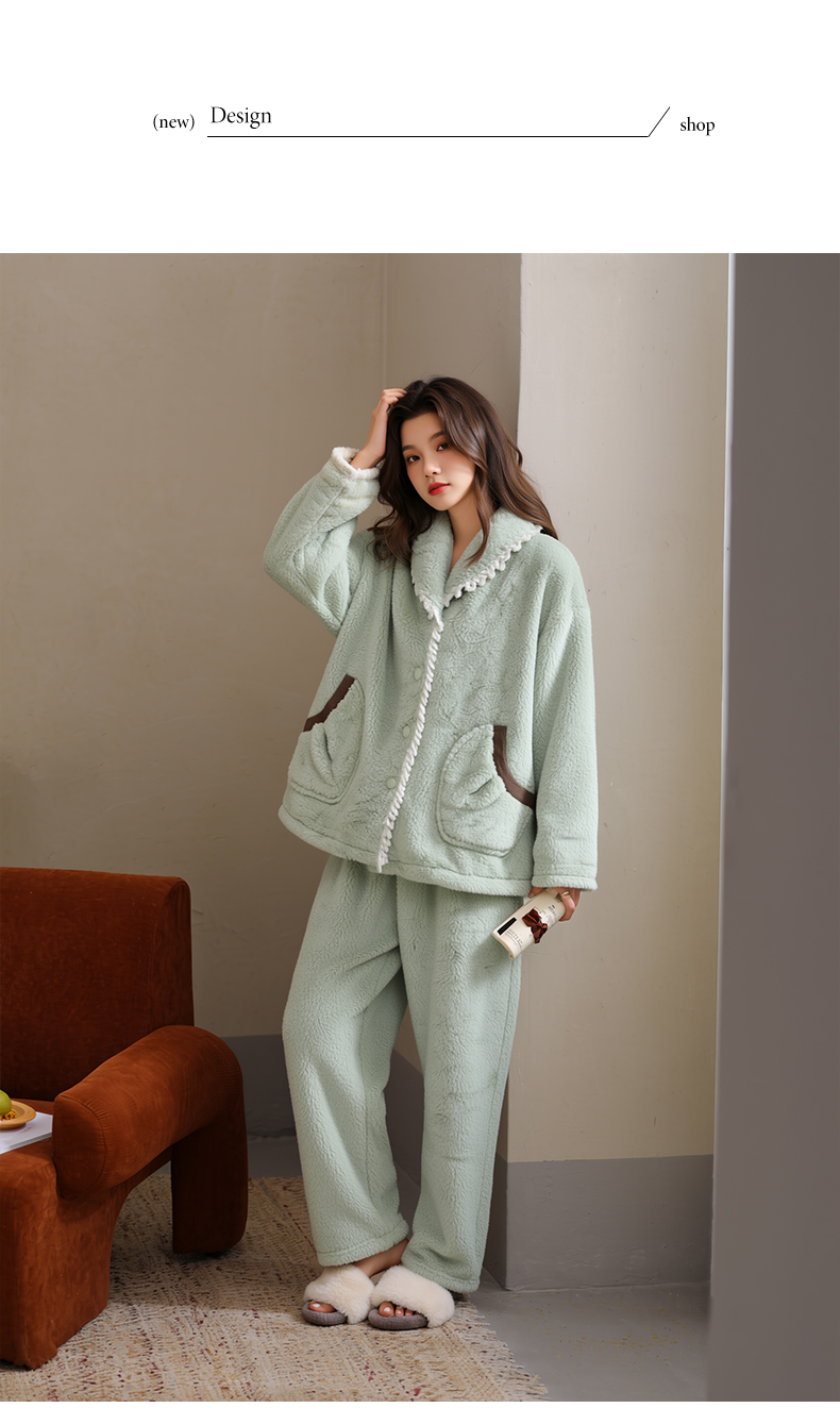 可人儿原创冬季舒棉绒女士睡衣韩系加厚保暖可外穿珊瑚绒家居服