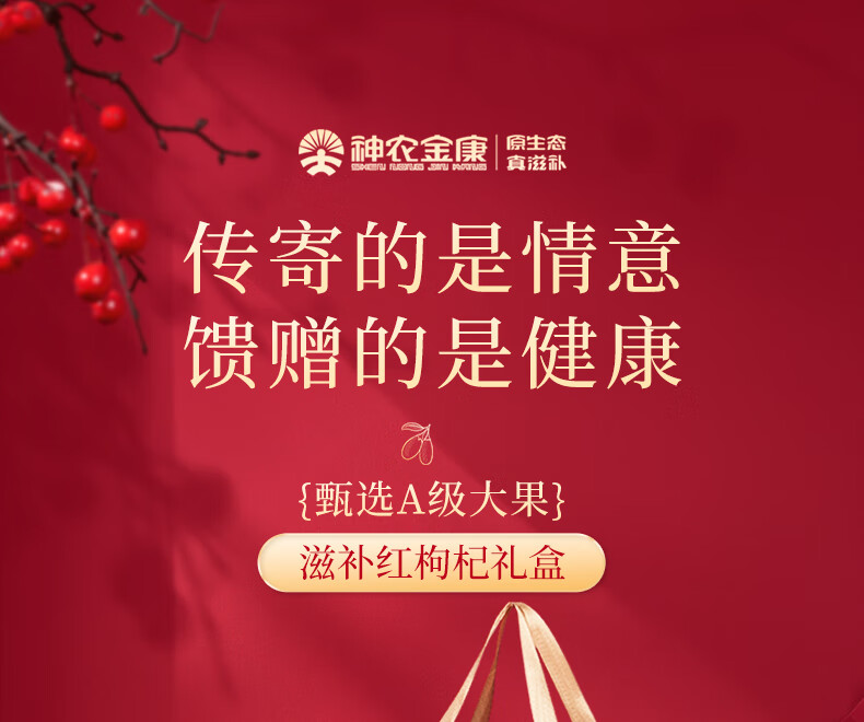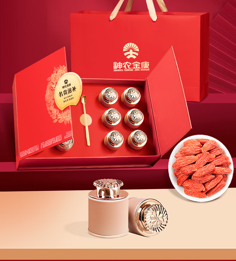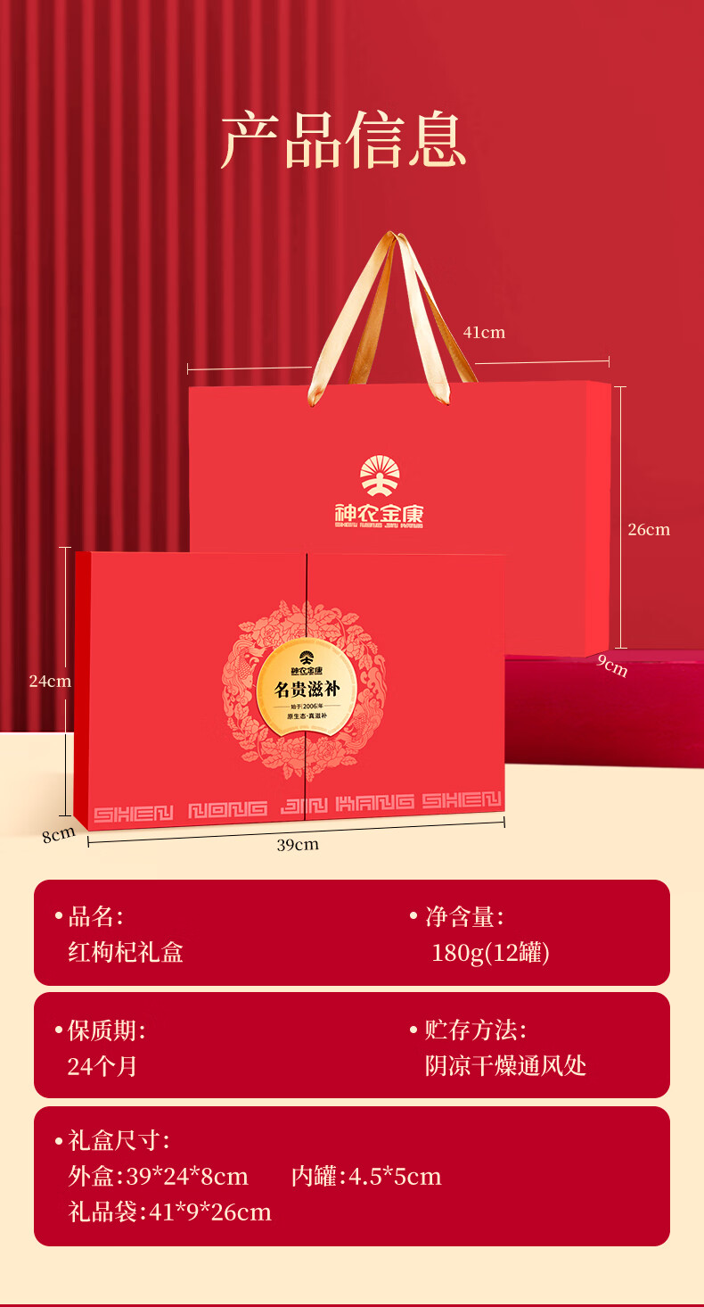 【礼盒】神农金康 头茬红枸杞礼盒装180g(15g*12罐)大果特优级宁夏新货枸杞过年年货节日送礼长辈父母中老年人礼物 原生态真滋补 喝护家人健康