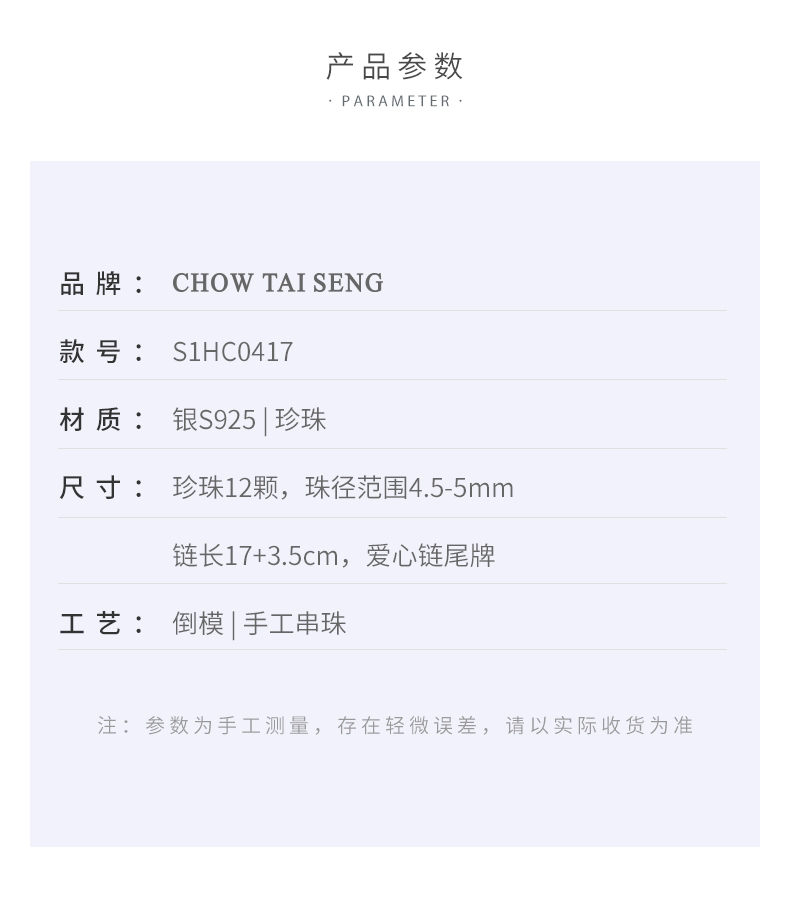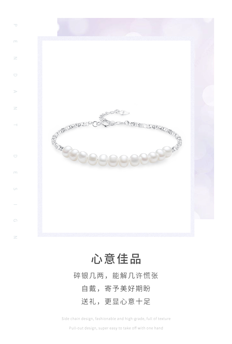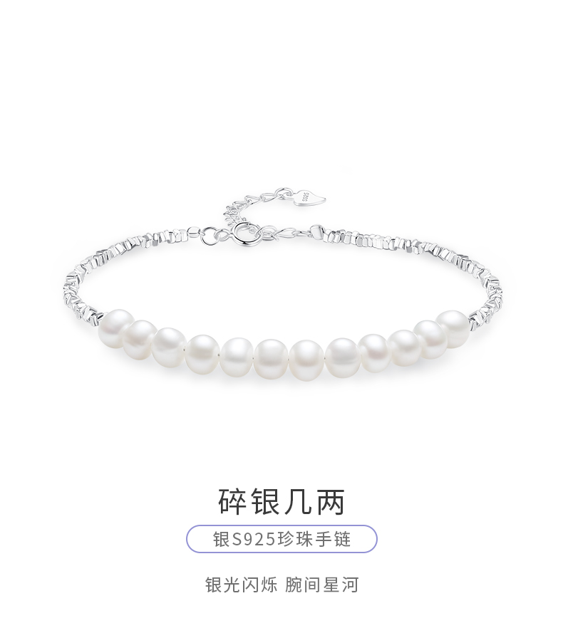 周大生碎银子几两珍珠手链女轻奢手串纯银新款礼物送妈送女友