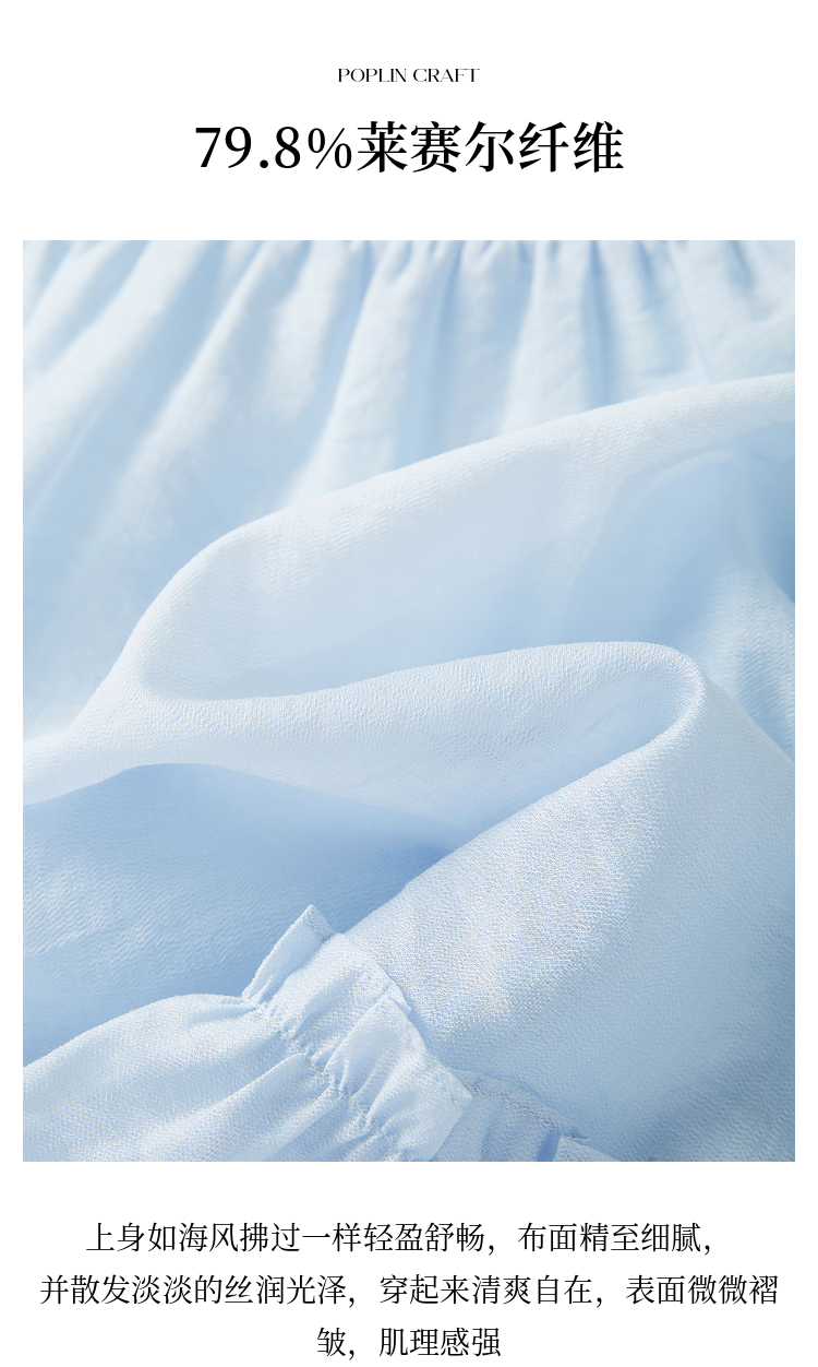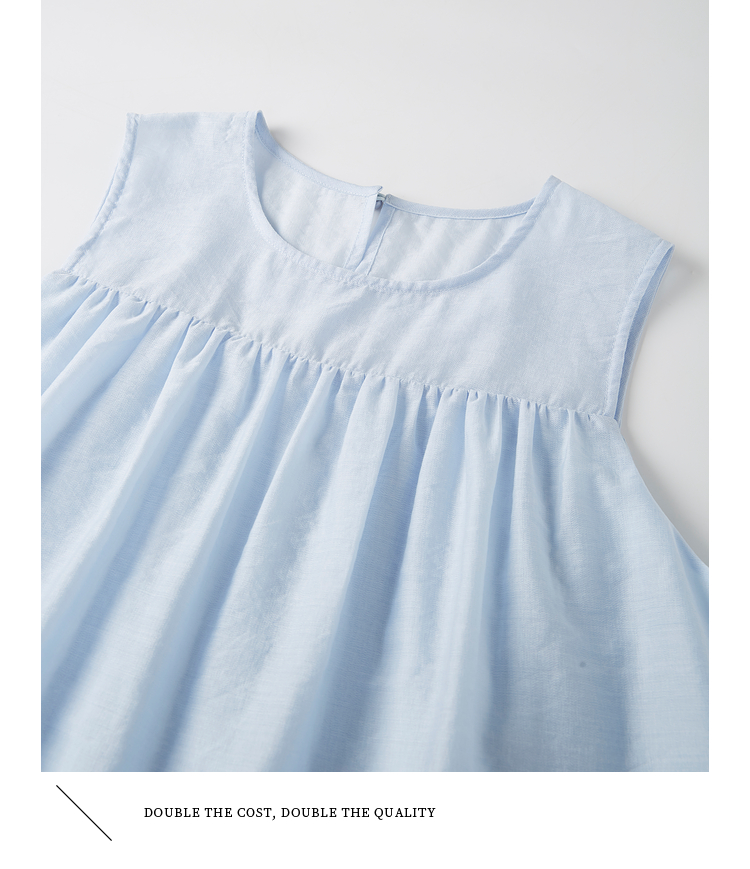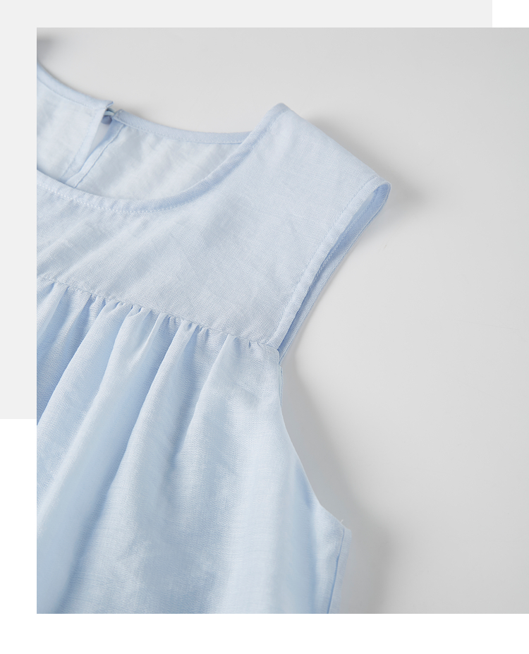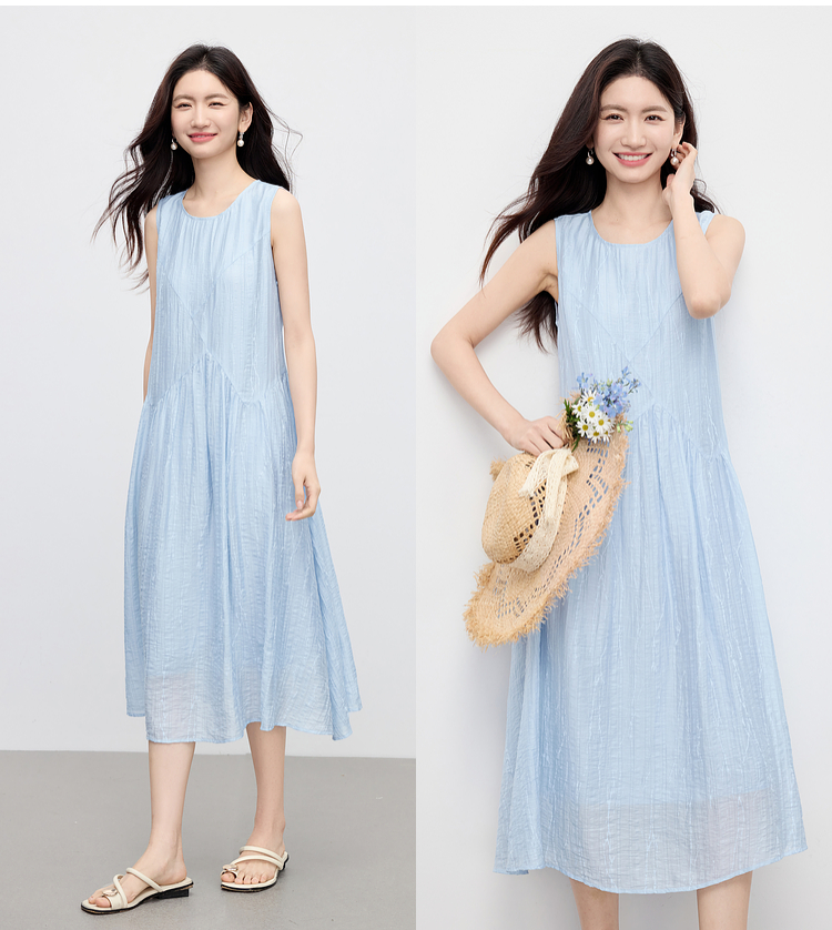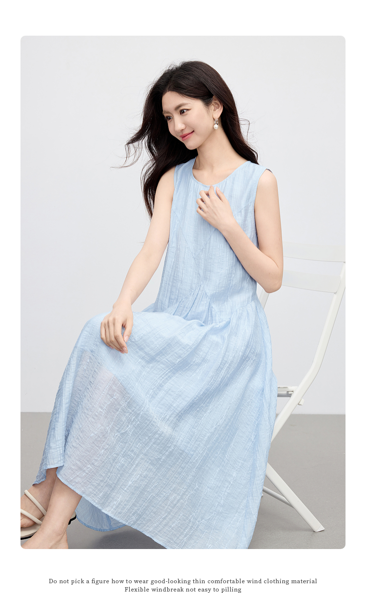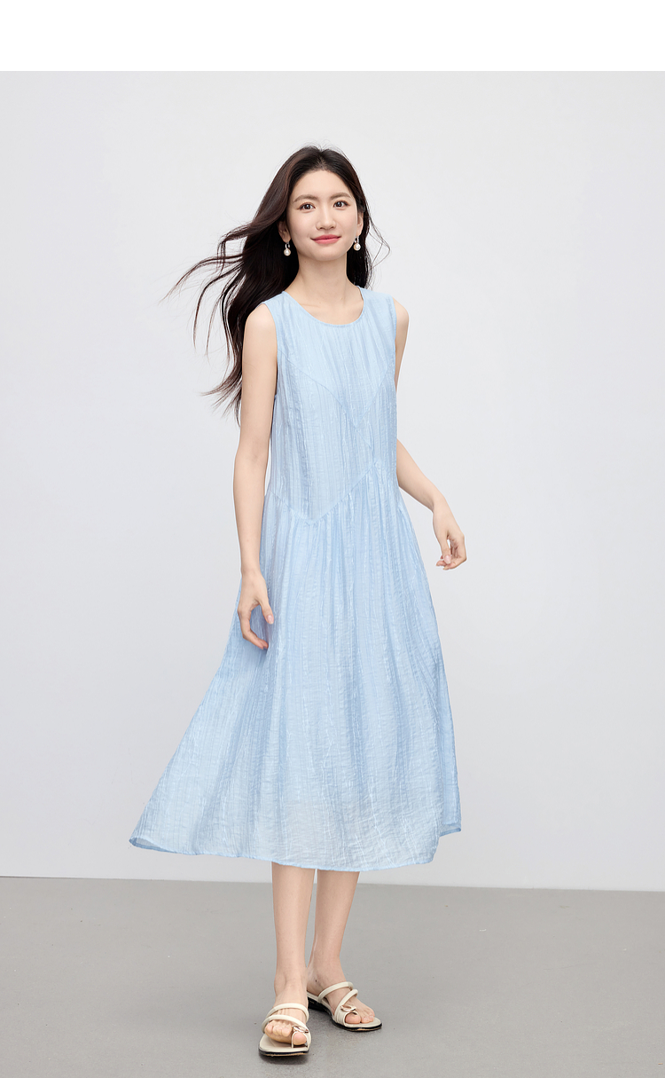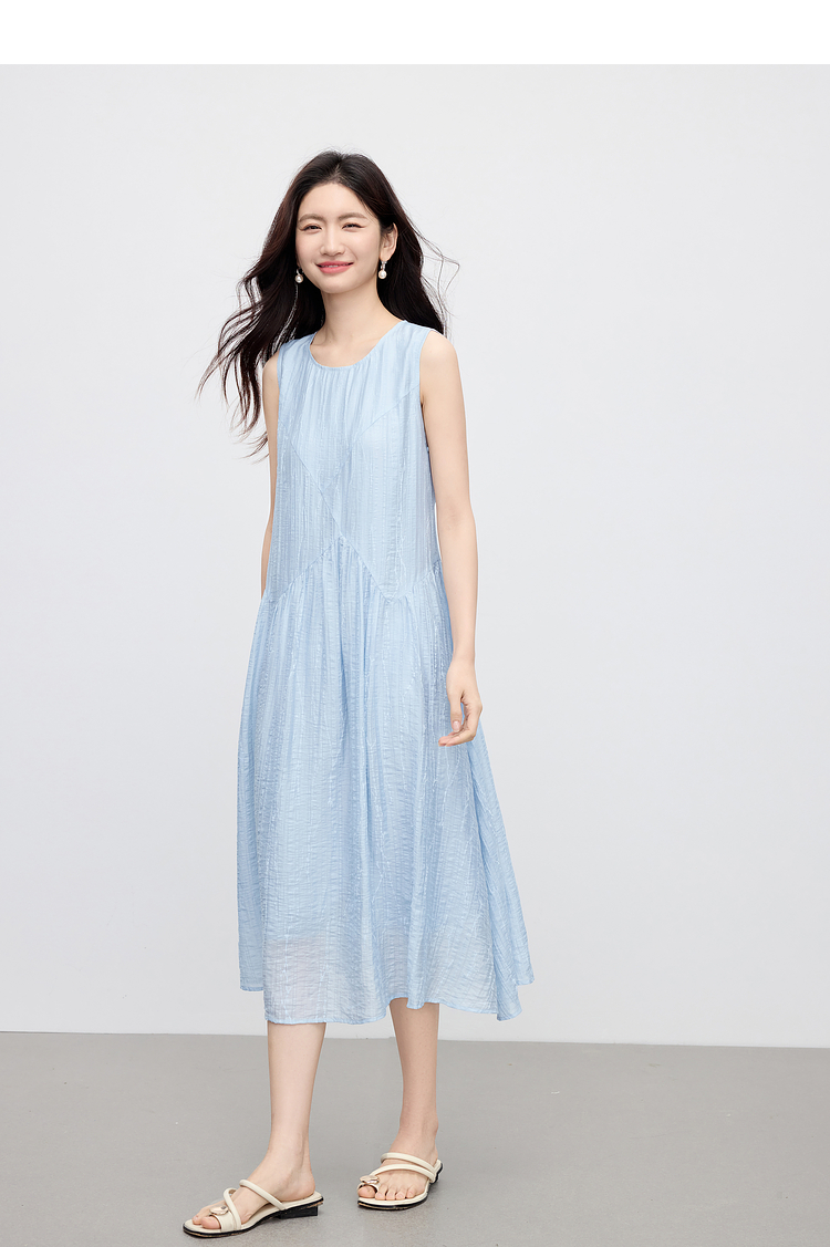 【周末秒杀】熙世界莱赛尔蓝色背心连衣裙女夏季新款气质圆领法式度假无袖裙子