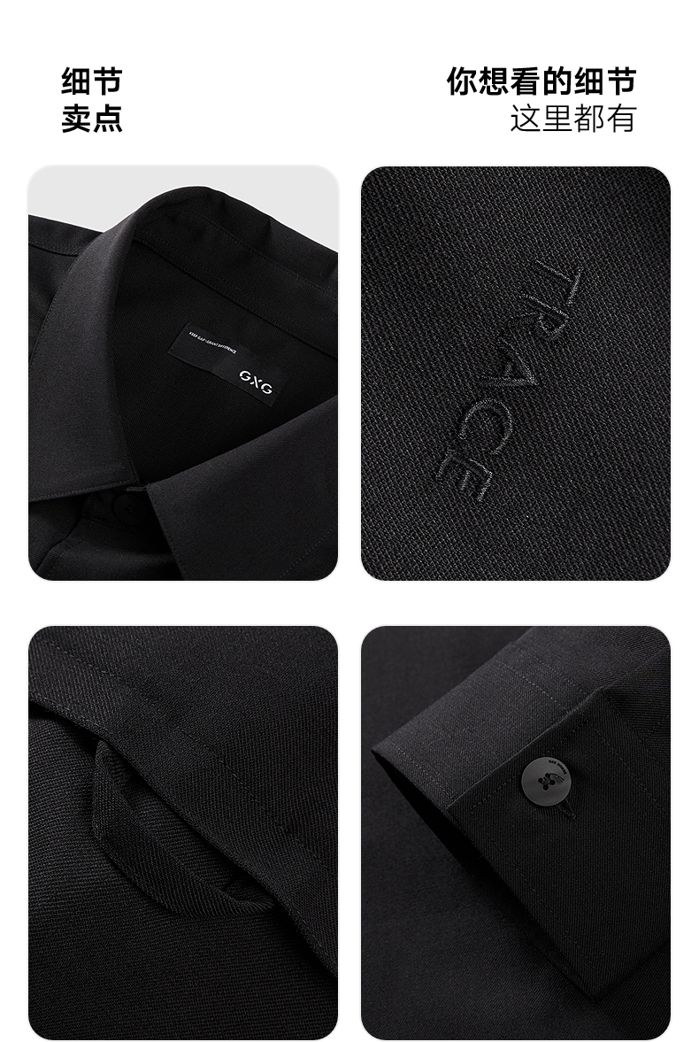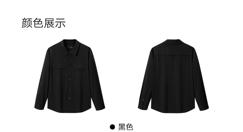GXG男装 黑色简约贴袋设计宽松长袖衬衫25年春季热卖G25X031023