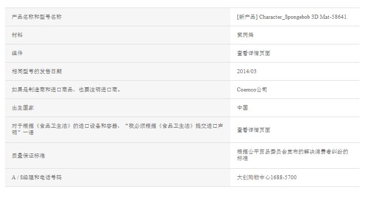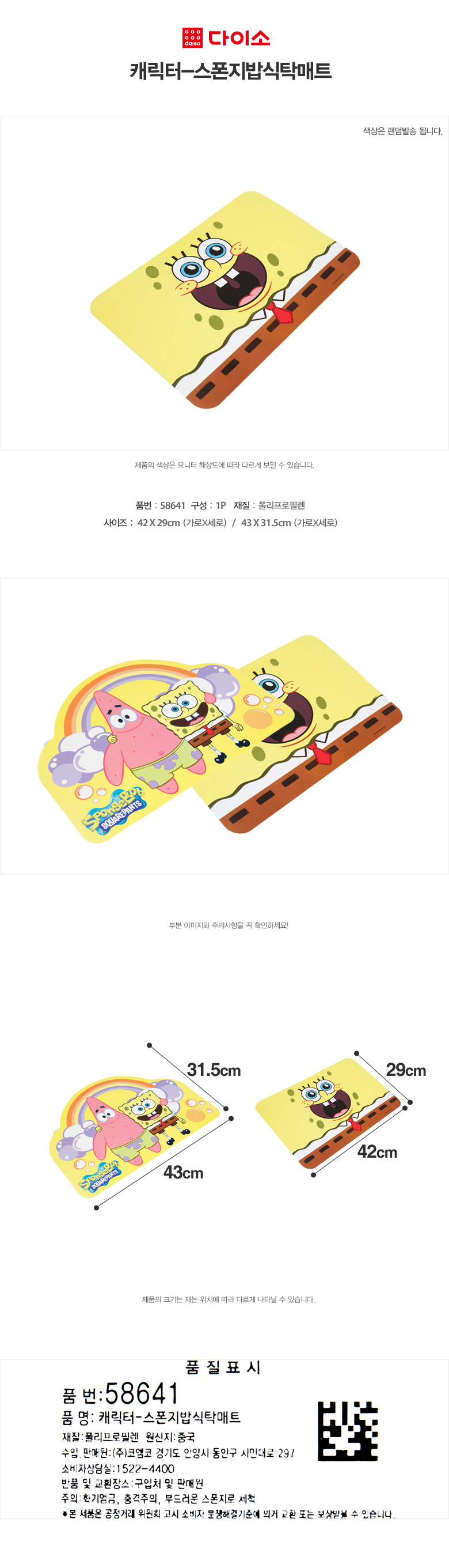 大创人物海绵宝宝桌垫-58641 Daiso Placemat 黄色餐垫JPY带授权招加盟代理