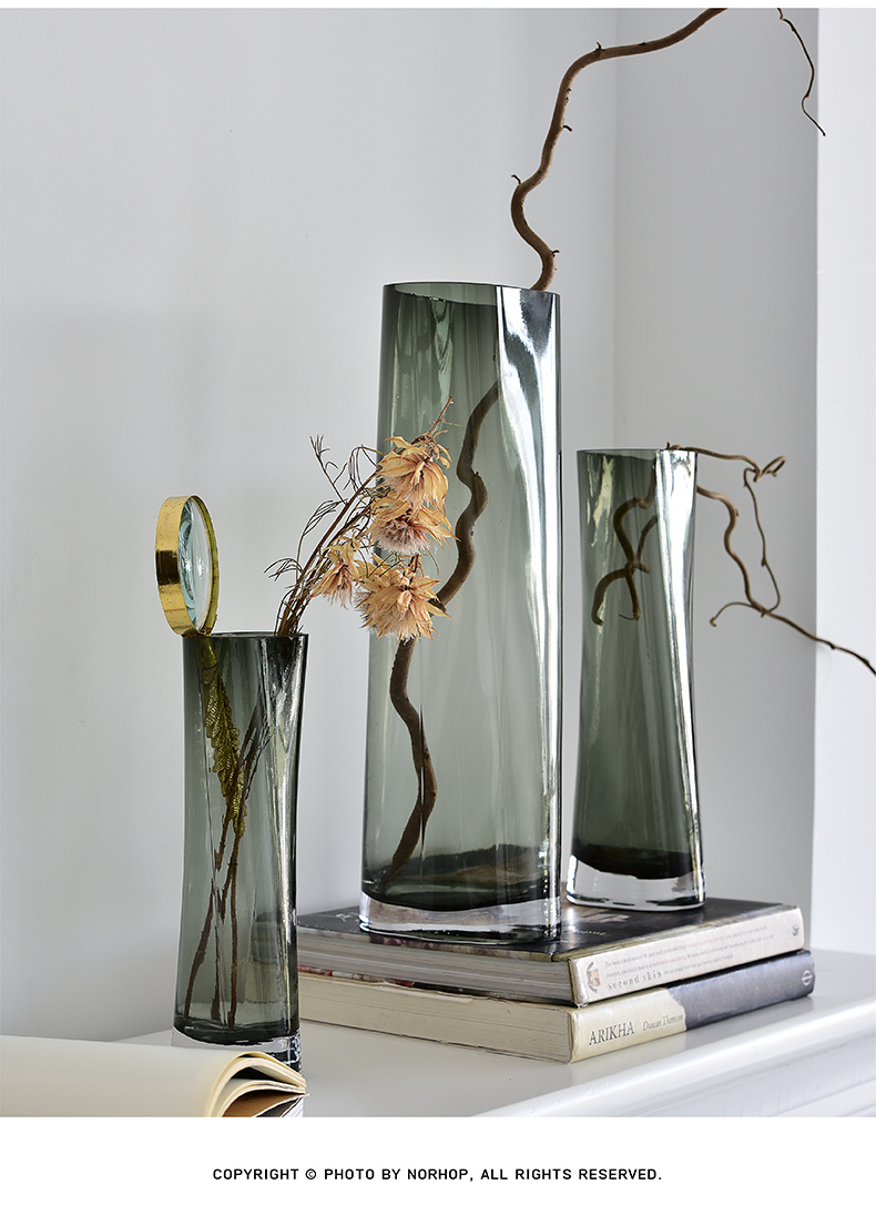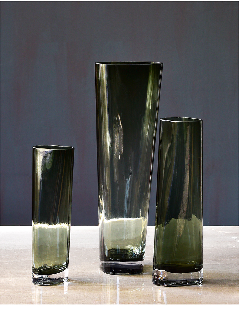 碧轩现代简约玻璃花瓶摆件 手工出口玻璃花瓶餐厅客厅卧室桌面装饰品