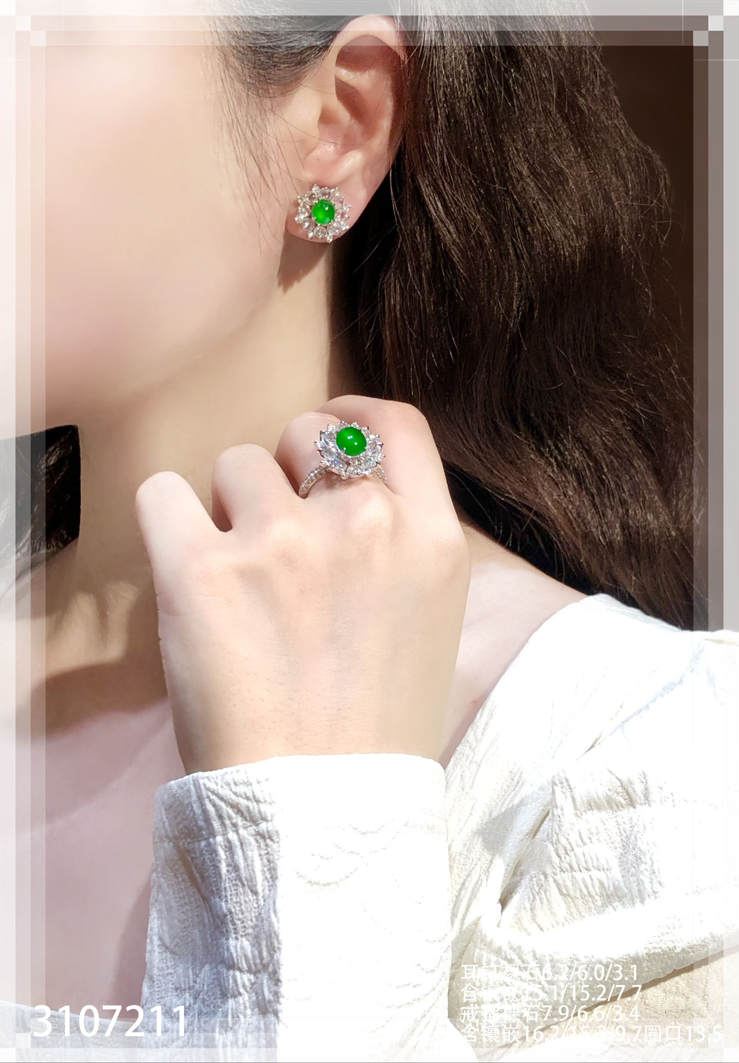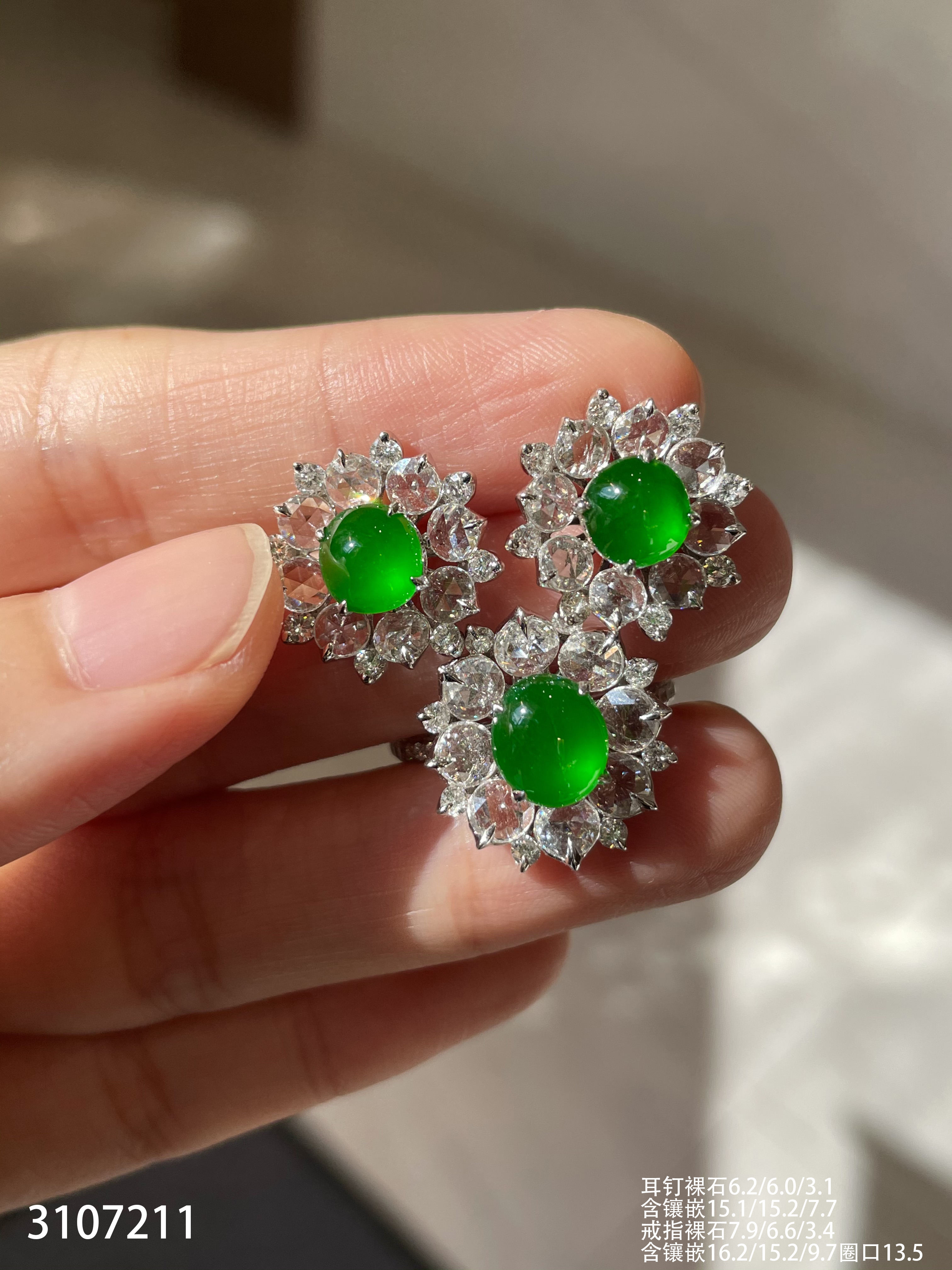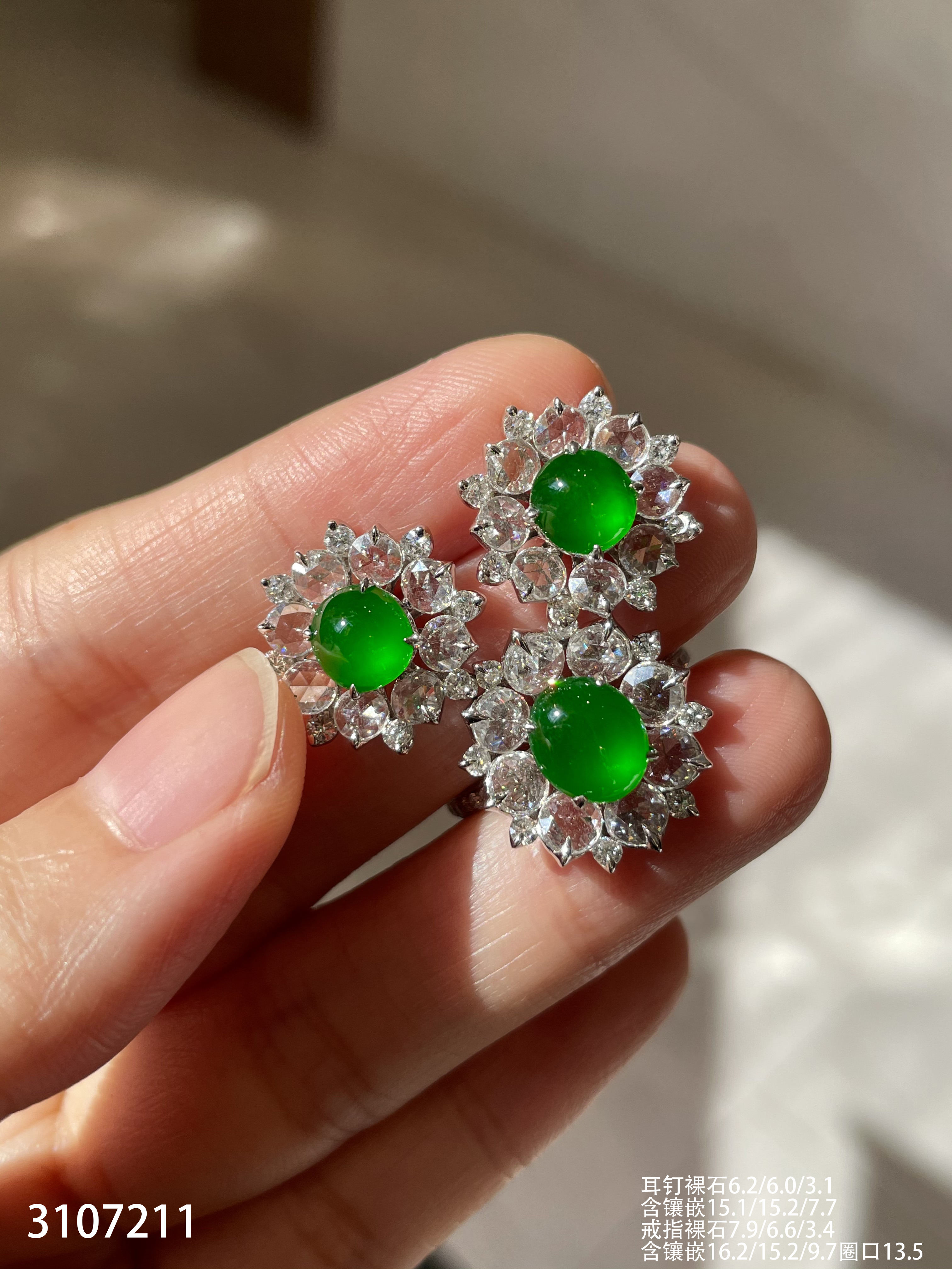 老坑玻璃种帝王绿蛋面套装【3107211】具体价格微信咨询