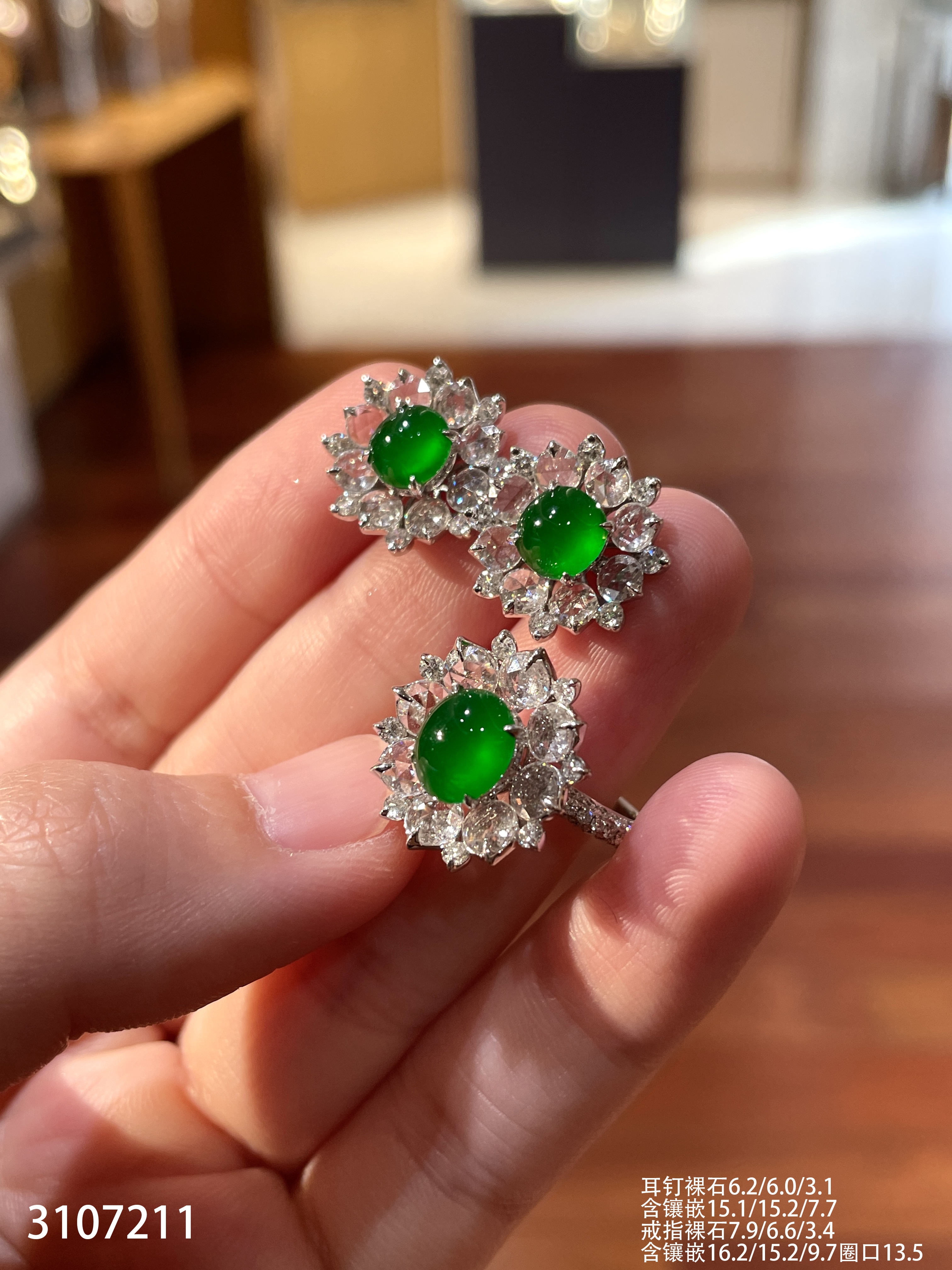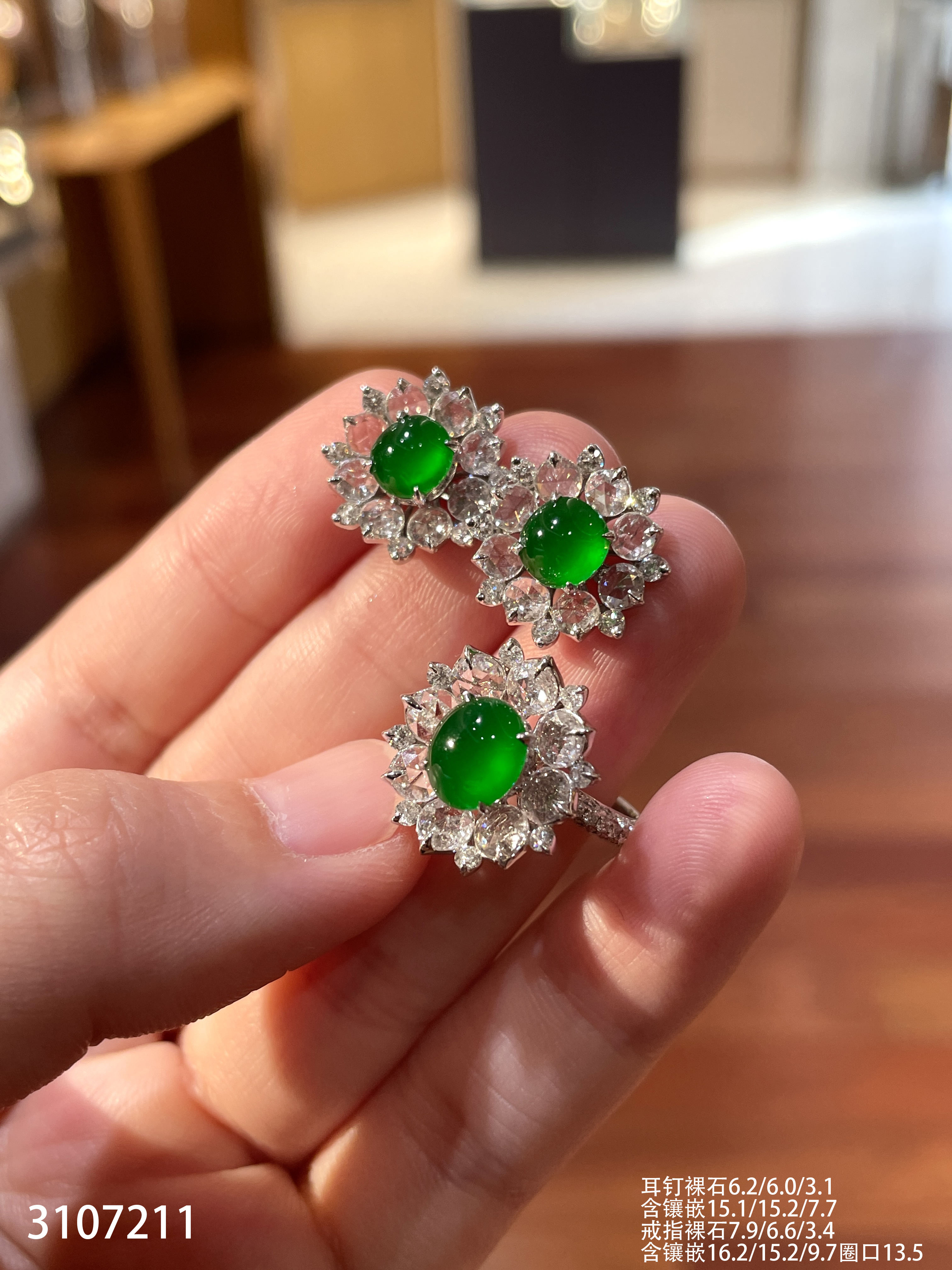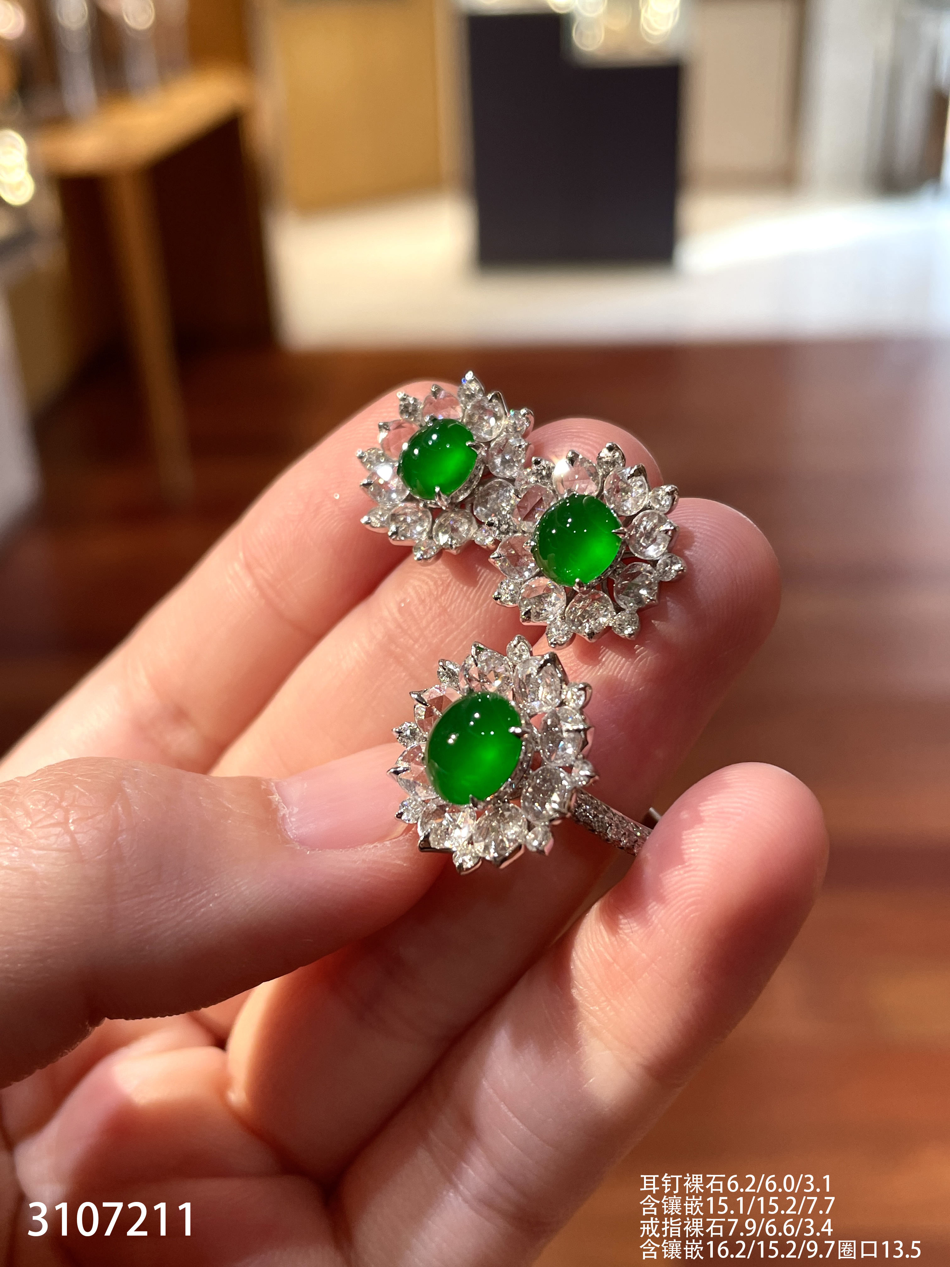 老坑玻璃种帝王绿蛋面套装【3107211】具体价格微信咨询