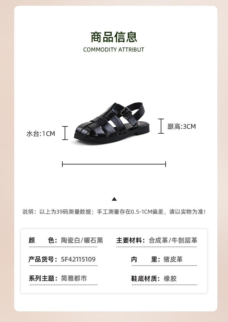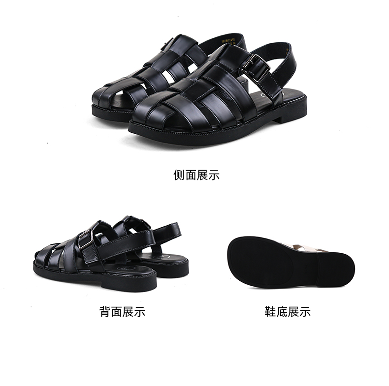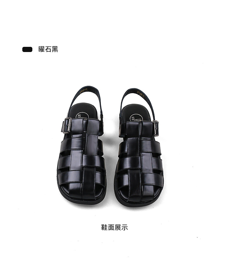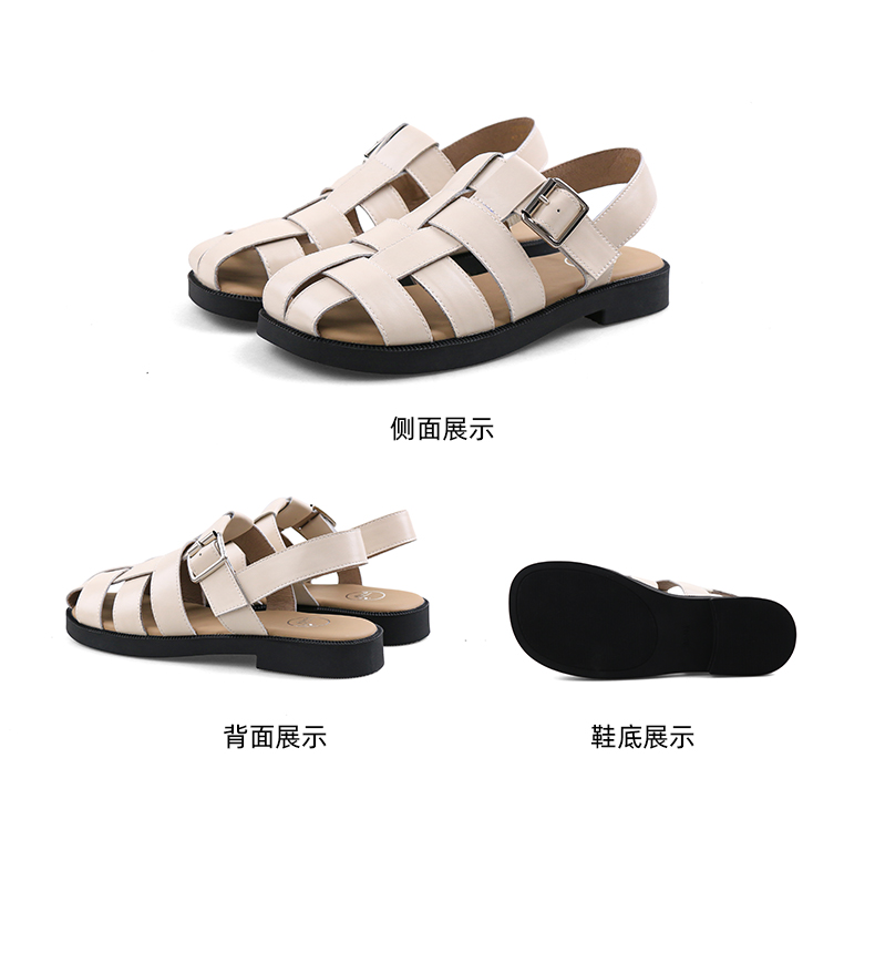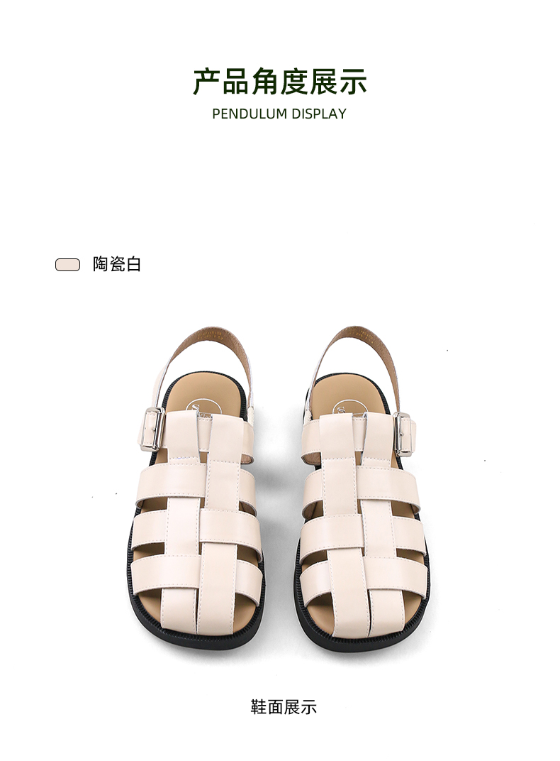 Safiya/索菲娅2024 夏季百搭镂空编织包头复古猪笼罗马鞋 SF42115109