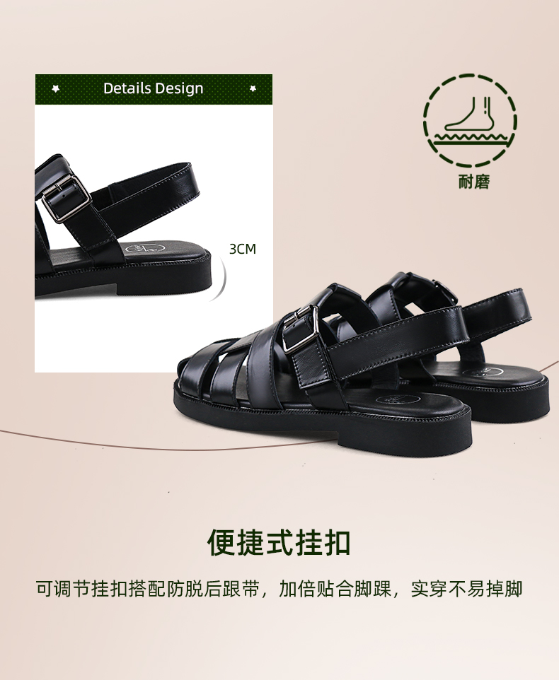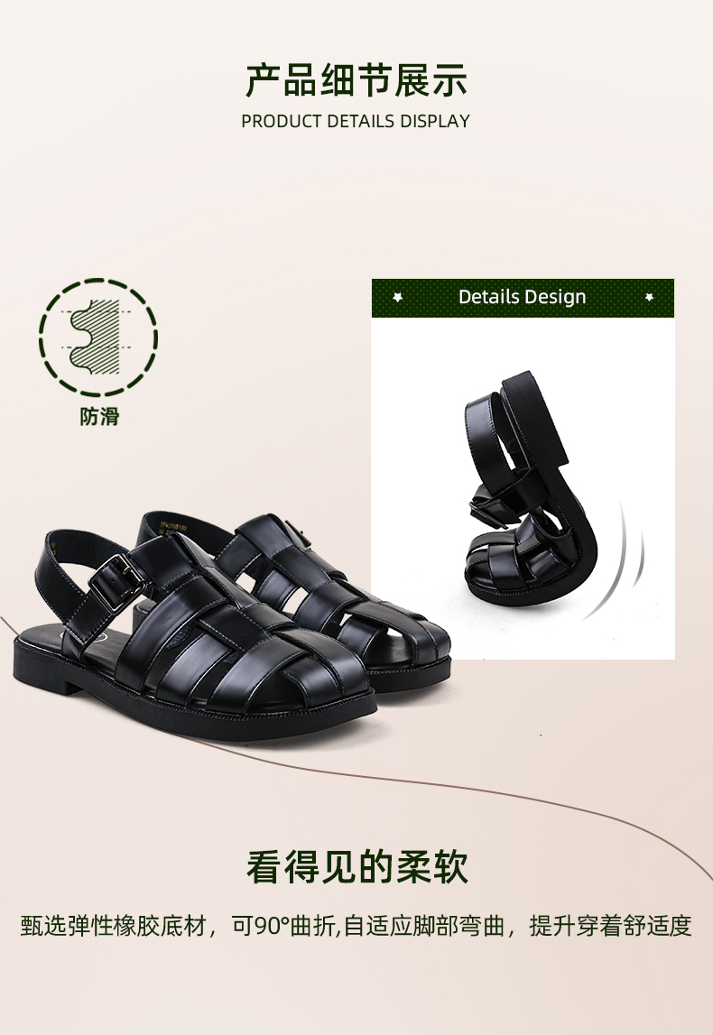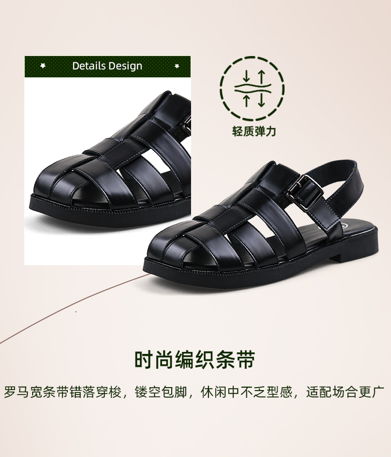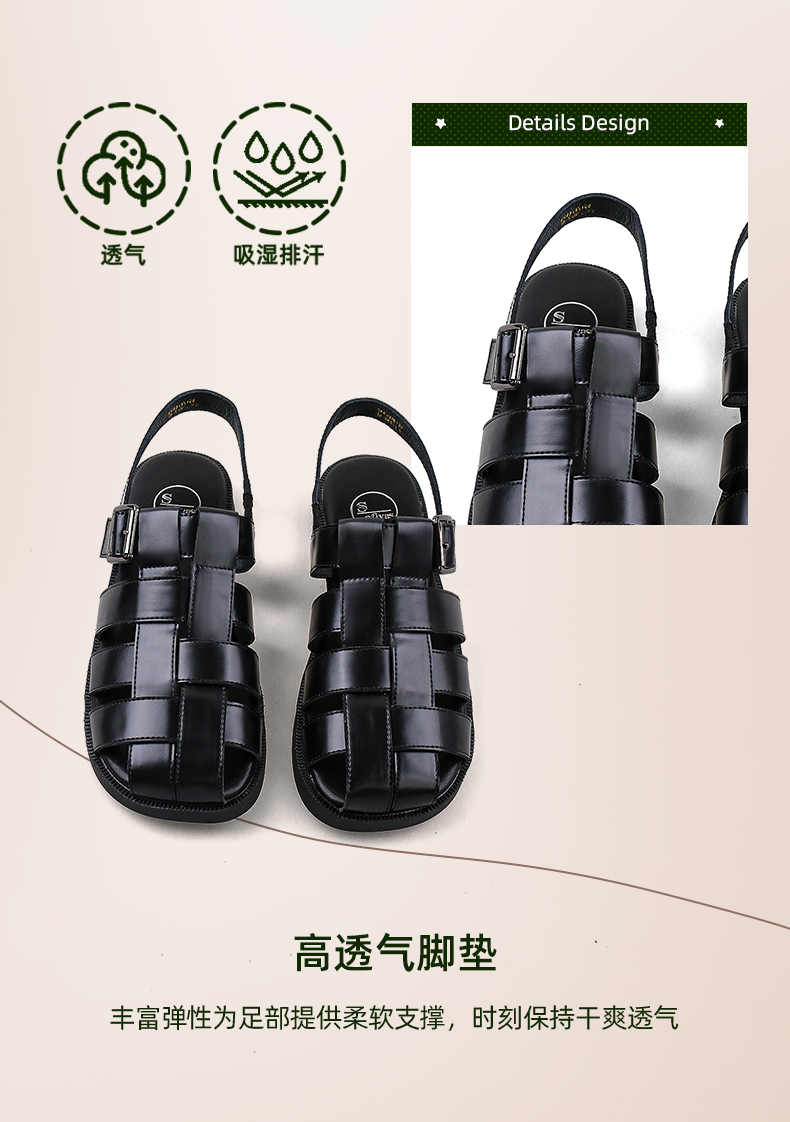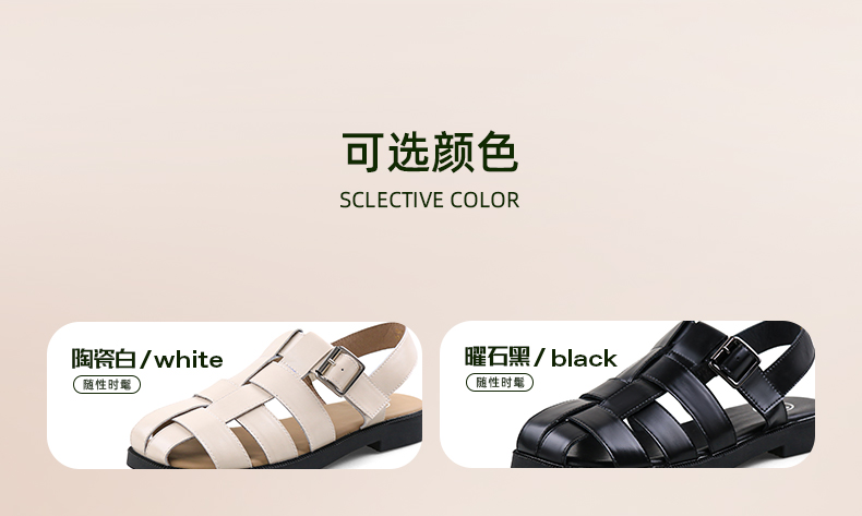 Safiya/索菲娅2024 夏季百搭镂空编织包头复古猪笼罗马鞋 SF42115109
