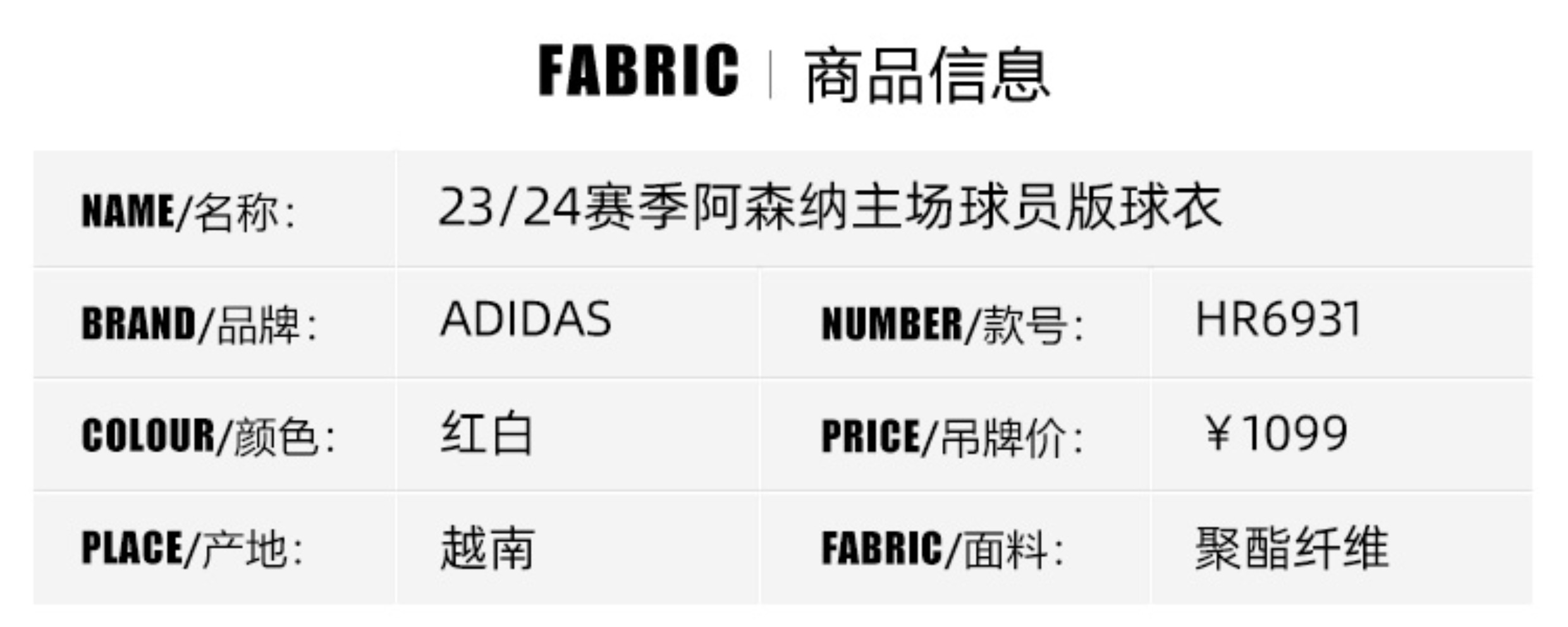 【送球员印号】SFS阿迪达斯23/24阿森纳主场球员版球衣厄德高 赖斯足球服HR6931