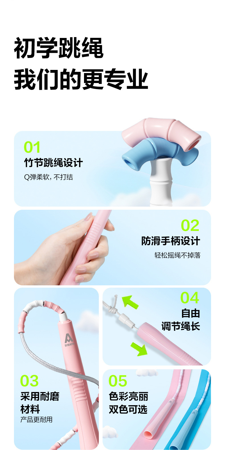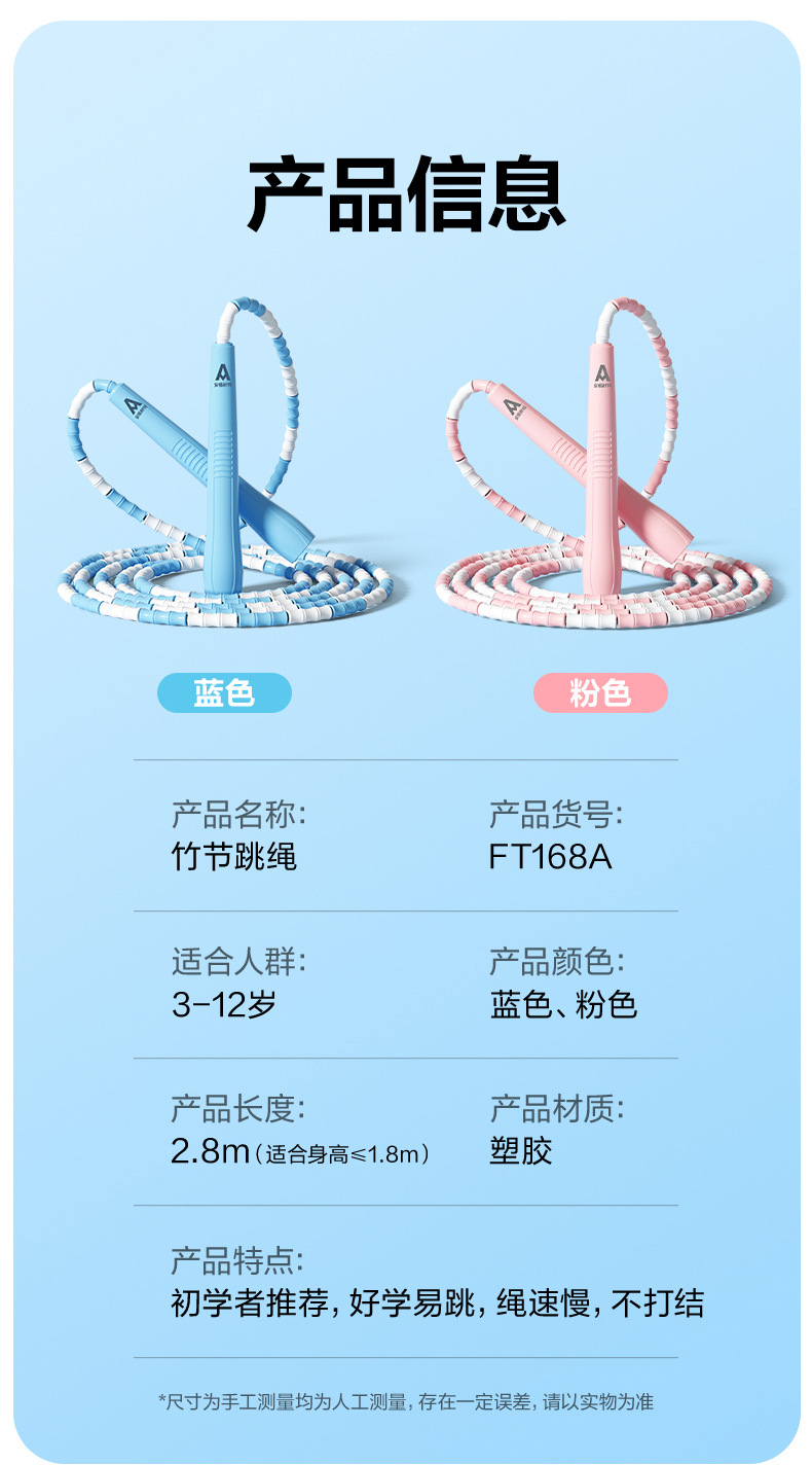 得力安格耐特FT168A竹节跳绳 小学生娱乐初学专用绳子 运动好学跳绳