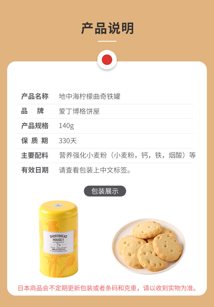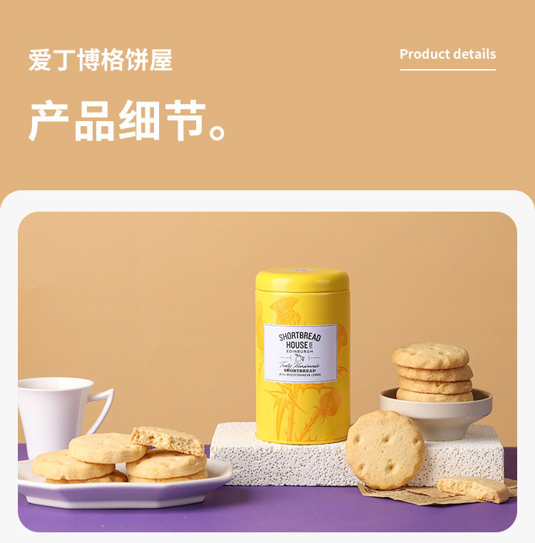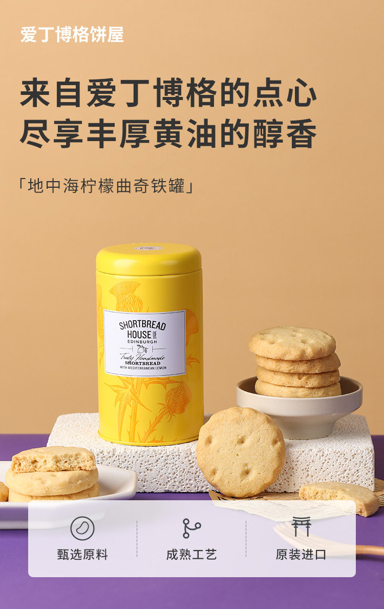 爱丁博格饼屋 地中海柠檬曲奇铁罐140g(新老包装随机)