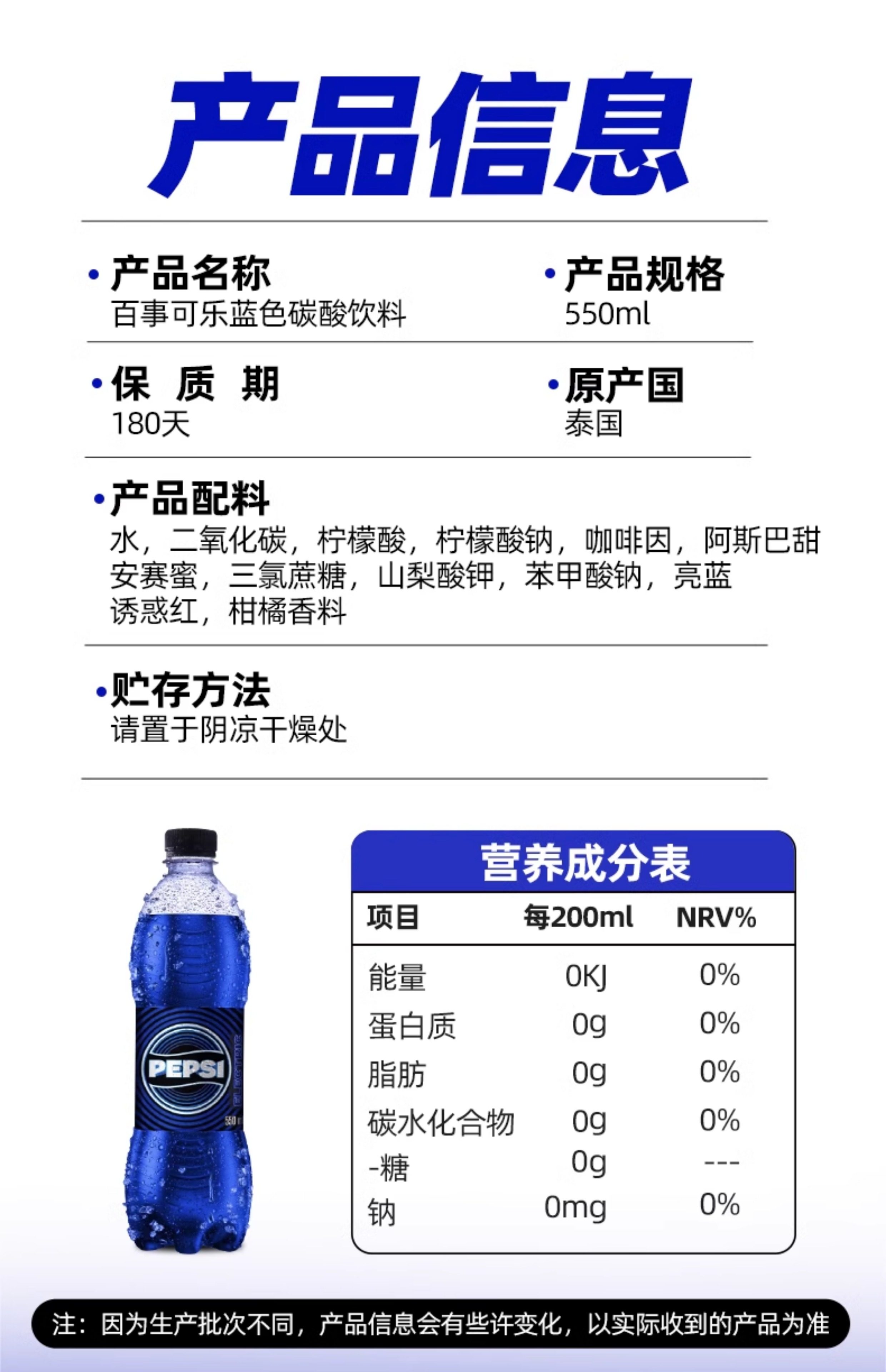 百事蓝色可乐550ml