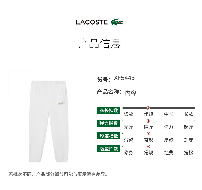 Lacoste福蛇新春系列女装新款运动百搭棉质长裤XF5443-98