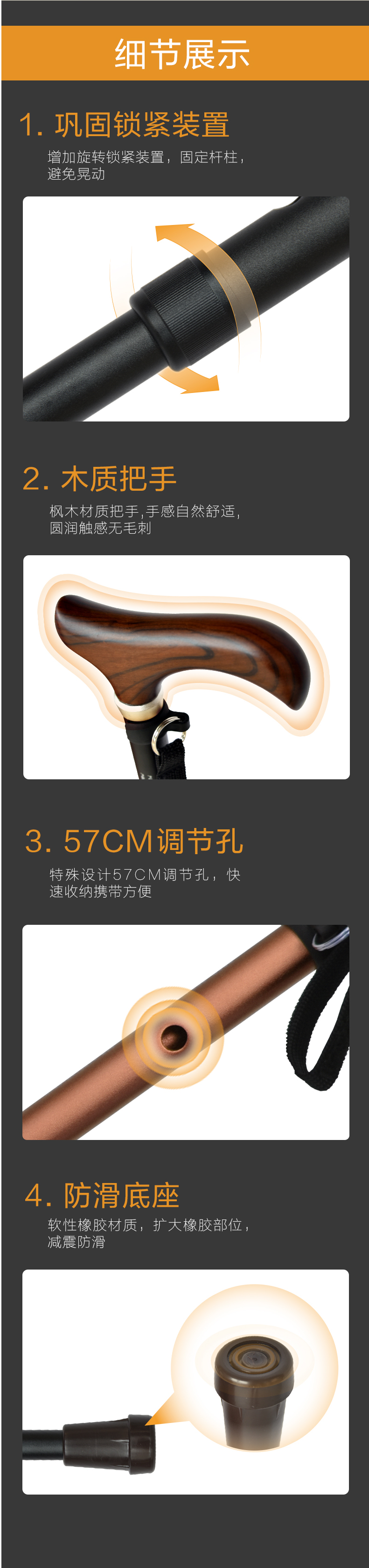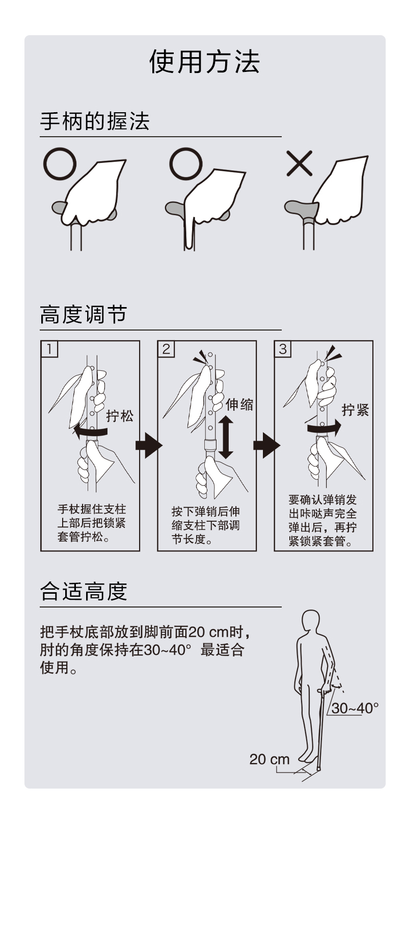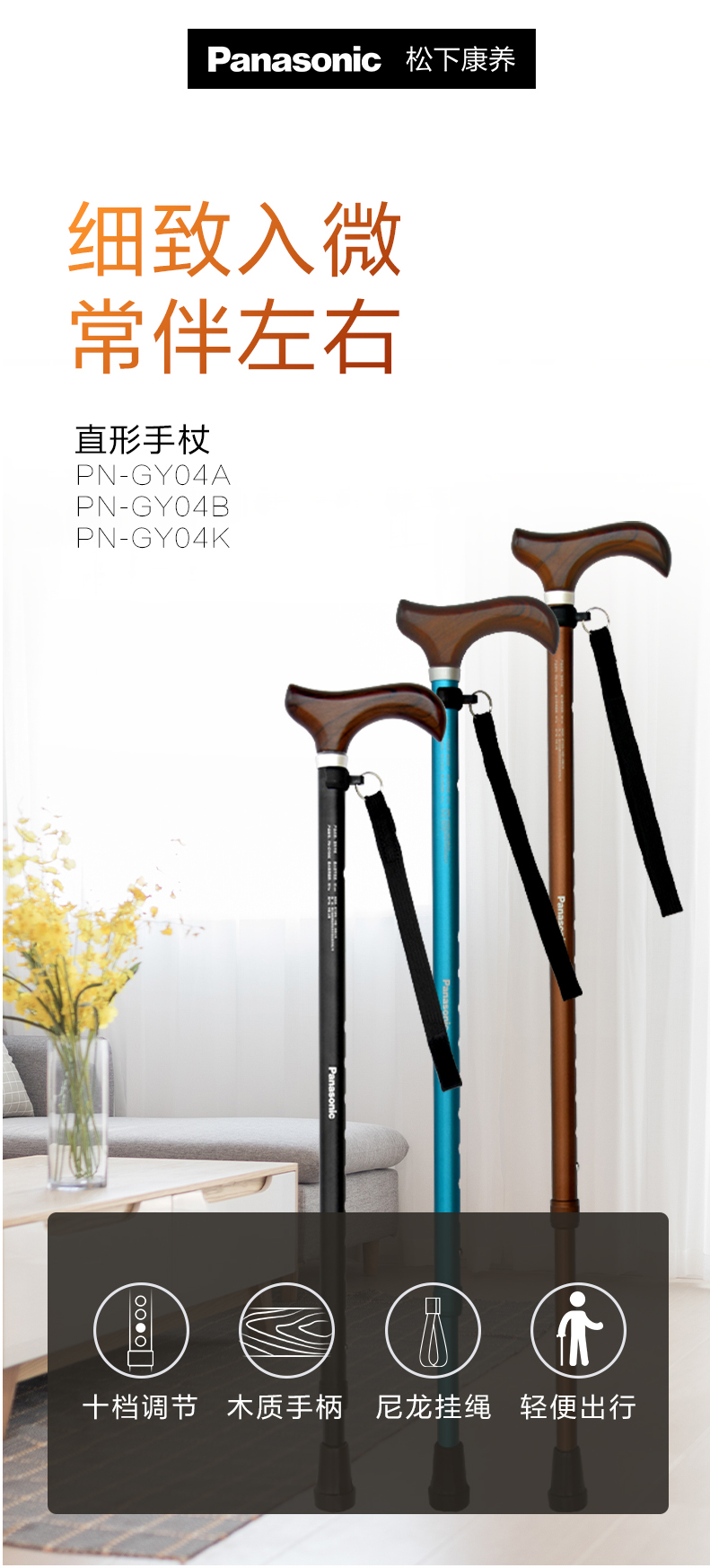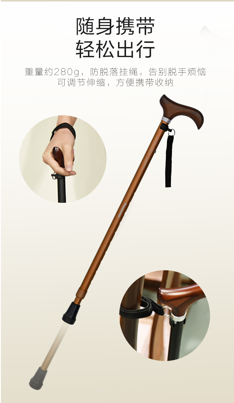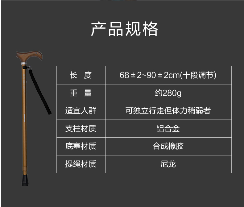 松下老人拐棍手杖防滑不锈钢轻便老年PN-GY04B
